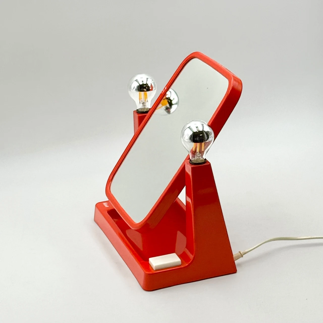 This illuminated tabletop mirror belongs to the golden era of futuristic design and fits seamlessly within our curated selection of Space Age Icons, where bold plastic forms, vibrant colors, and experimental lighting define the aesthetic of the 1960s and 1970s. Its playful geometry and integrated lighting also resonate strongly with other rare mirrors from the period, such as this Rare Space Age Design Mirror by Allibert from the 1960s, sharing the same visionary approach to everyday objects transformed into expressive design statements.