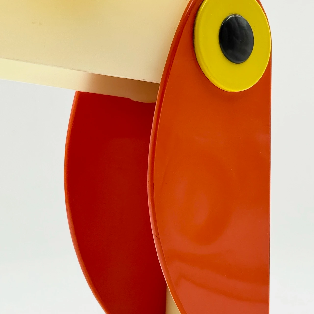 Originally conceived in 1970 and widely recognized as one of the earliest children-oriented design lamps, the Toucan merges decorative presence with directional lighting. The pivoting beak acts as a shade, allowing soft, focused illumination.