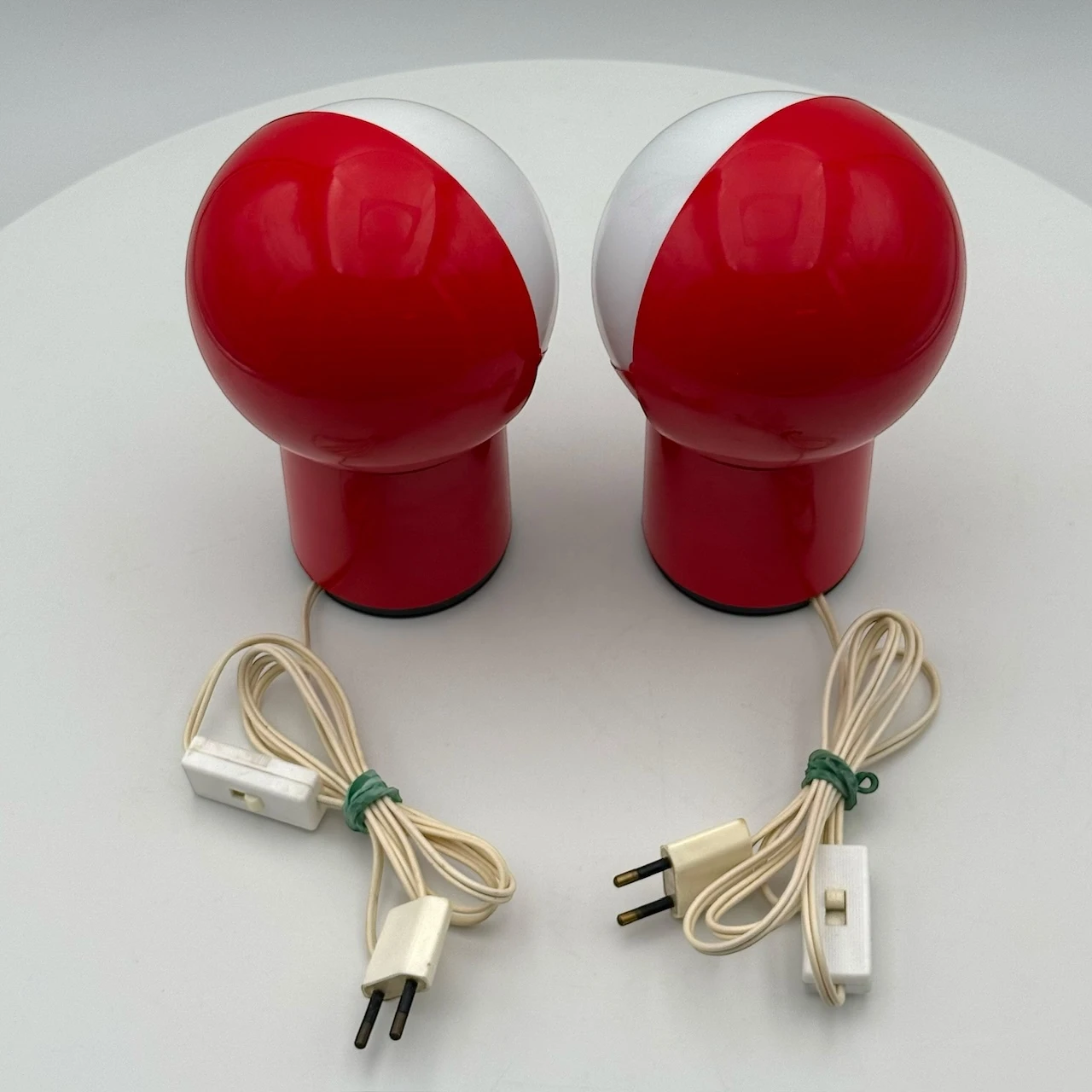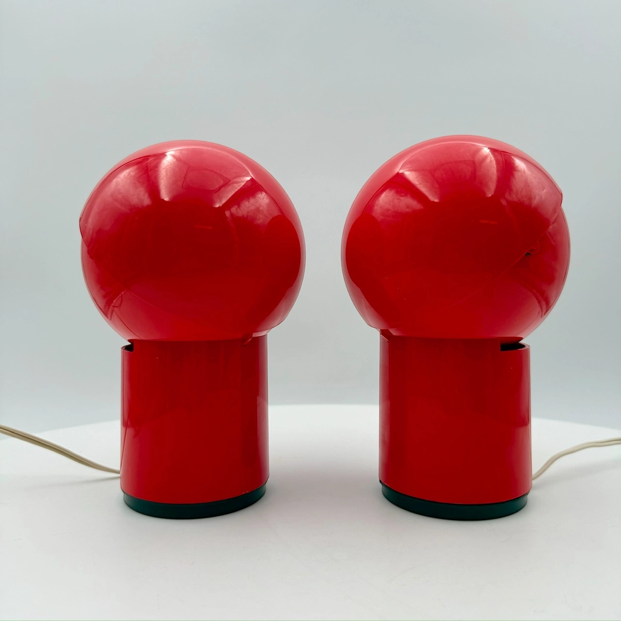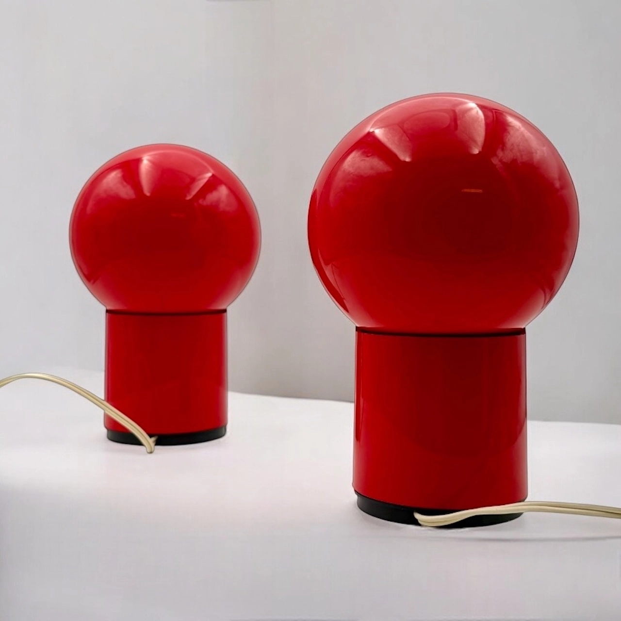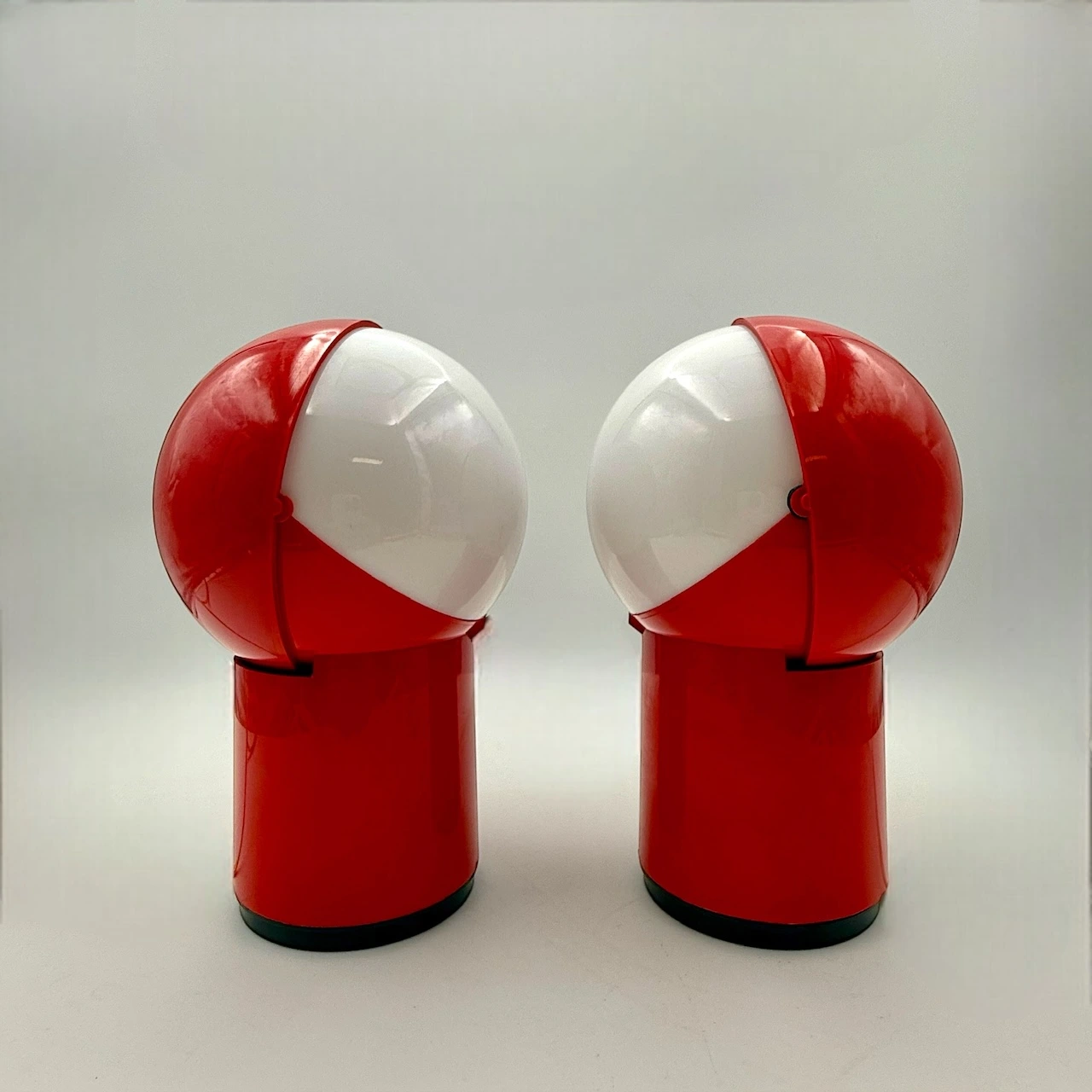 Each lamp features an adjustable lampshade, allowing for controlled light diffusion, much like the renowned ‘Eclisse’ lamp. The striking red finish enhances their retro appeal, adding a distinctive 70s touch to any vintage or Space Age-inspired interior.