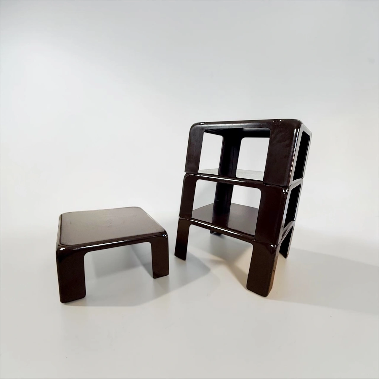 A key piece for collectors of Mario Bellini and early modular systems, closely related to other explorations in modular nesting tables and stackable furniture.