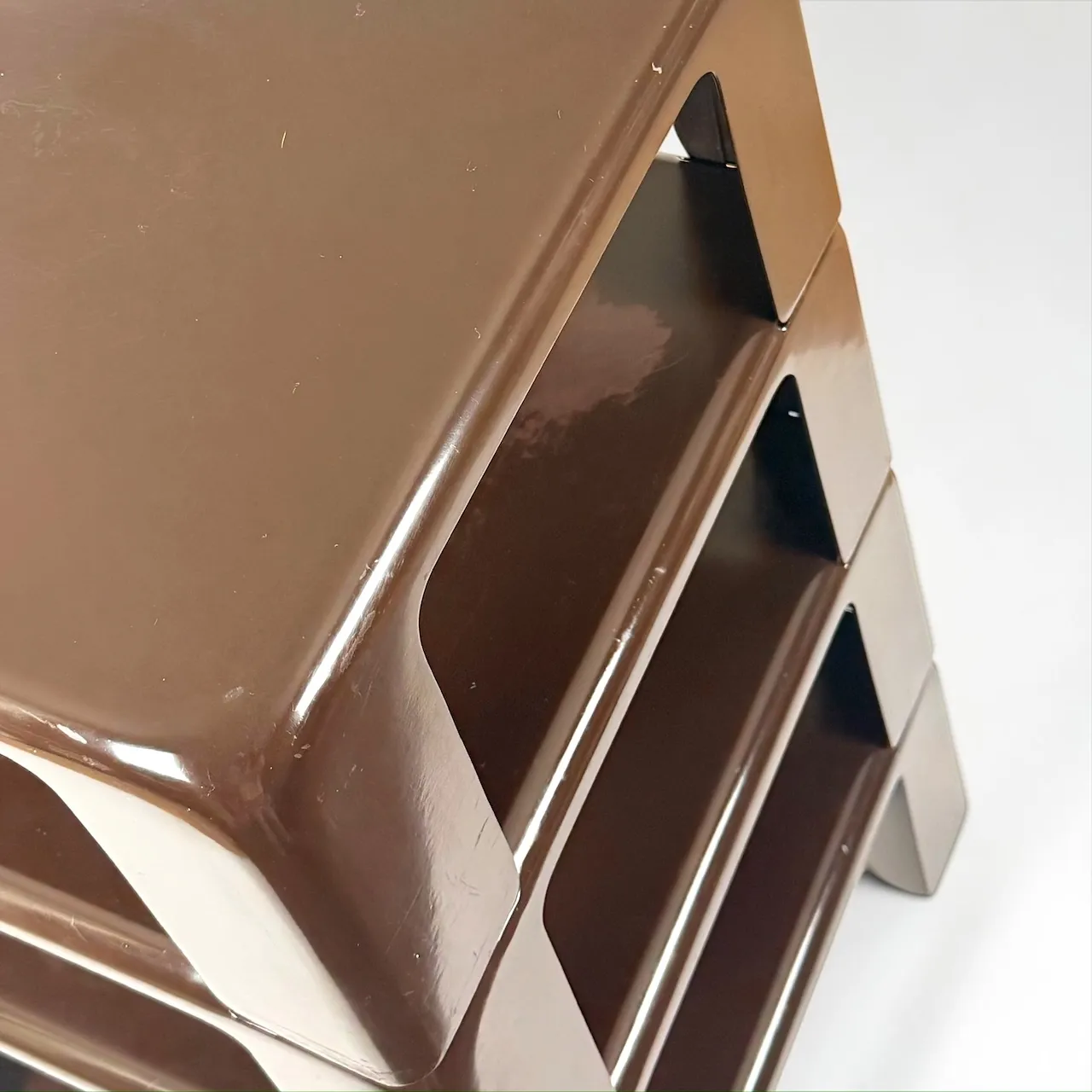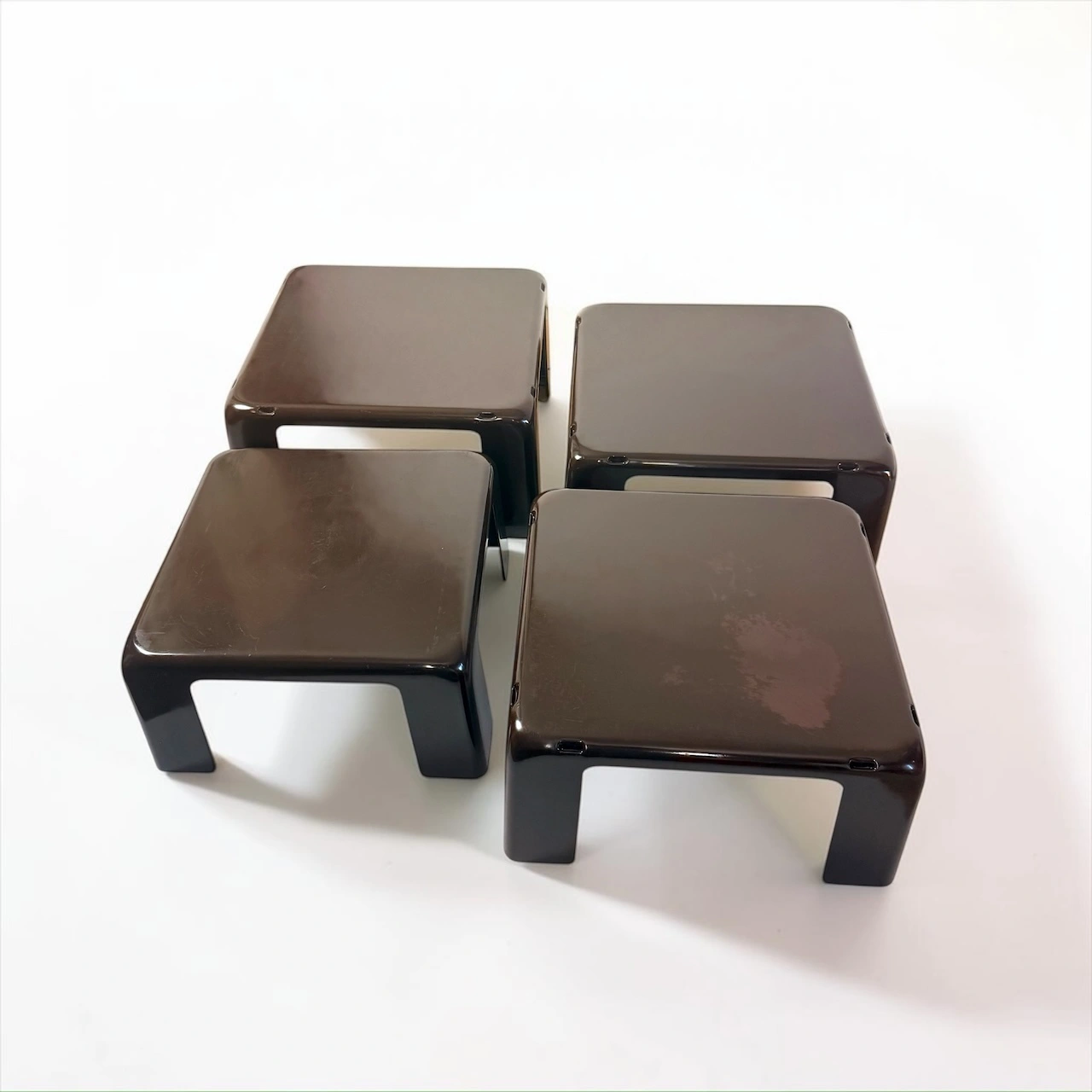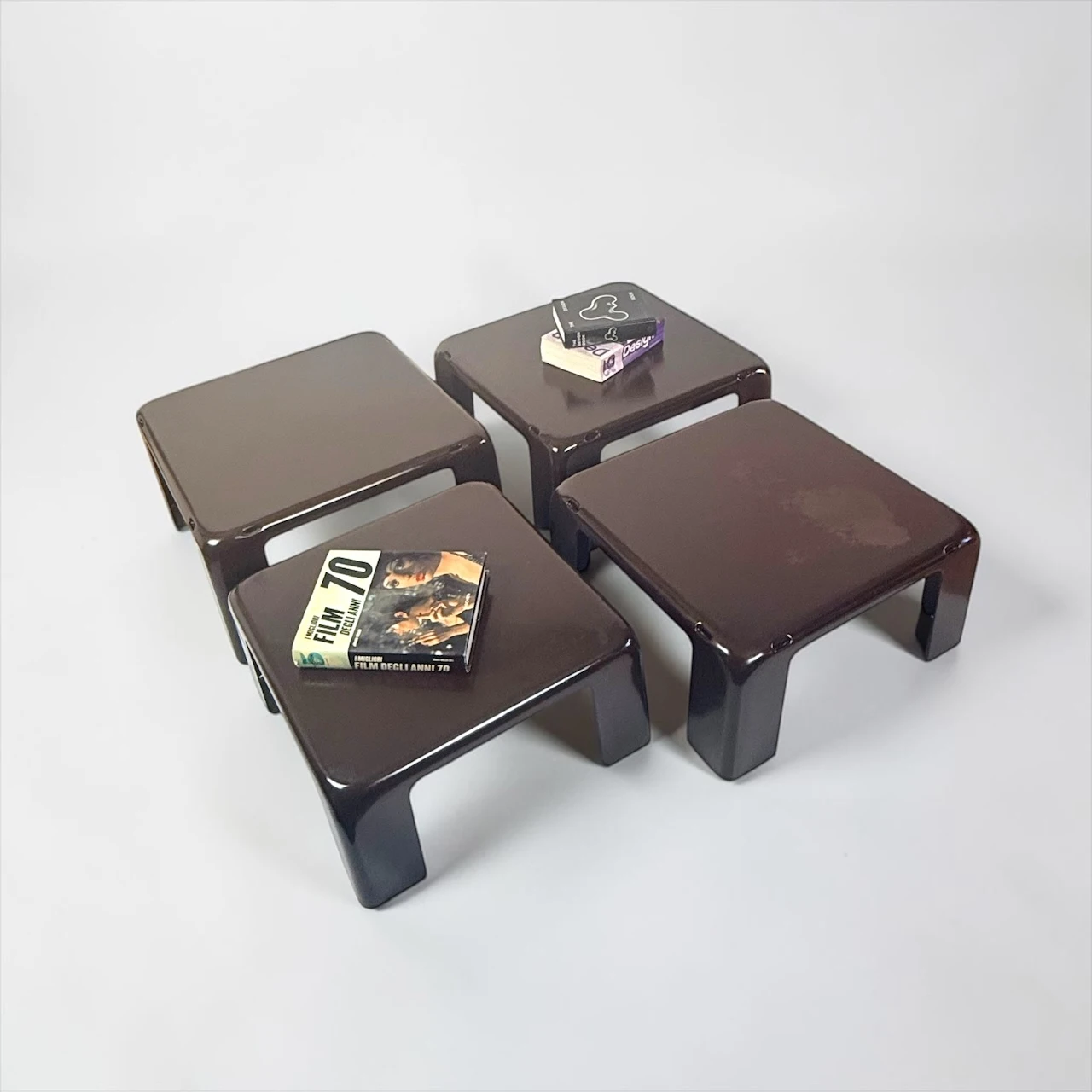 The quattro gatti tables designed by Mario Bellini in the late 1960s represent a defining moment in the evolution of modular furniture. Produced by B and B Italia, this system transforms industrial plastic into a precise and flexible domestic structure.