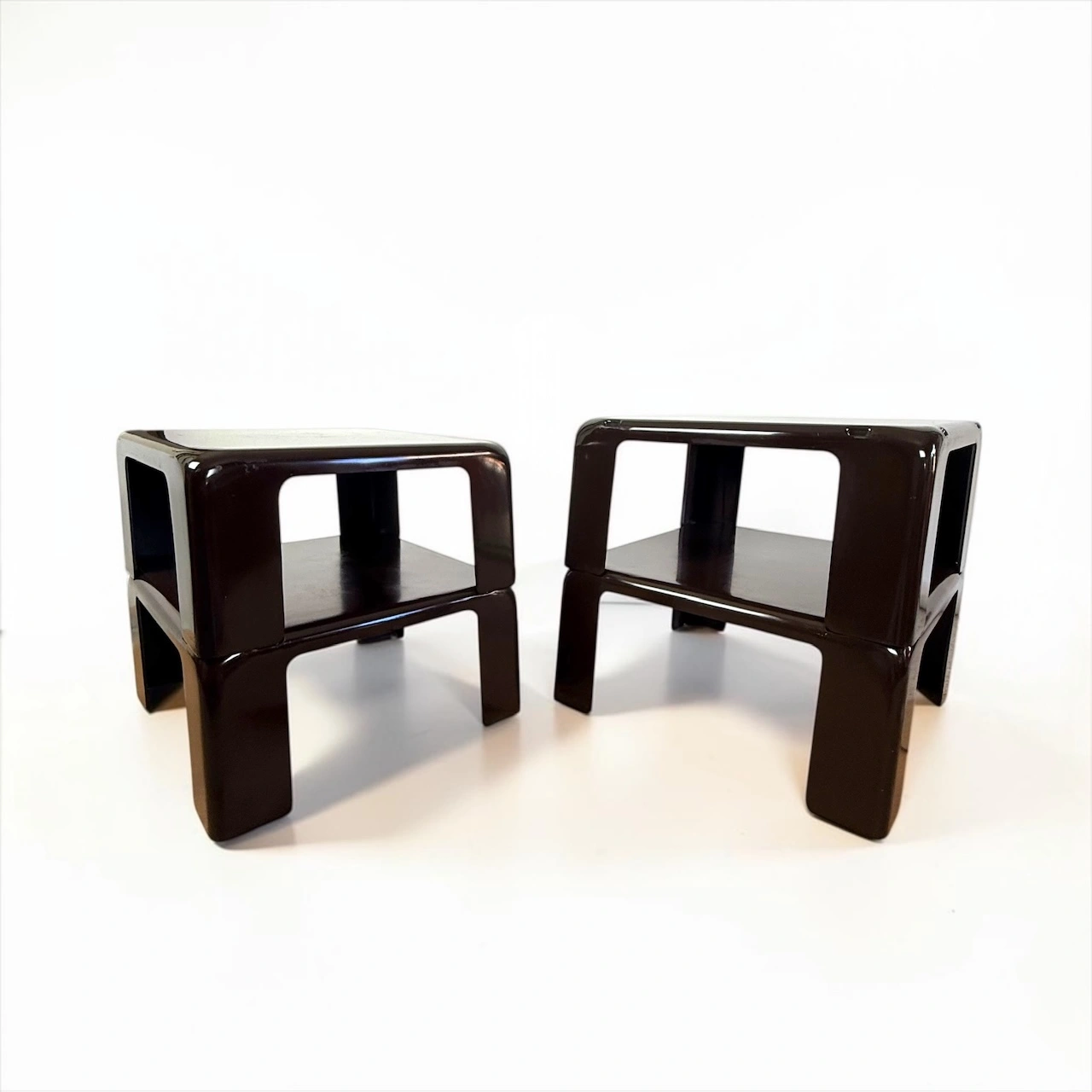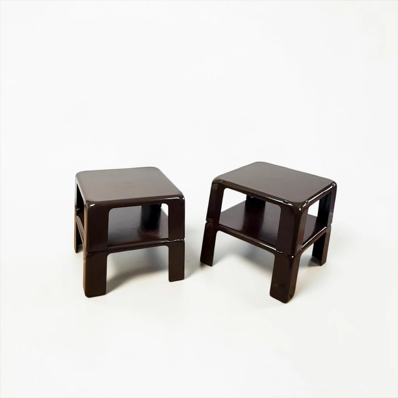 The deep brown finish enhances their architectural presence, making them suitable for both minimal interiors and more layered environments. Whether used as a compact bedside system or distributed across a room, they offer flexibility without visual noise.