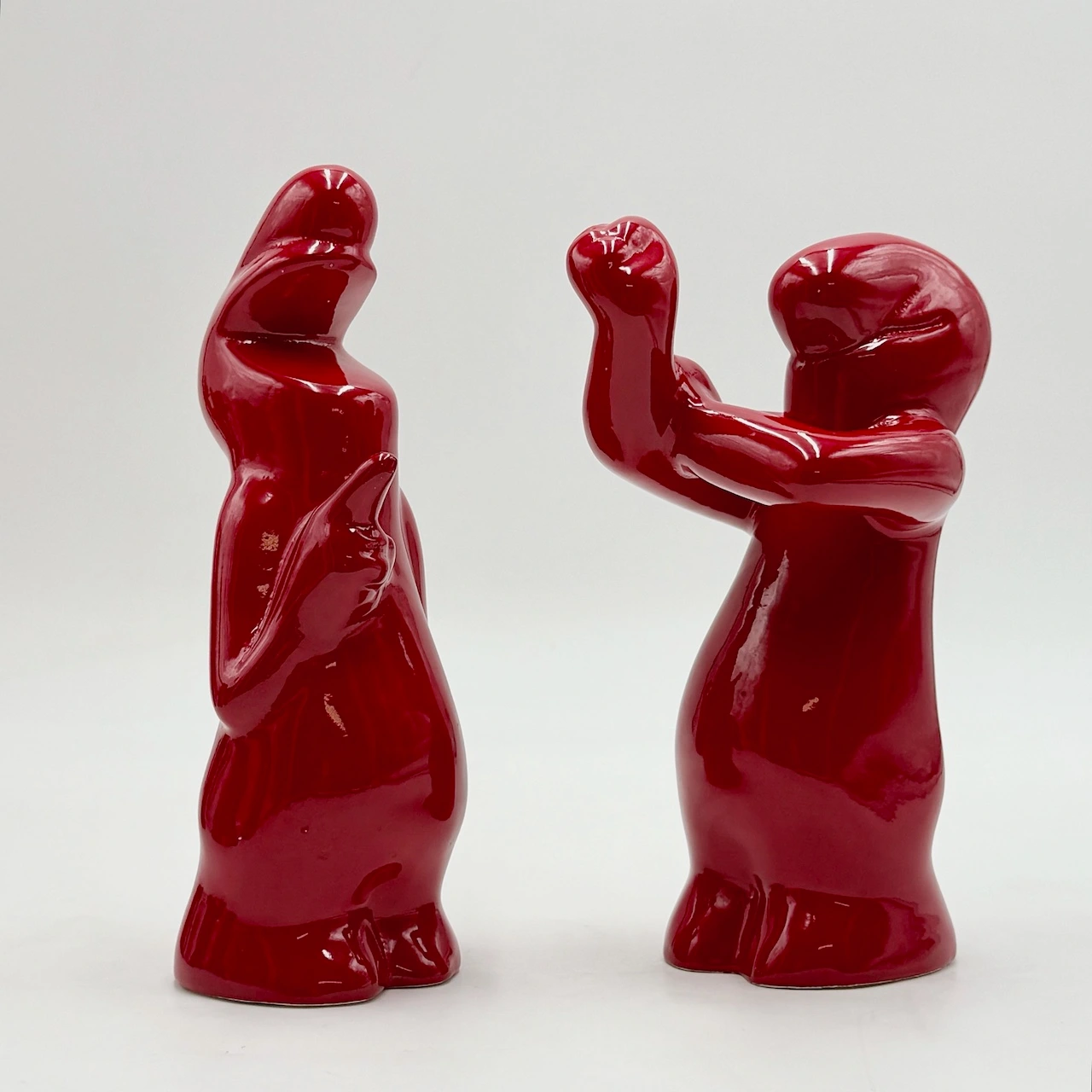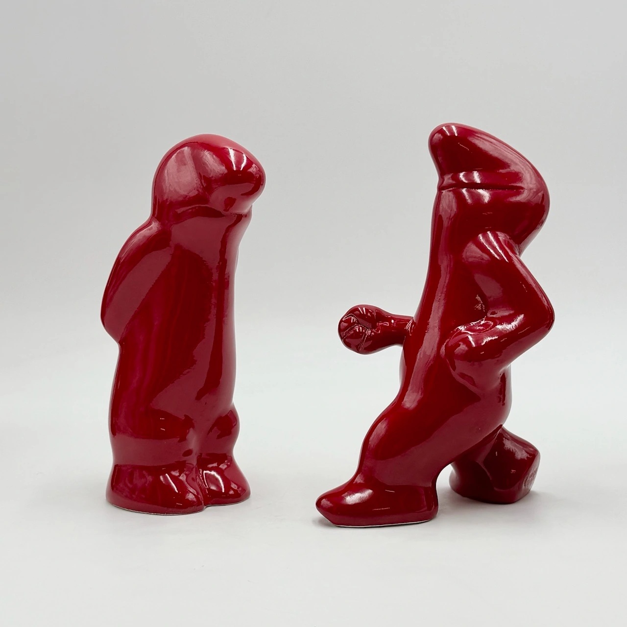 Rare and highly sought-after series of 1960s ceramic figurines from Cavandoli’s La Linea, finished in vibrant red. Iconic and humorous collectibles, each piece bears the original CAVA signature — captivating examples of mid-century modern art.