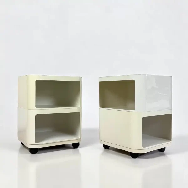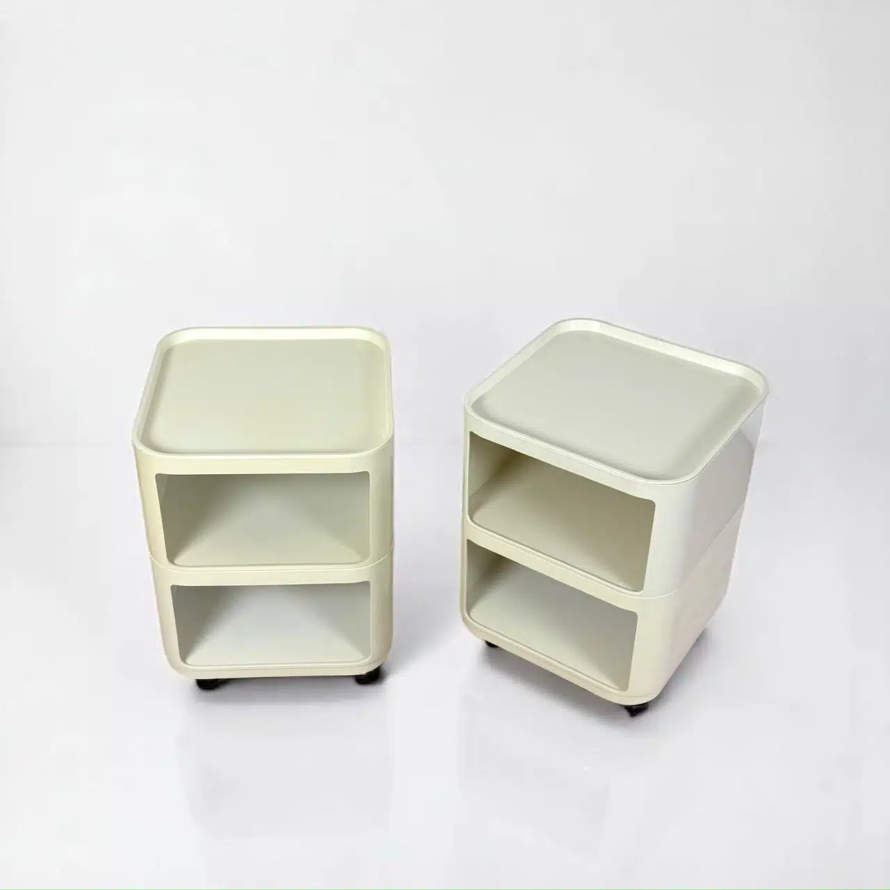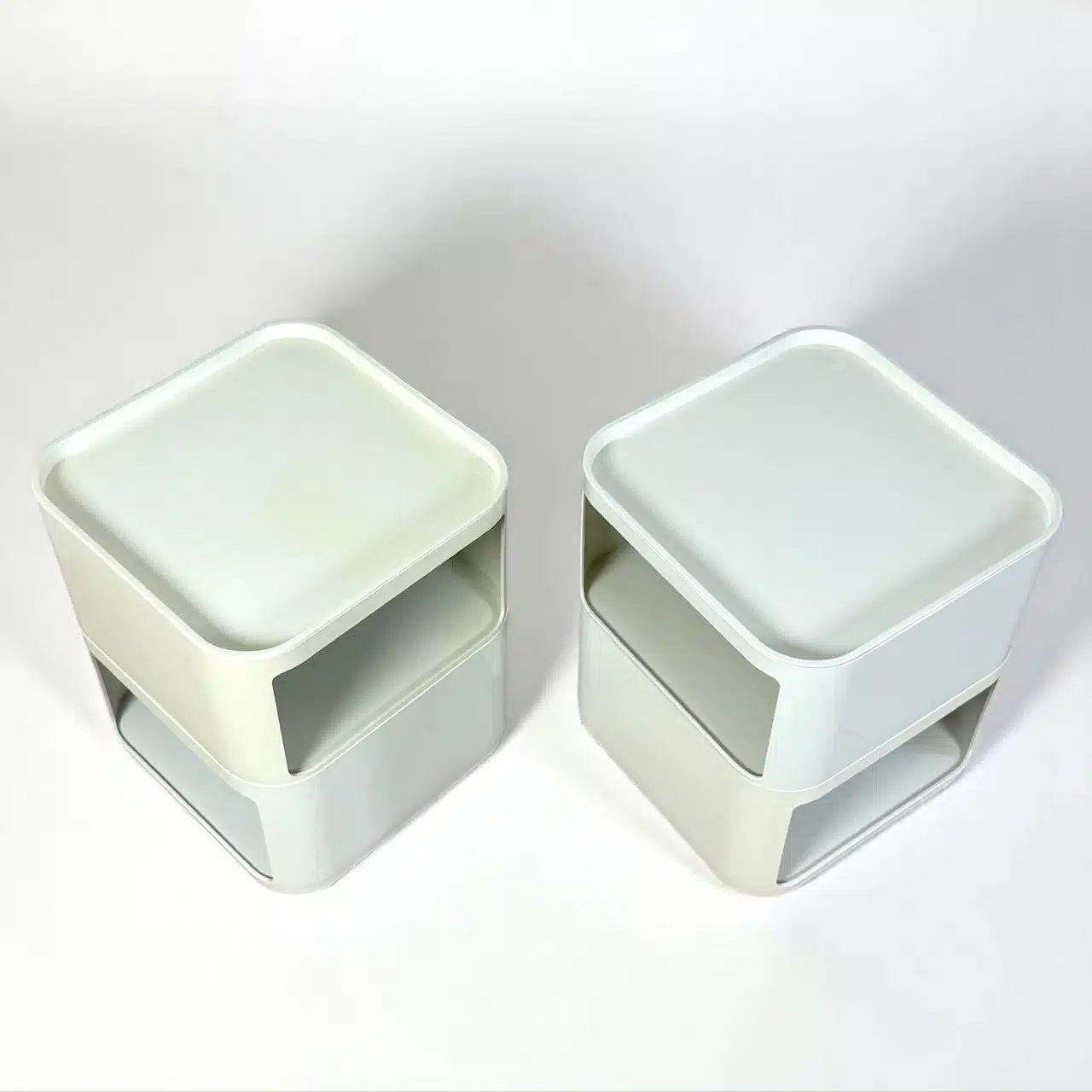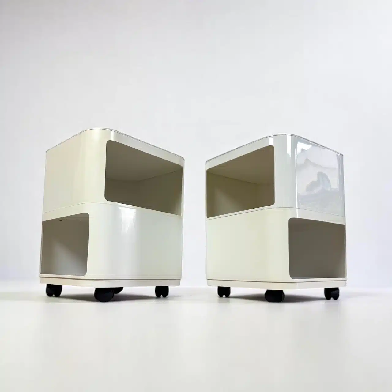 Use them as stylish storage units, minimalist bedside tables, or even retro serving trolleys—perfect for interiors that blend mid-century elegance with modern flexibility. Whether used individually or stacked, each module reflects the iconic Space Age vision of Kartells golden years. A must-have for collectors and design lovers seeking vintage modular storage with character and history.
