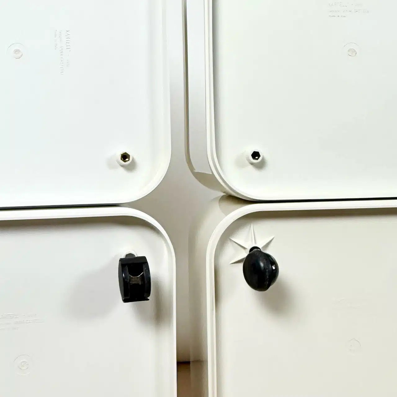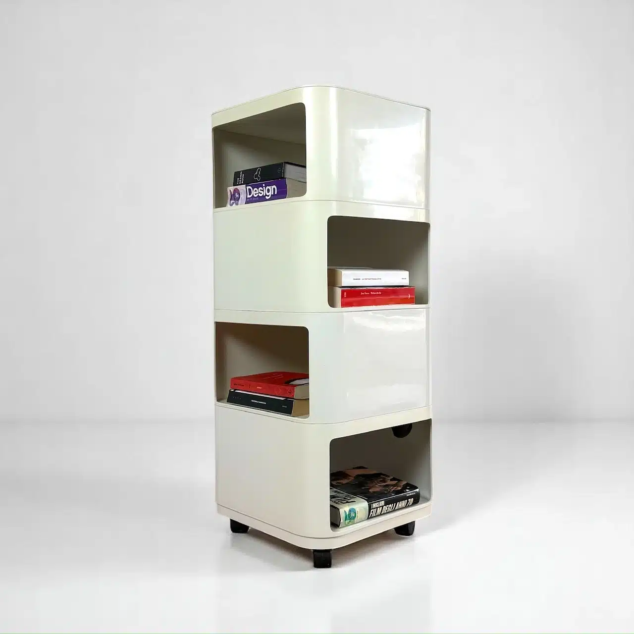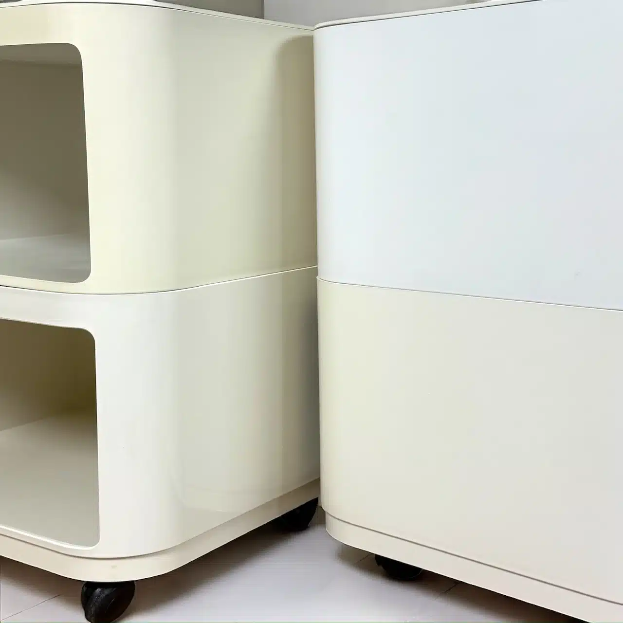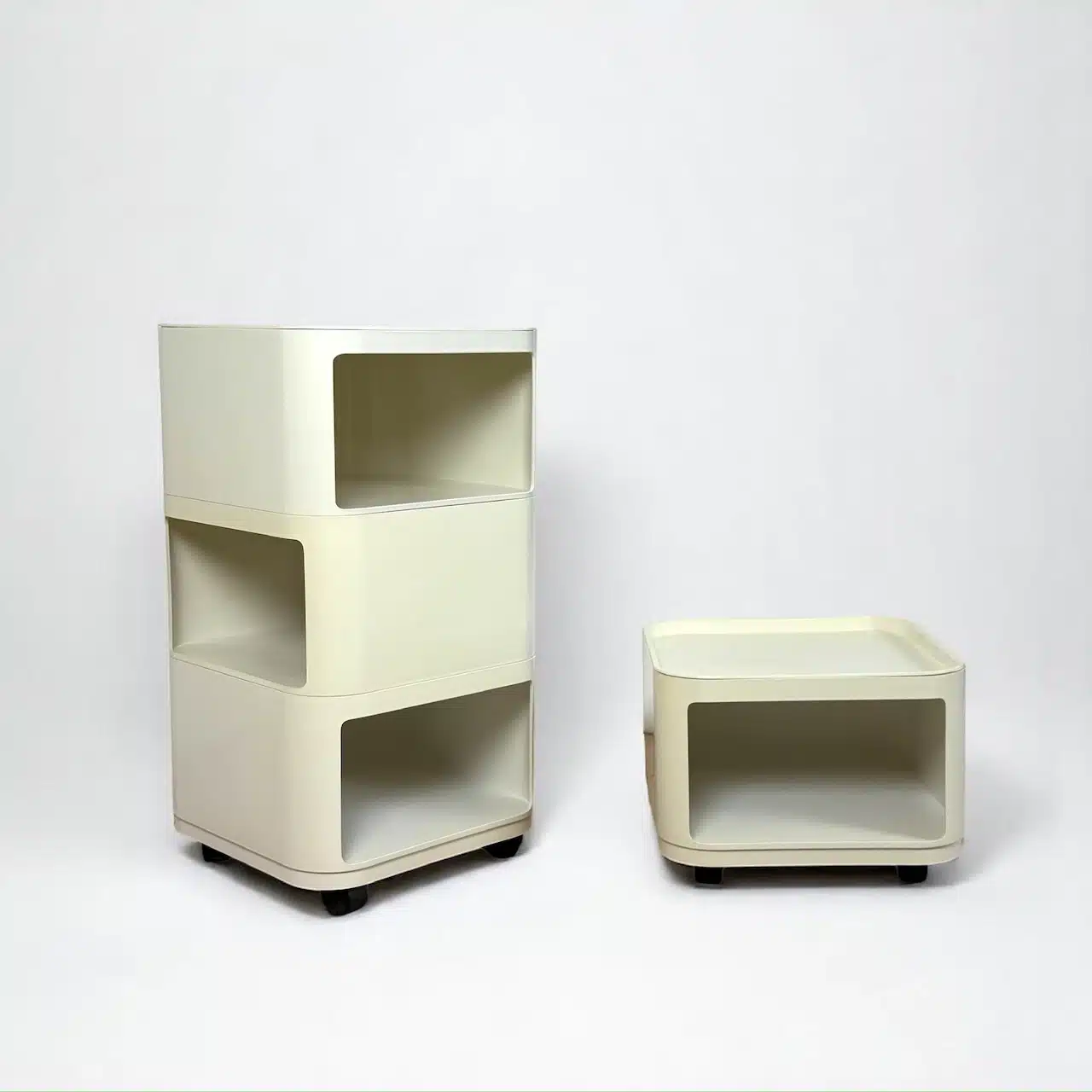 Use them as stylish storage units, minimalist bedside tables, or even retro serving trolleys—perfect for interiors that blend mid-century elegance with modern flexibility. Whether used individually or stacked, each module reflects the iconic Space Age vision of Kartells golden years. A must-have for collectors and design lovers seeking vintage modular storage with character and history.