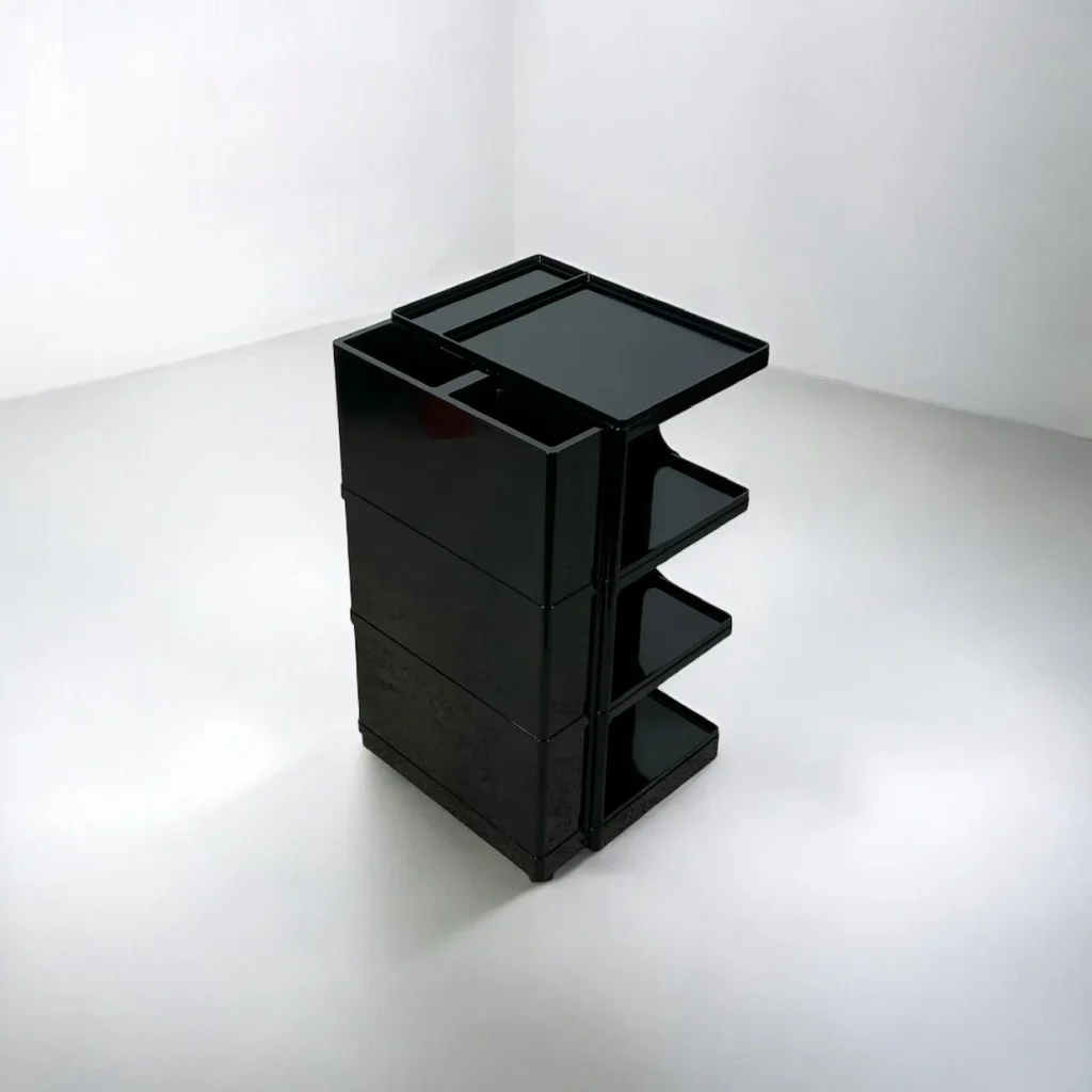 item. architect organiser trolleymodel. Stilemaker. Neoltperiod. 1970scountry. Italymaterial. ABScolor. blackdimensions (cm). 42 x 40 x 76 (H)condition. excellent conditions. healthy and cleaned, with glossy black hue and minimal signs of wear like superficial scuffs.