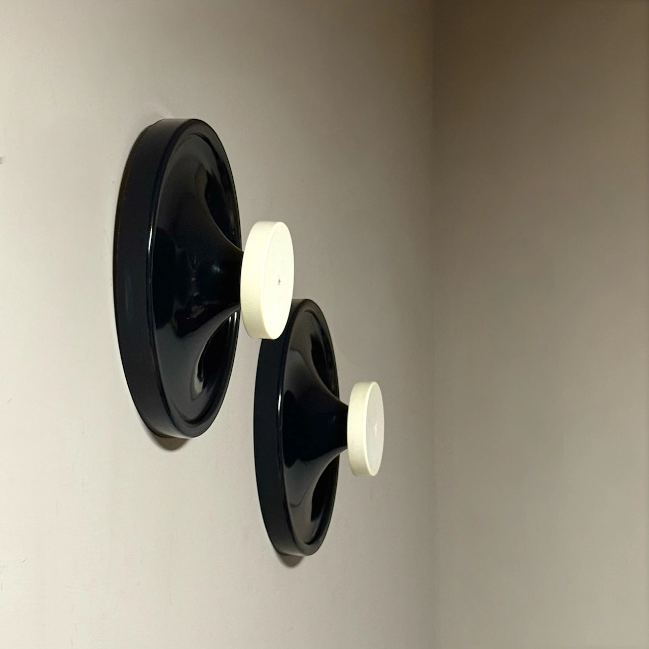 Measuring 22 cm in diameter and 8 cm in depth, these space age wall hooks add a nostalgic pop to any space. Whether enhancing a mid-century modern home, a retro-themed entryway, or a Space Age-inspired setting, they bring undeniable charm and character. Their sleek, futuristic design captures the bold spirit of 1960s Italian design innovation. A must-have collectible for design enthusiasts and anyone seeking a stylish touch of vintage nostalgia.