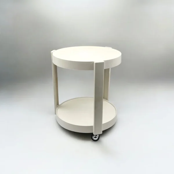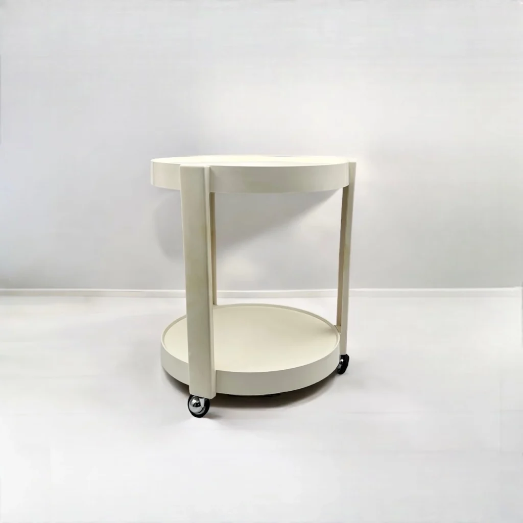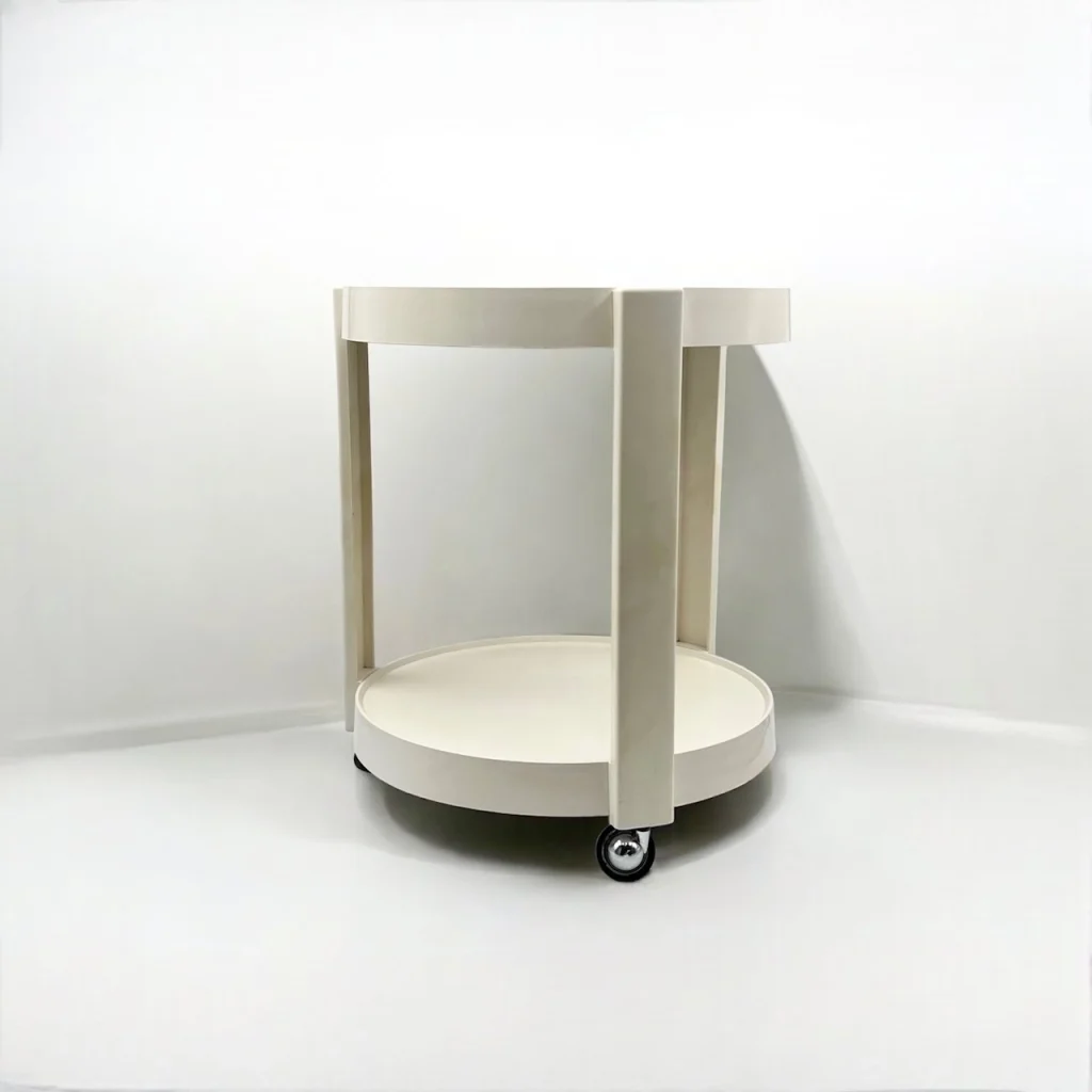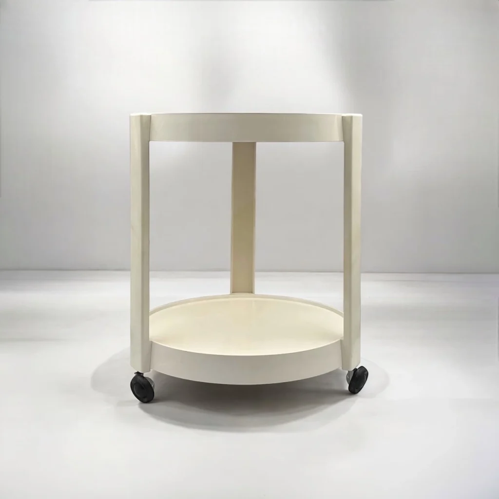 Rare and distinctive Space Age Mobile Bar, a classic design crafted by Kastilia in Italy. This mid-century modern piece perfectly encapsulates the futuristic vibes of the Space Age era, featuring a sleek off-white color and rounded shapes that evoke the bold design language of the 70s.