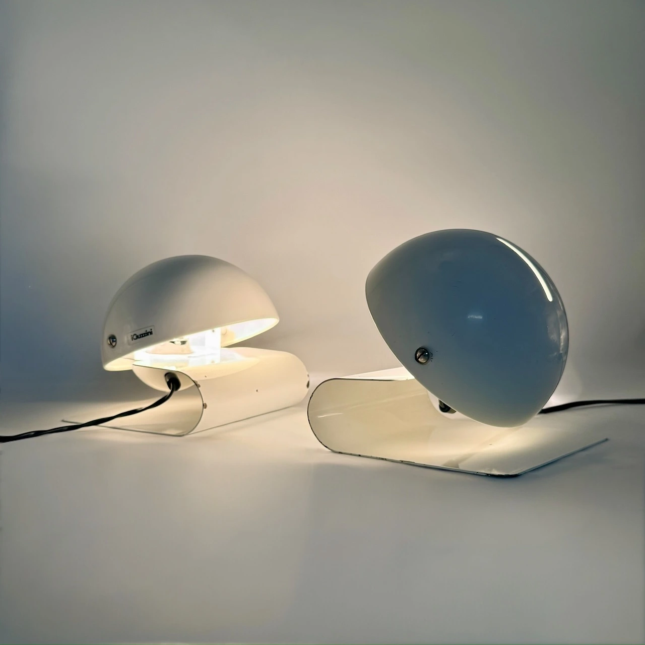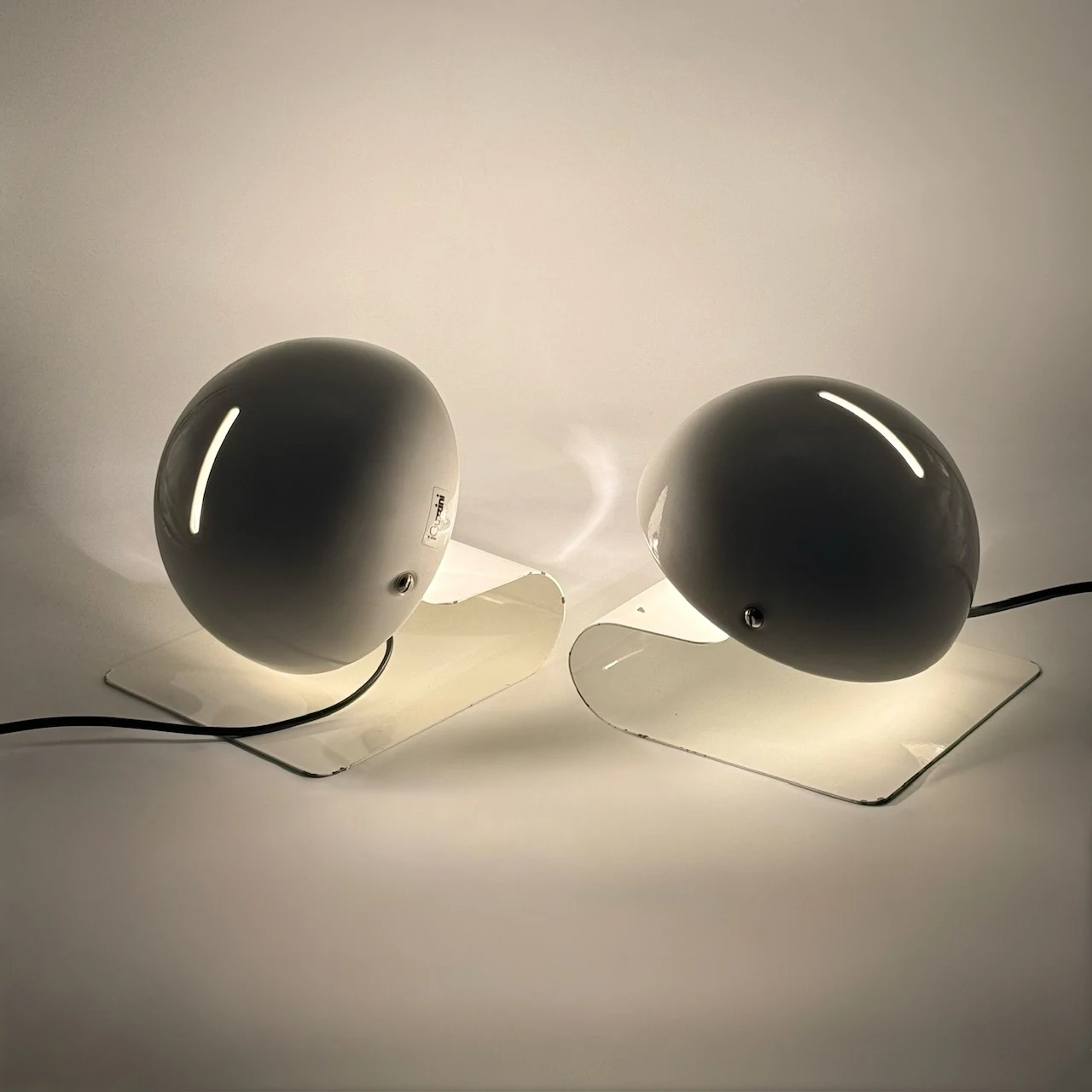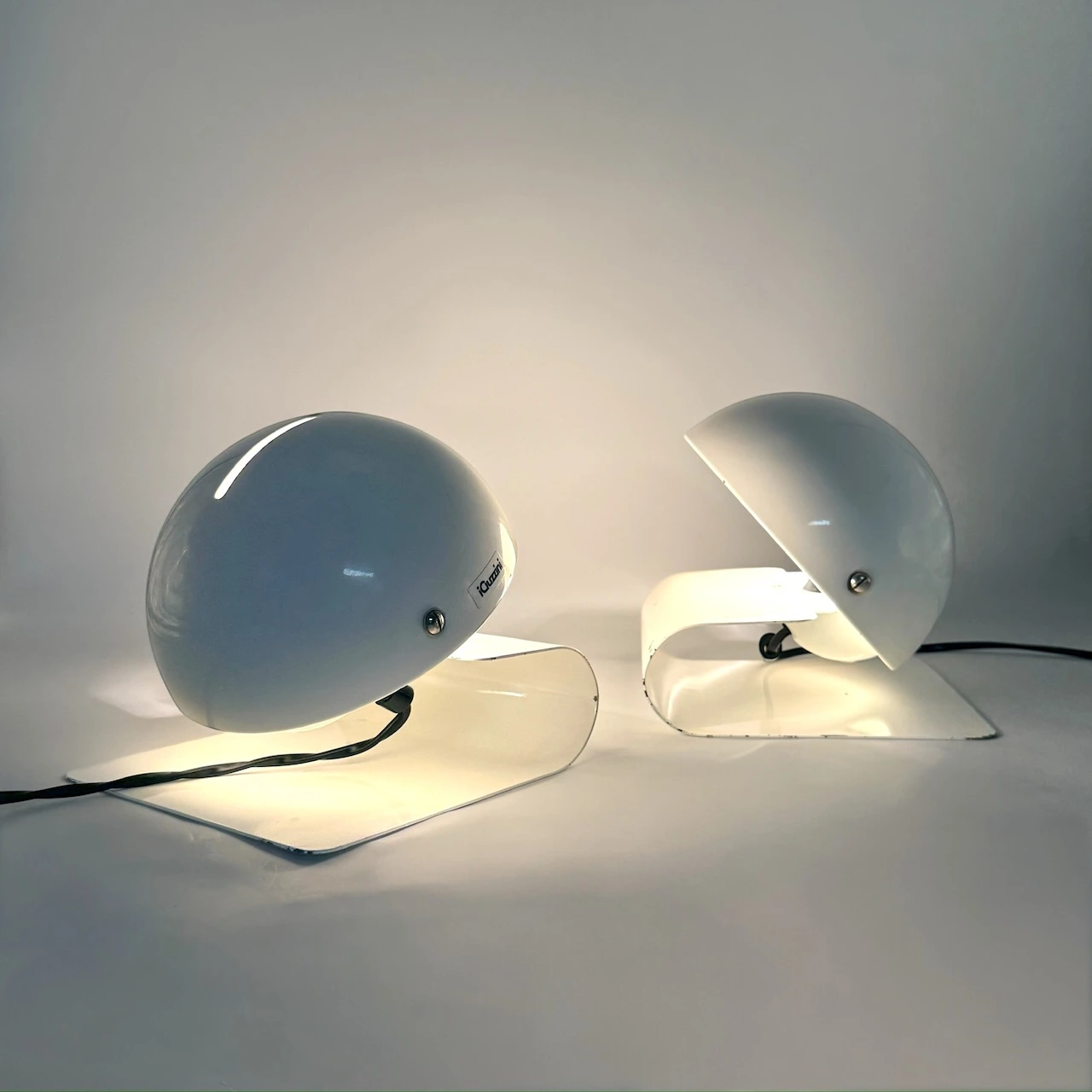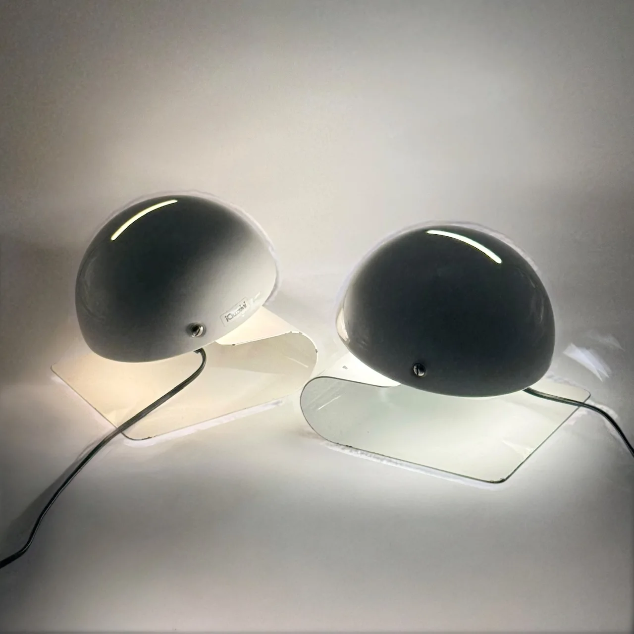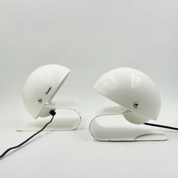 Whether placed in a modern living room, a retro-inspired space, or a cozy reading nook, the Bugia Lamp pair add a unique touch of vintage charm. Its versatile design, characterized by smooth contours and a sleek white shade, makes it an ideal complement to a variety of interior styles. Its rarity, combined with its iconic design and Italian heritage, makes it a valuable addition to any collection.