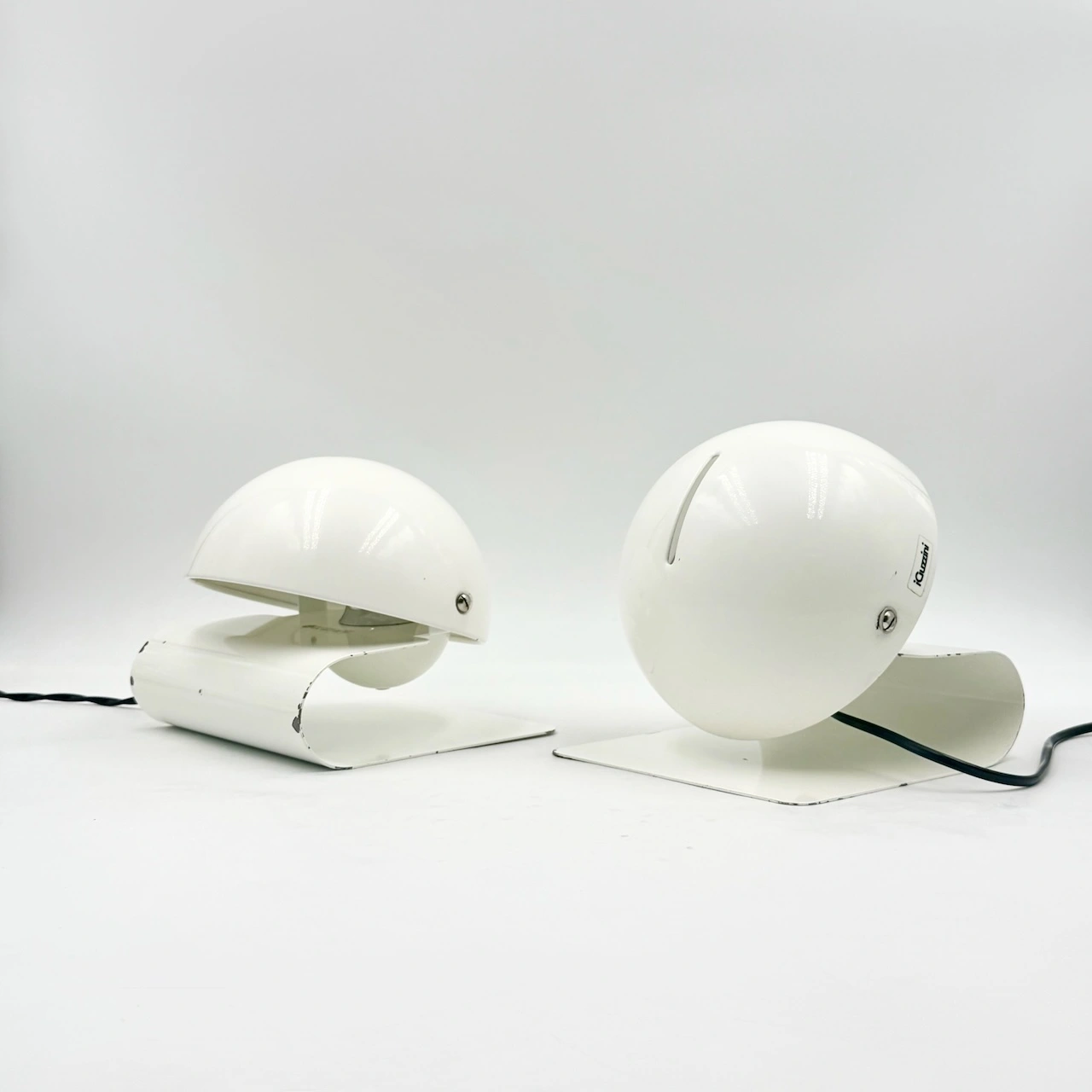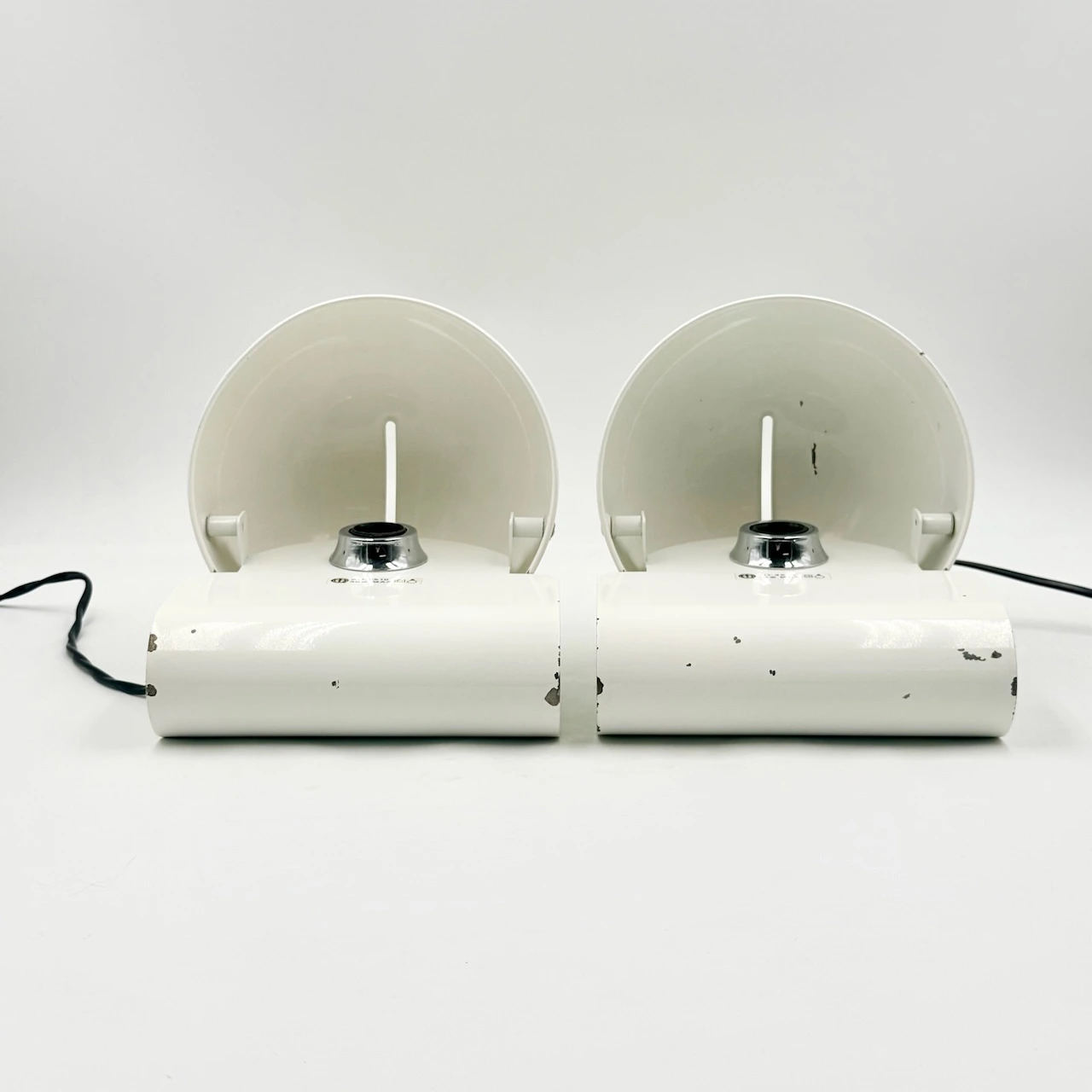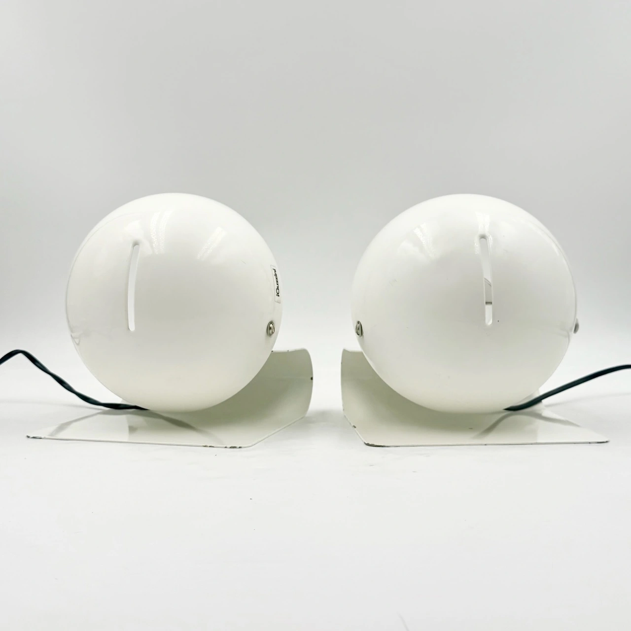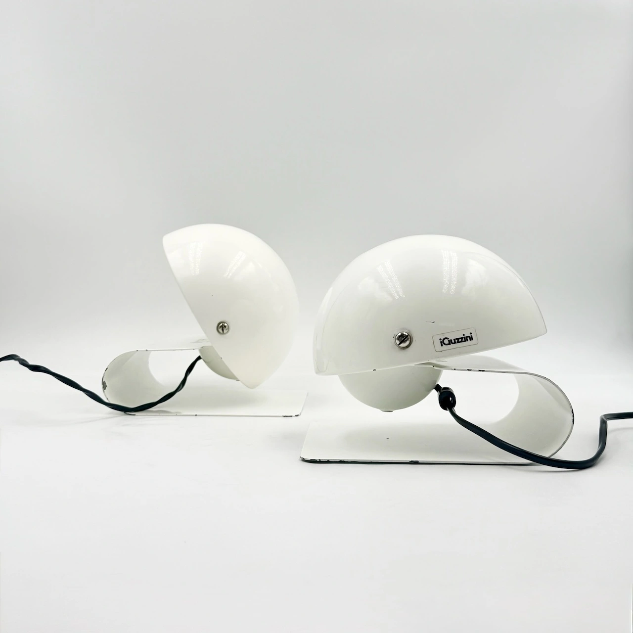 Whether placed in a modern living room, a retro-inspired space, or a cozy reading nook, the Bugia Lamp pair add a unique touch of vintage charm. Its versatile design, characterized by smooth contours and a sleek white shade, makes it an ideal complement to a variety of interior styles. Its rarity, combined with its iconic design and Italian heritage, makes it a valuable addition to any collection.