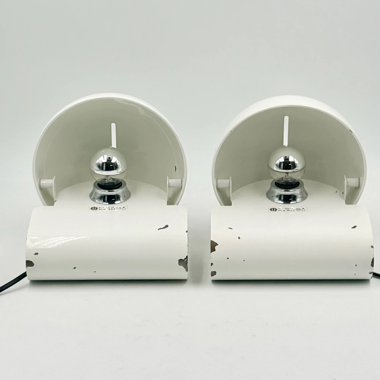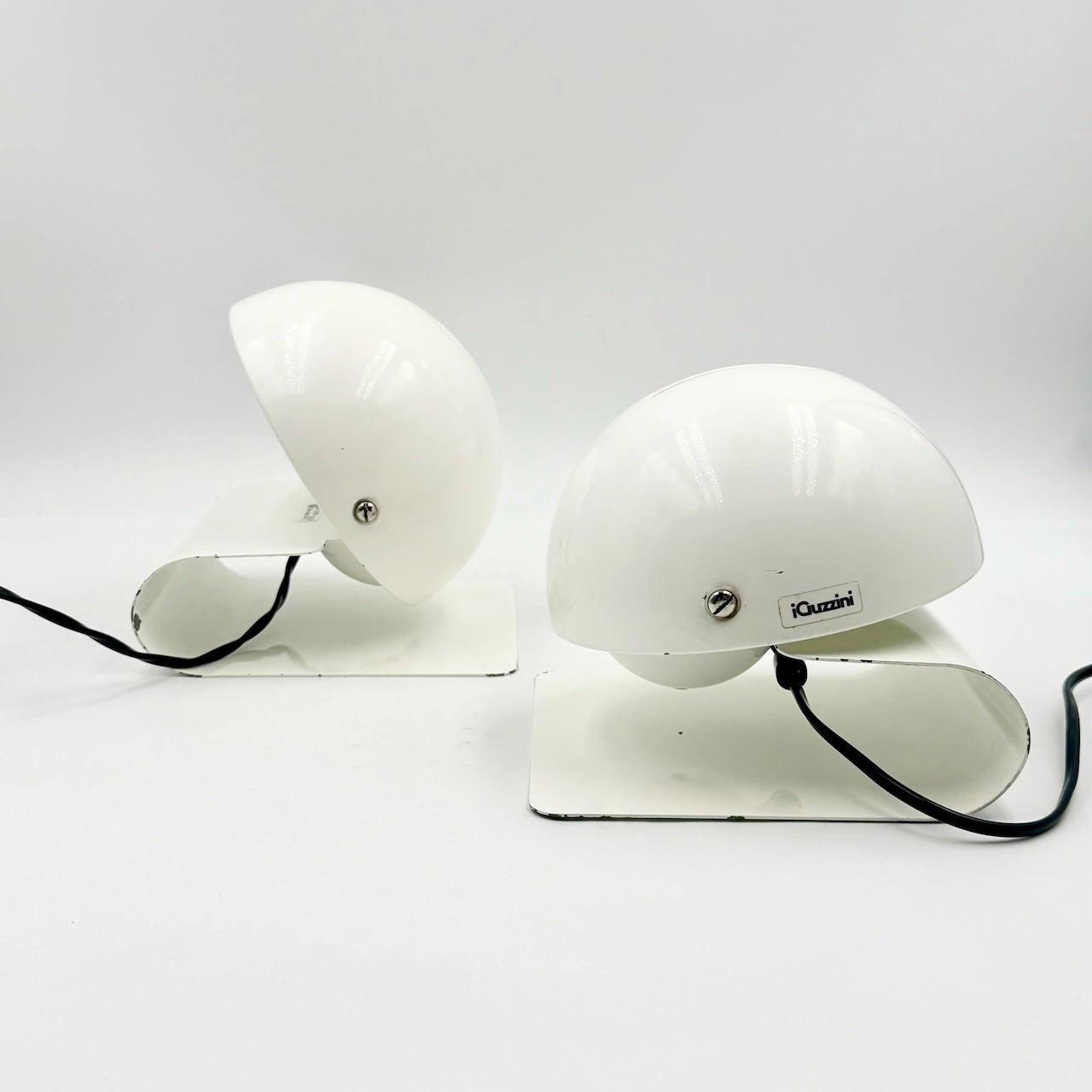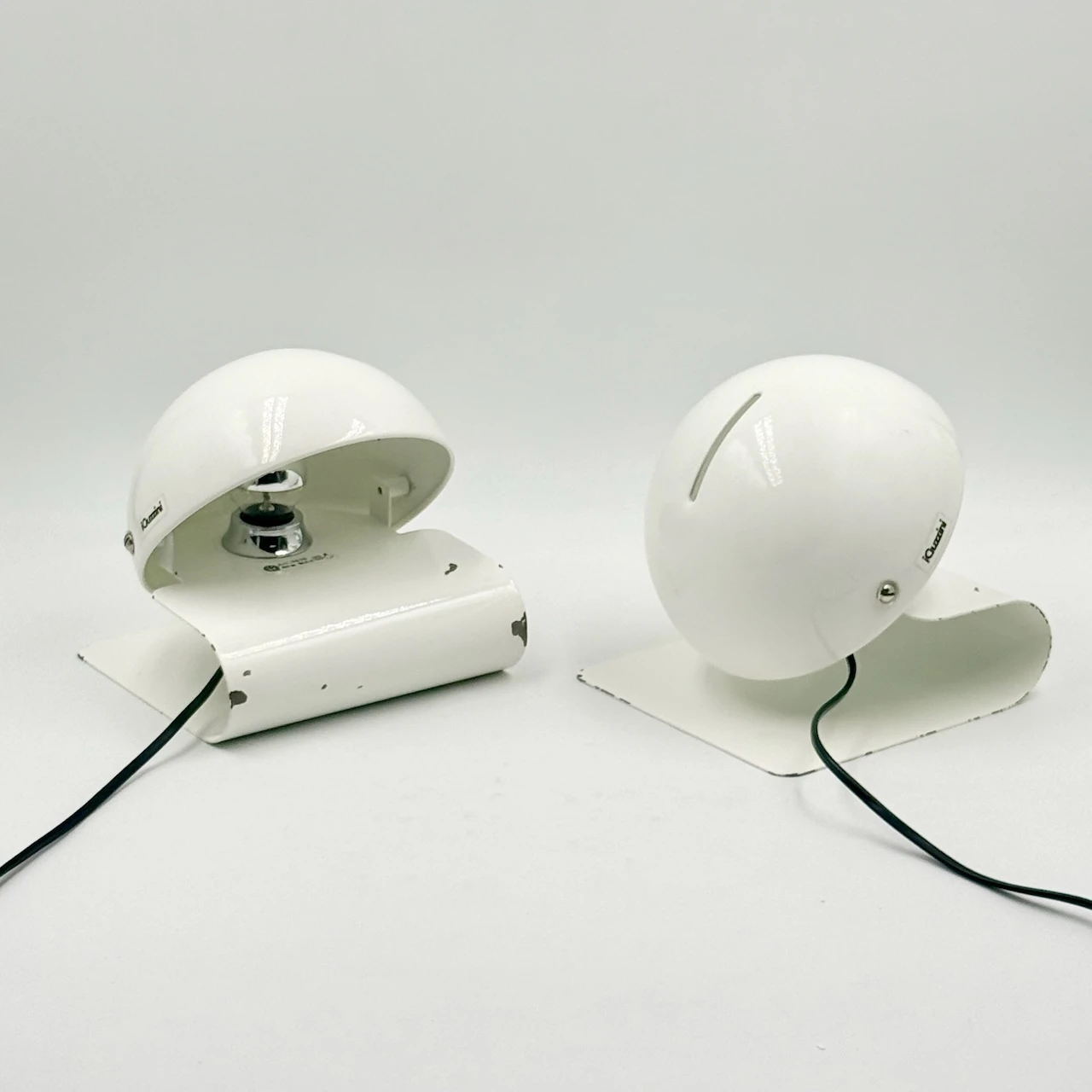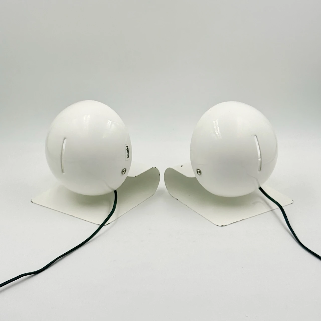 Whether placed in a modern living room, a retro-inspired space, or a cozy reading nook, the Bugia Lamp pair add a unique touch of vintage charm. Its versatile design, characterized by smooth contours and a sleek white shade, makes it an ideal complement to a variety of interior styles. Its rarity, combined with its iconic design and Italian heritage, makes it a valuable addition to any collection.