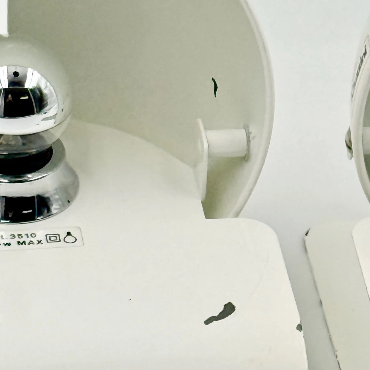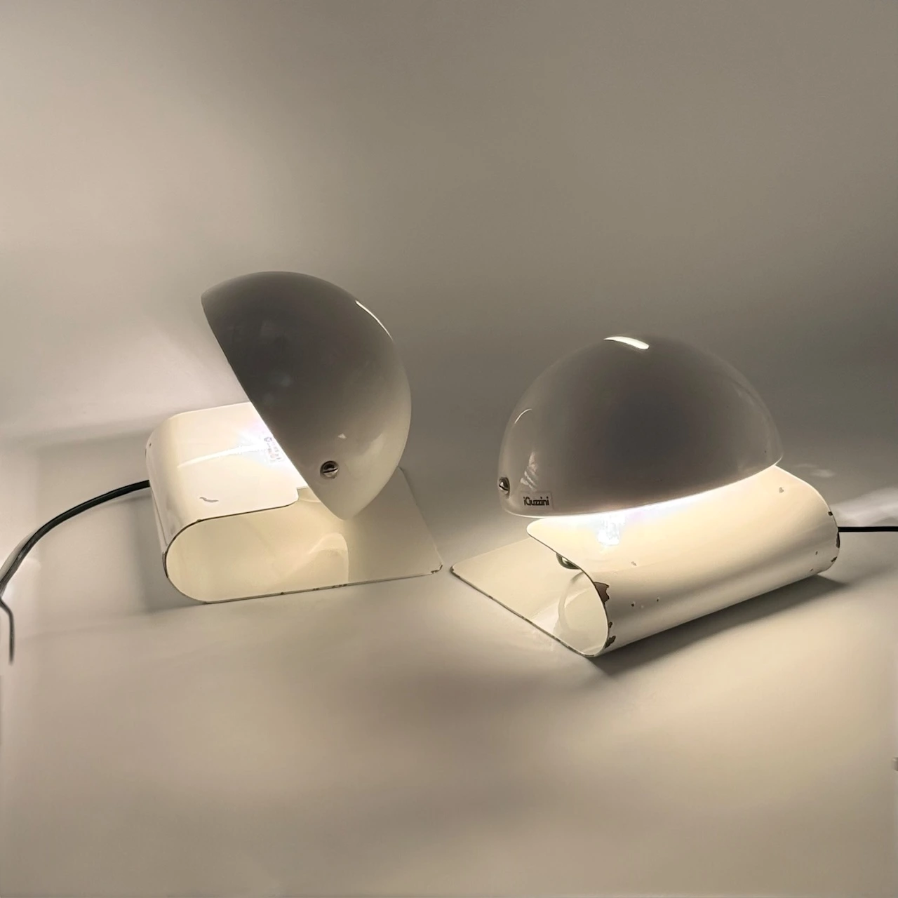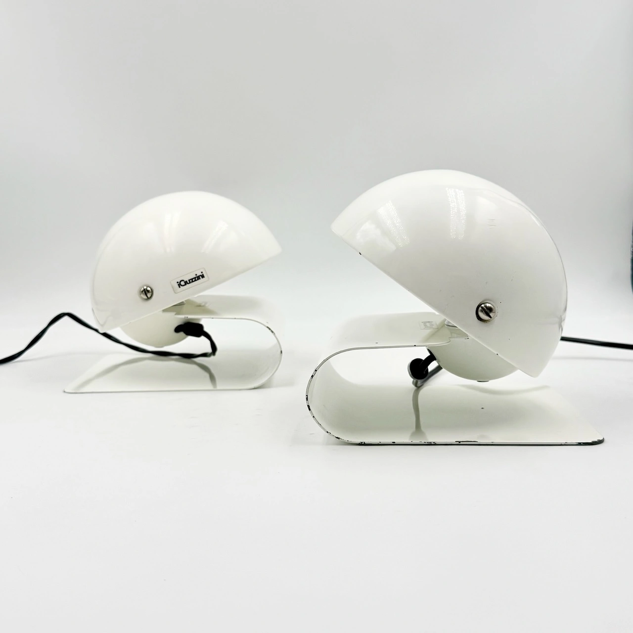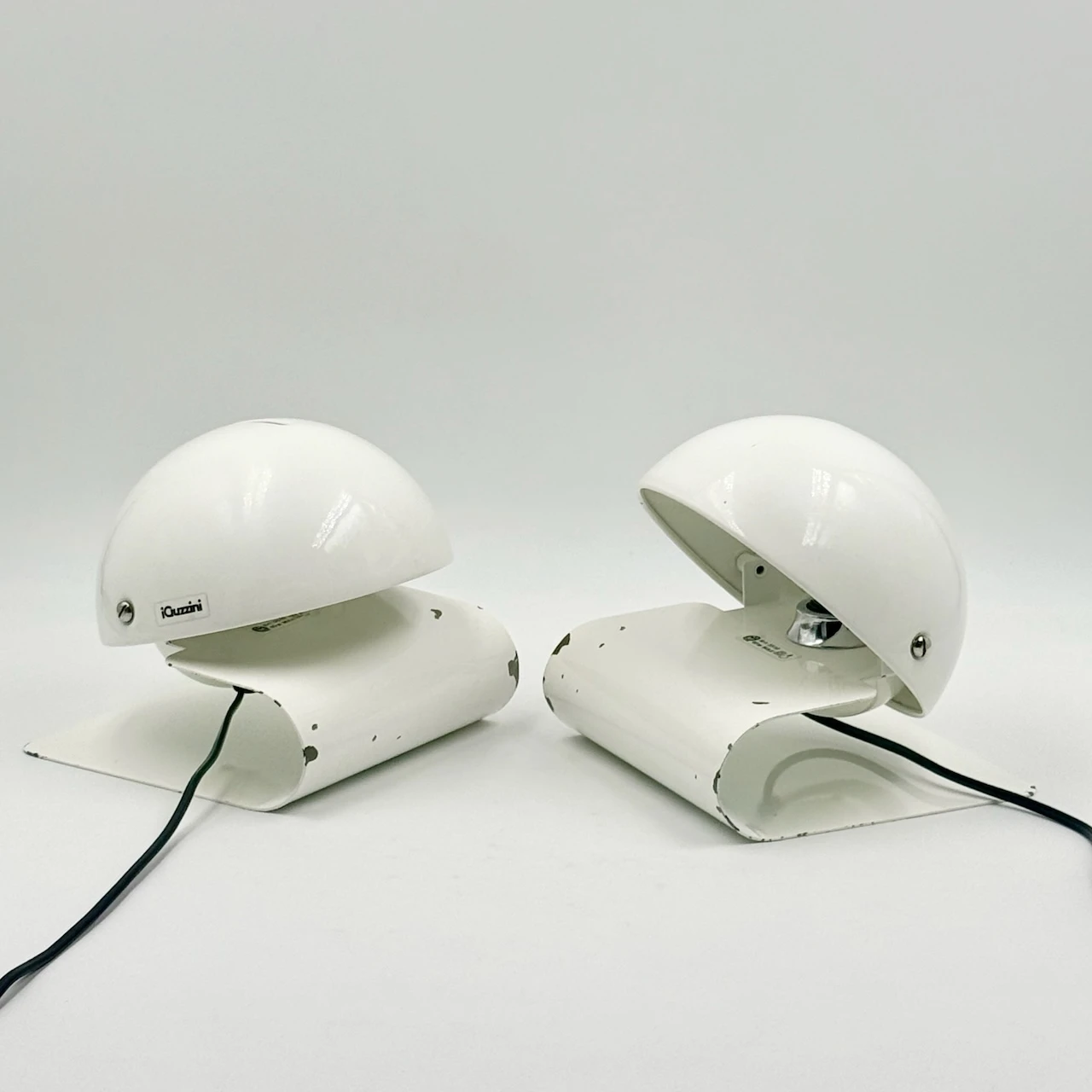 Whether placed in a modern living room, a retro-inspired space, or a cozy reading nook, the Bugia Lamp pair add a unique touch of vintage charm. Its versatile design, characterized by smooth contours and a sleek white shade, makes it an ideal complement to a variety of interior styles. Its rarity, combined with its iconic design and Italian heritage, makes it a valuable addition to any collection.