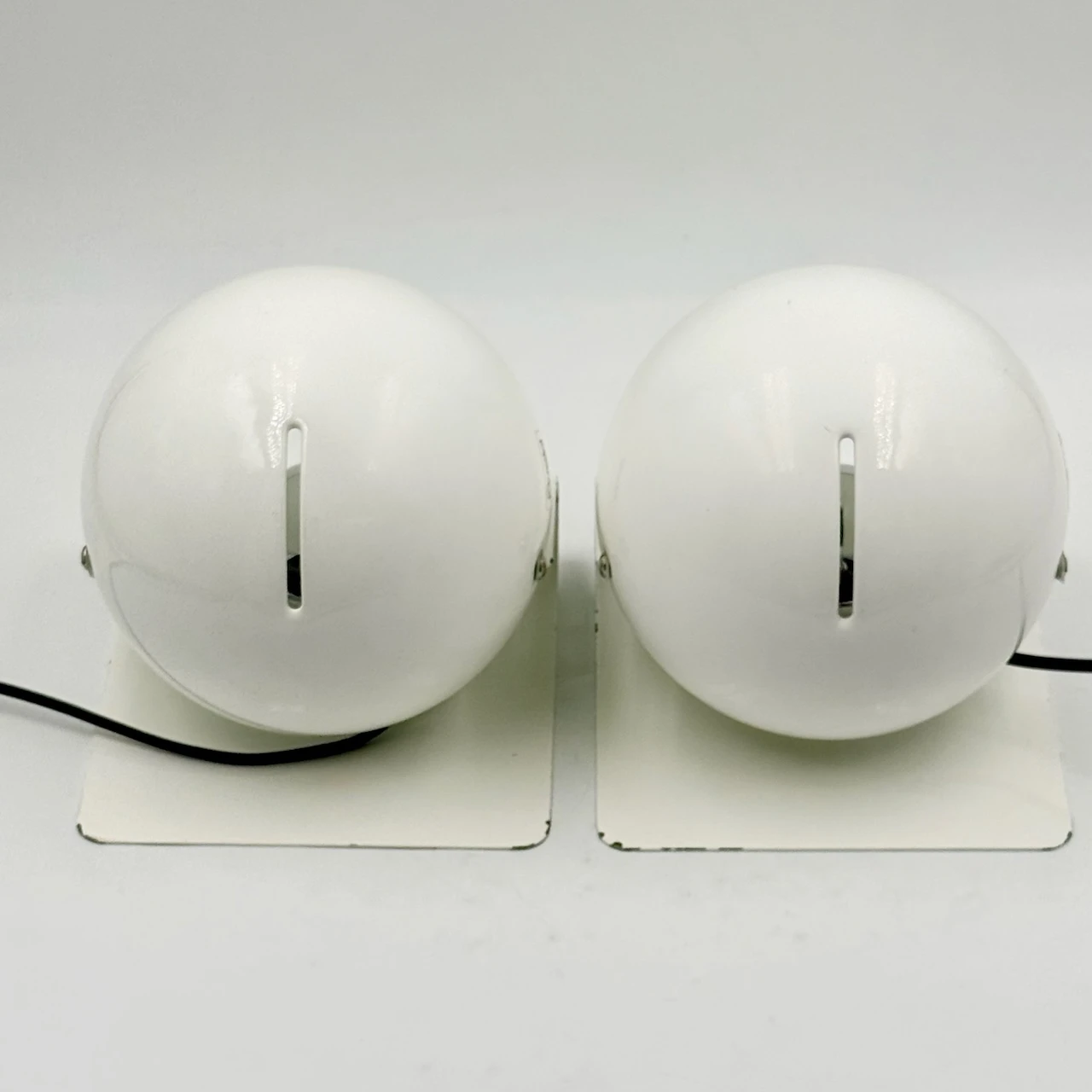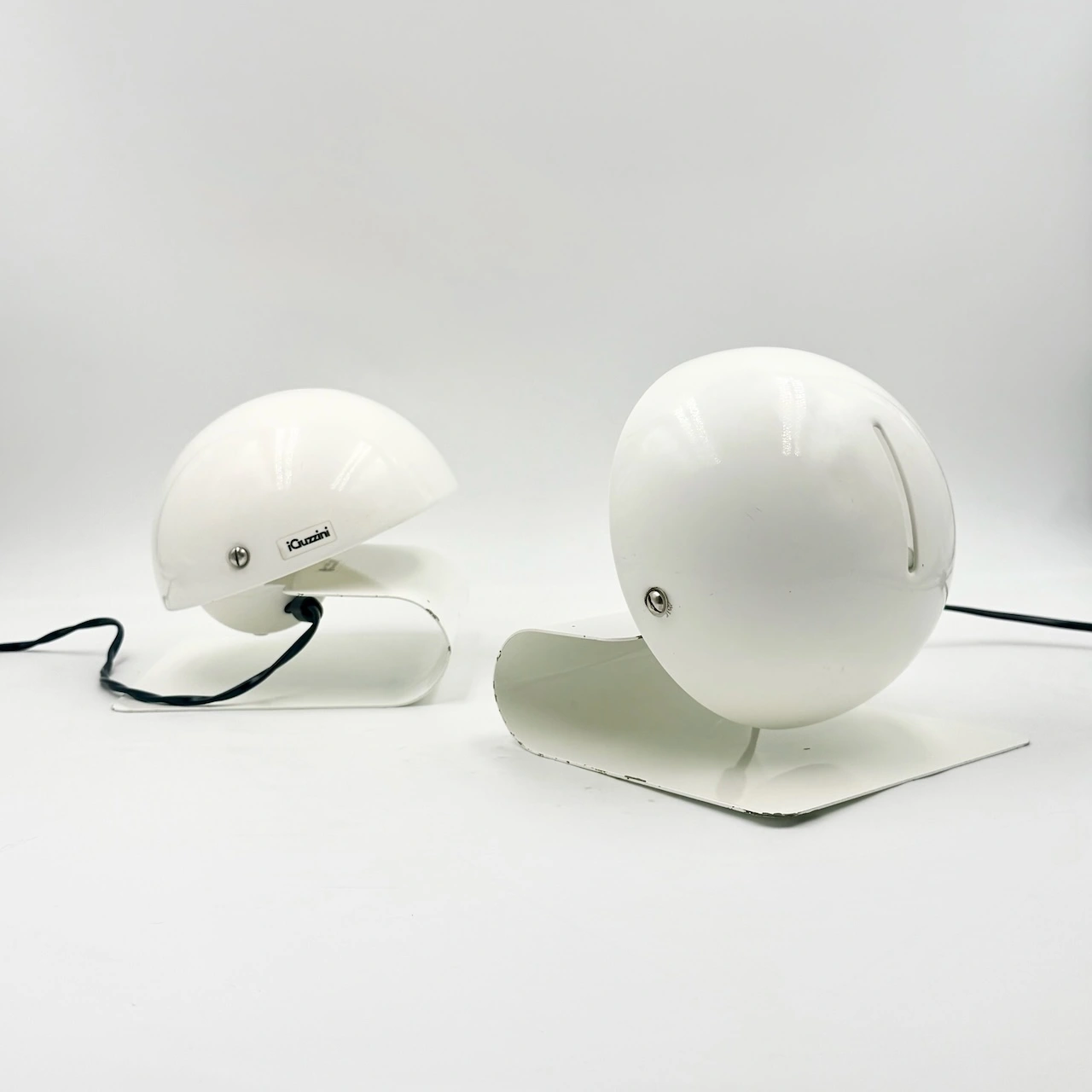 The Bugia Lamp is a key piece in the world of mid-century modern and space age design, reflecting a unique moment in Italian design history. This Bugia Lamp pair embody the essence of 1970s design with its elegant, smooth curves and minimalist form. Its white finish adds a sophisticated touch, setting it apart from other color variants.
