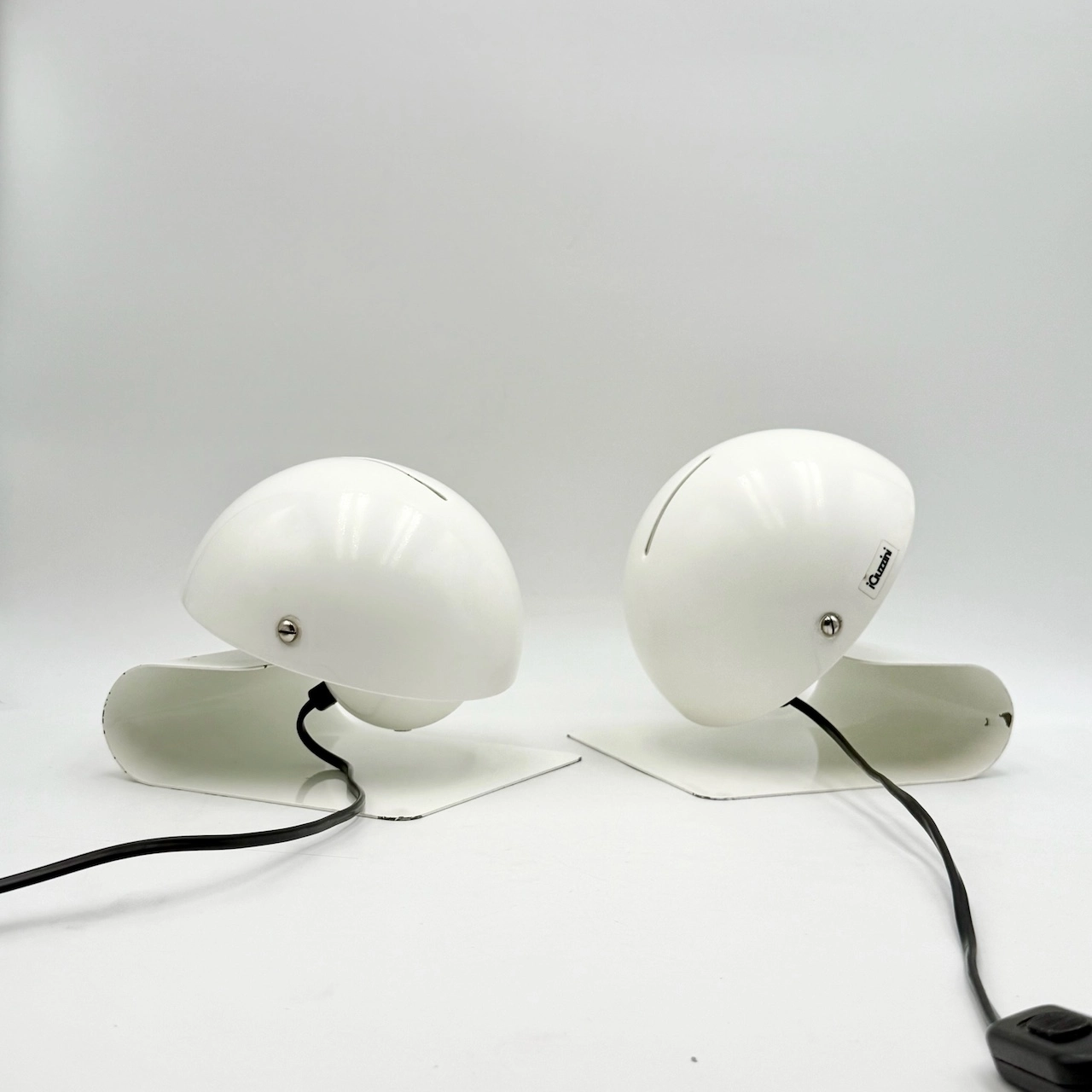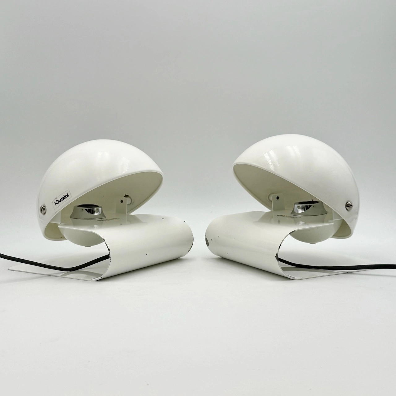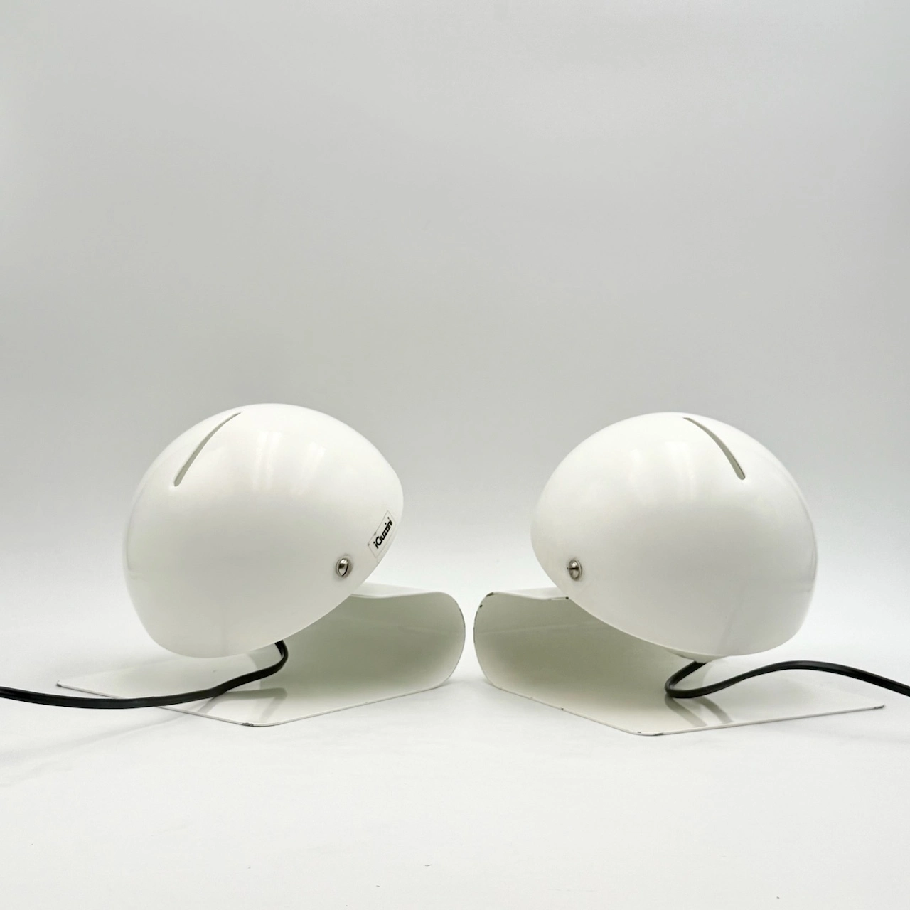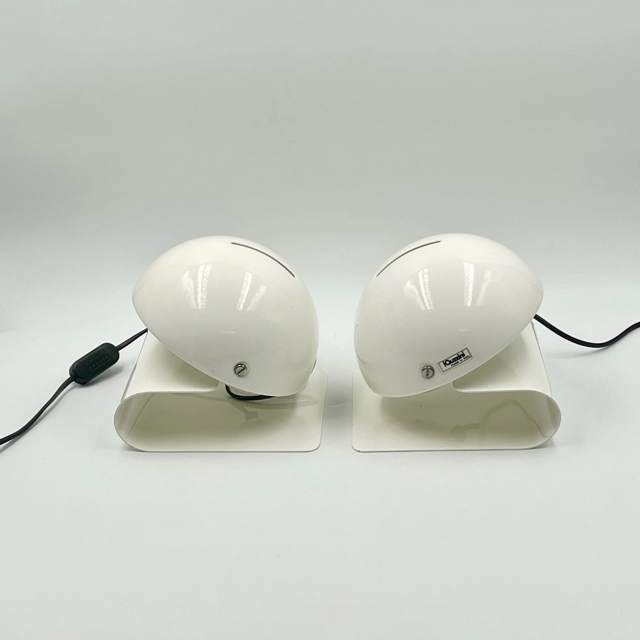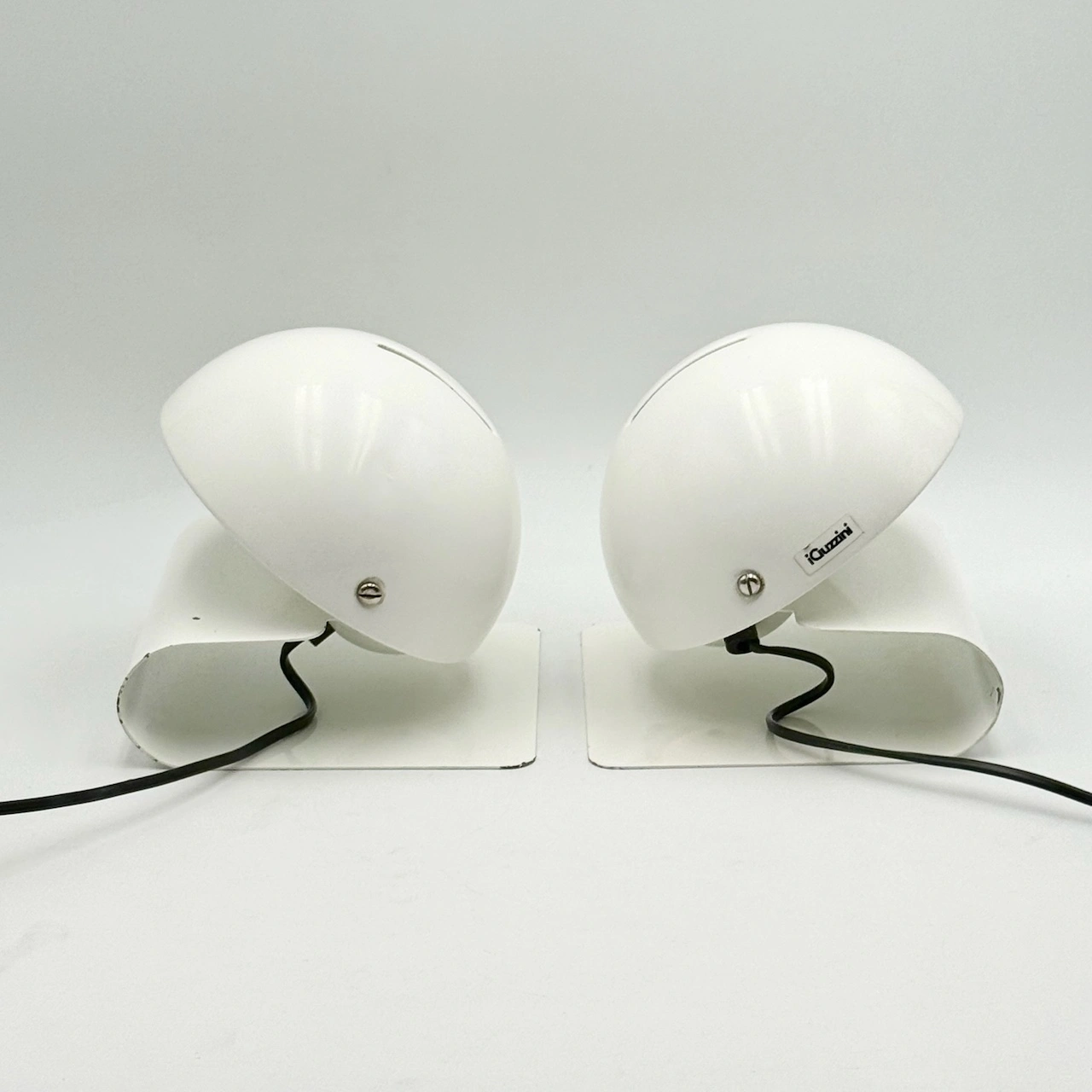 Beautiful pair of iGuzzini Bugia Lamps by Giuseppe Cormio. A 1970s Italian icon with a minimalistic white finish, perfect for vintage and mid-century decor.