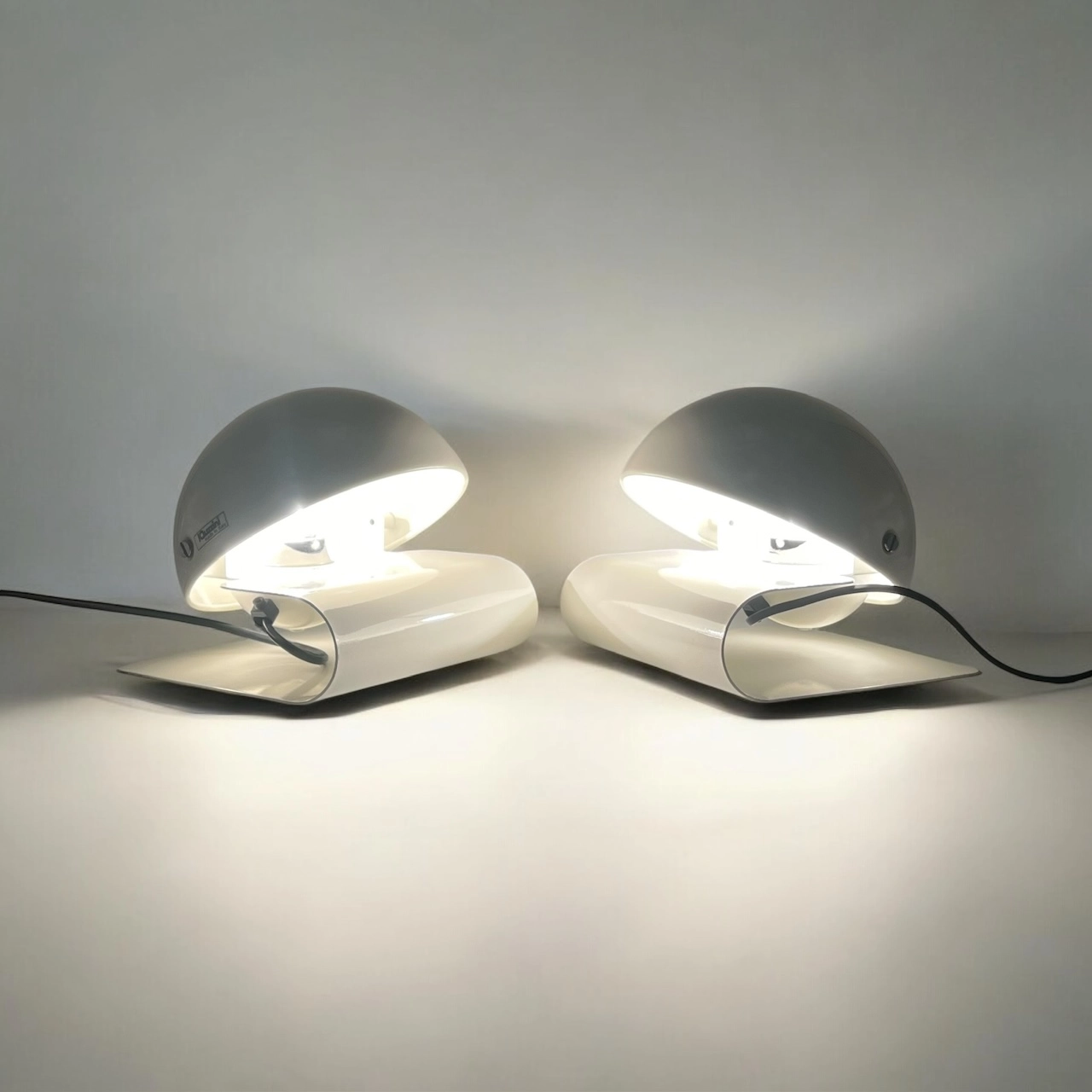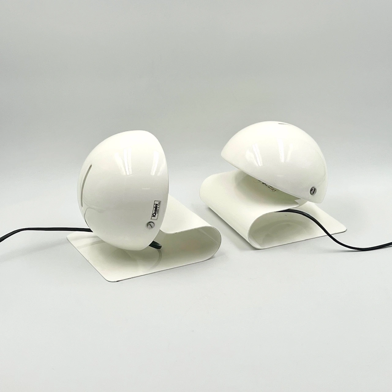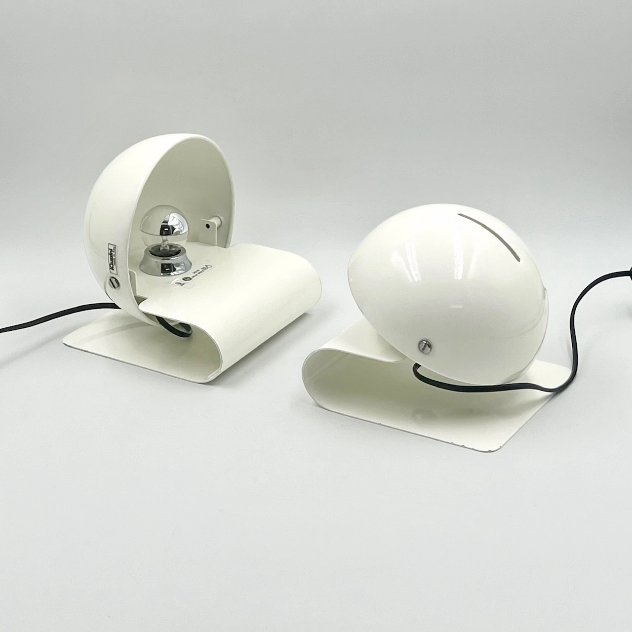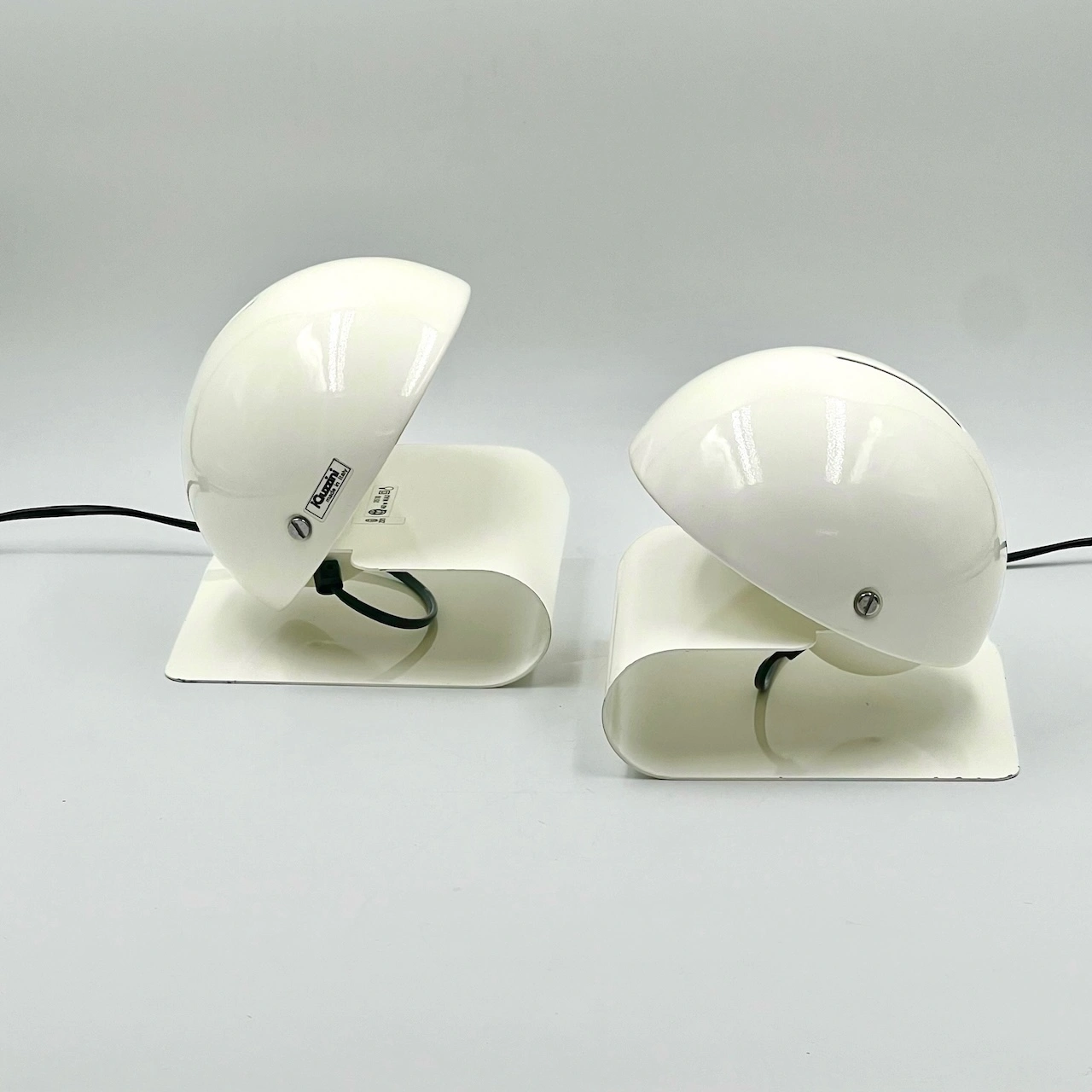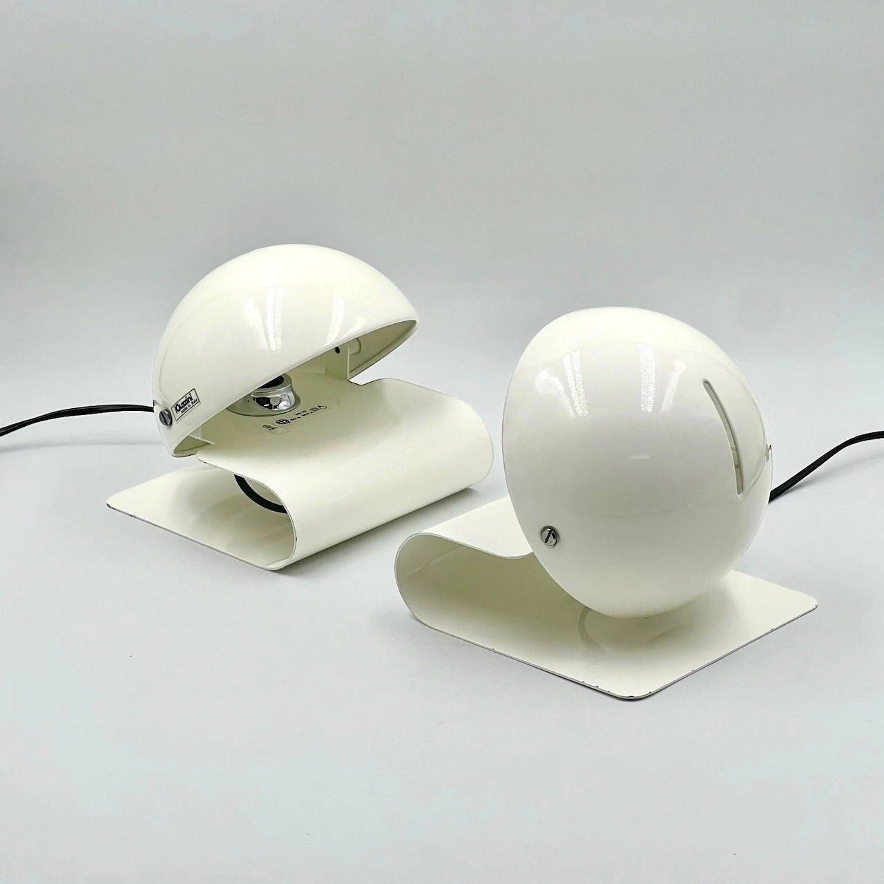 Beautiful pair of iGuzzini Bugia Lamps by Giuseppe Cormio. A 1970s Italian icon with a minimalistic white finish, perfect for vintage and mid-century decor.