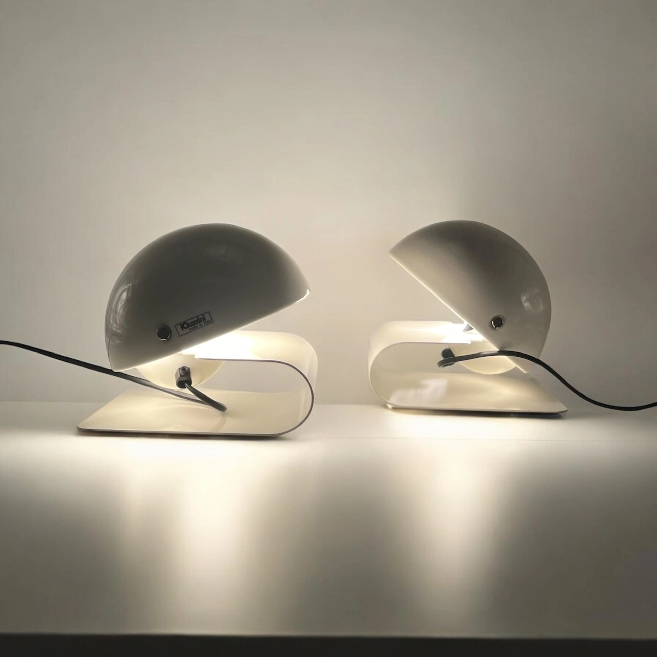 Whether placed in a modern living room, a retro-inspired space, or a cozy reading nook, the Bugia Lamp adds a unique touch of vintage charm. Its versatile design, characterized by smooth contours and a sleek white shade, makes it an ideal complement to a variety of interior styles. Its rarity, combined with its iconic design and Italian heritage, makes it a valuable addition to any collection.