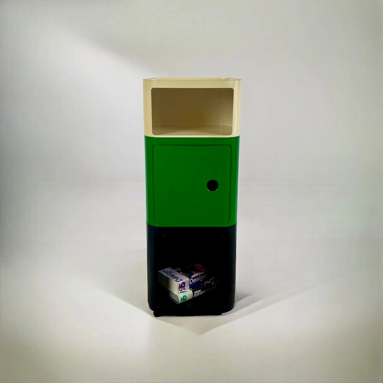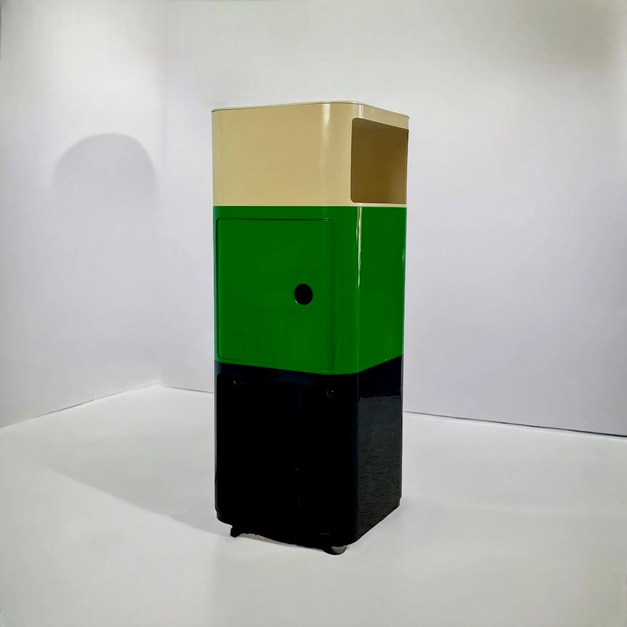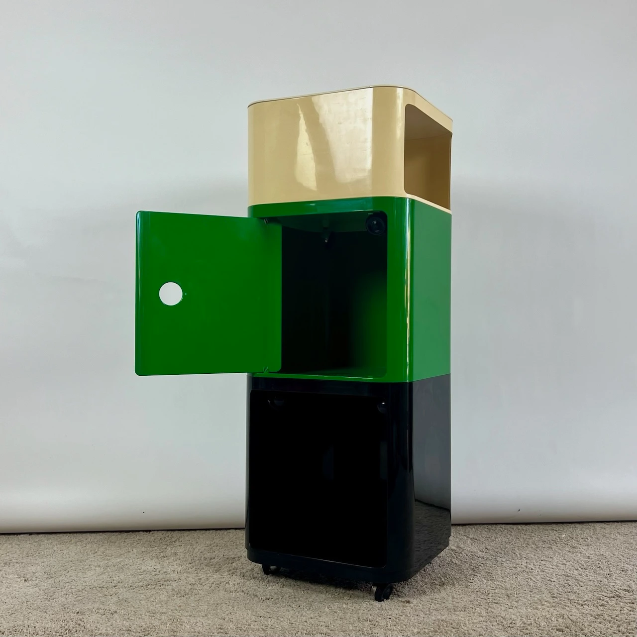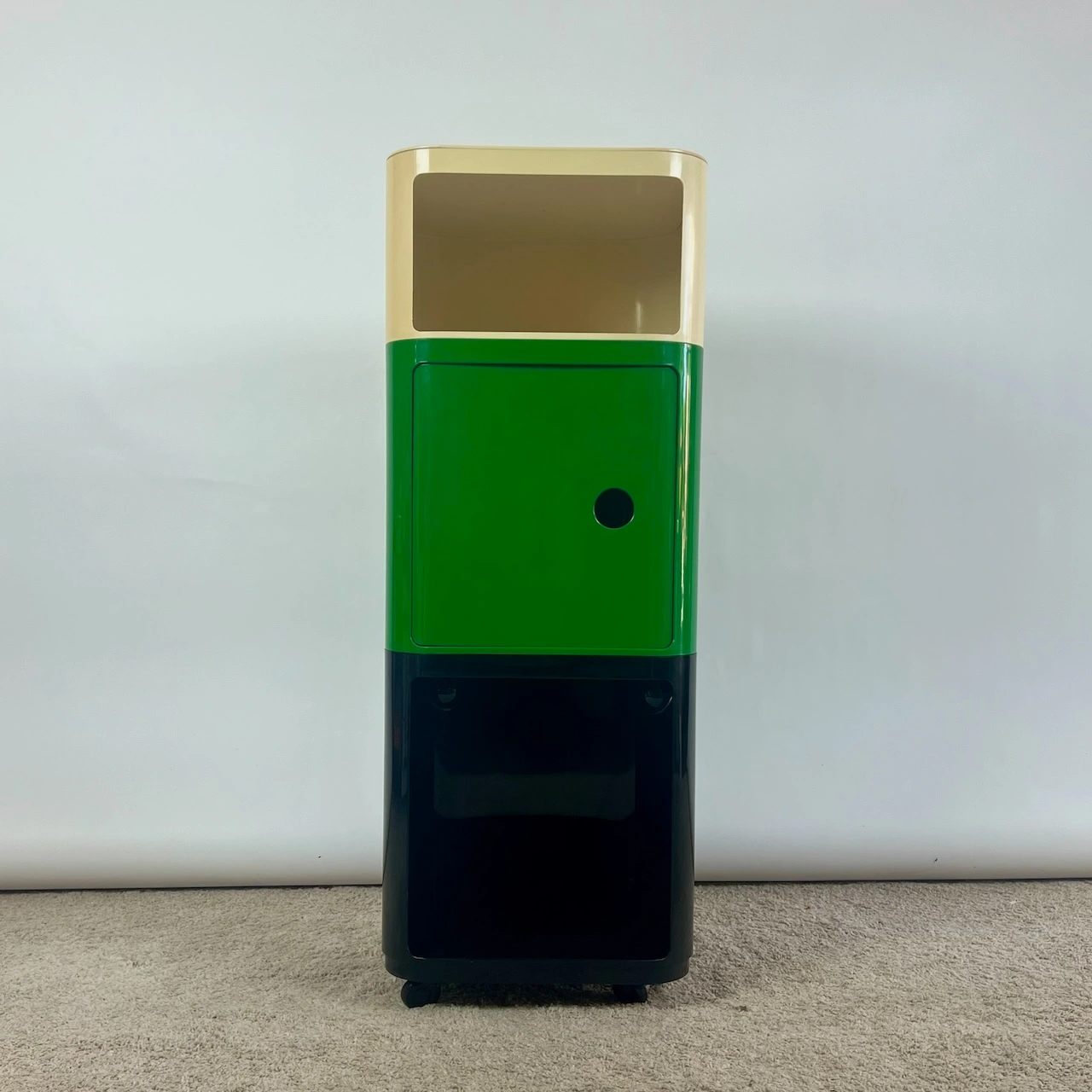 item. cabinet with wheels, storage containersdesigner. Anna Castelli Ferrierimaker. kartellmodel. 4970/75/76/79period. 1960/70scountry. Italymaterial. ABScolor. beige, green, blackdimensions (cm). 38 x 38 x 101 H.condition. very good condition, with minimal signs of age (scattered scratches and small stains).