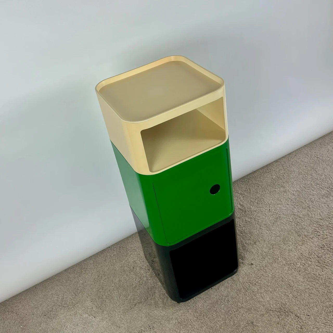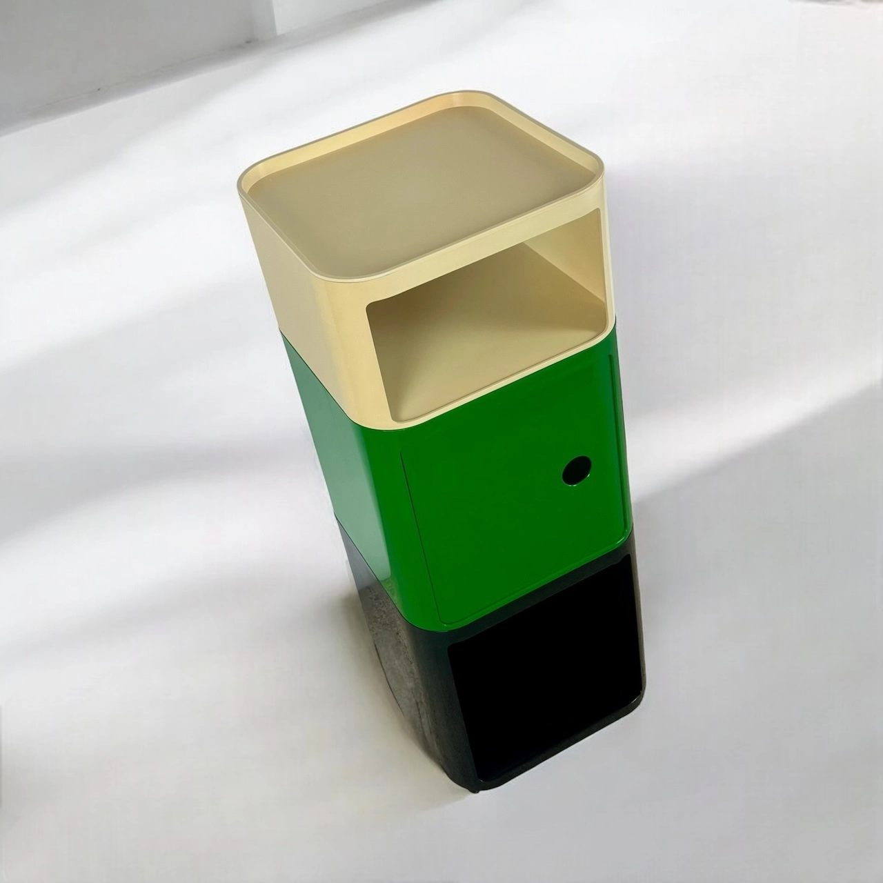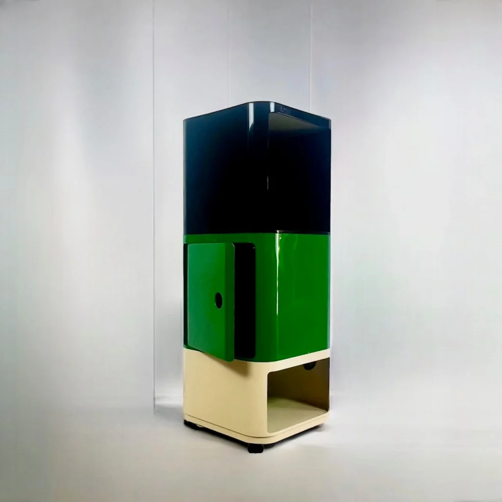 item. cabinet with wheels, storage containersdesigner. Anna Castelli Ferrierimaker. kartellmodel. 4970/75/76/79period. 1960/70scountry. Italymaterial. ABScolor. beige, green, blackdimensions (cm). 38 x 38 x 101 H.condition. very good condition, with minimal signs of age (scattered scratches and small stains).