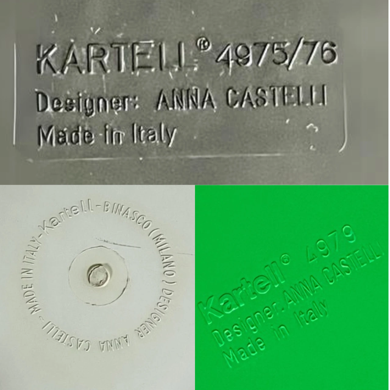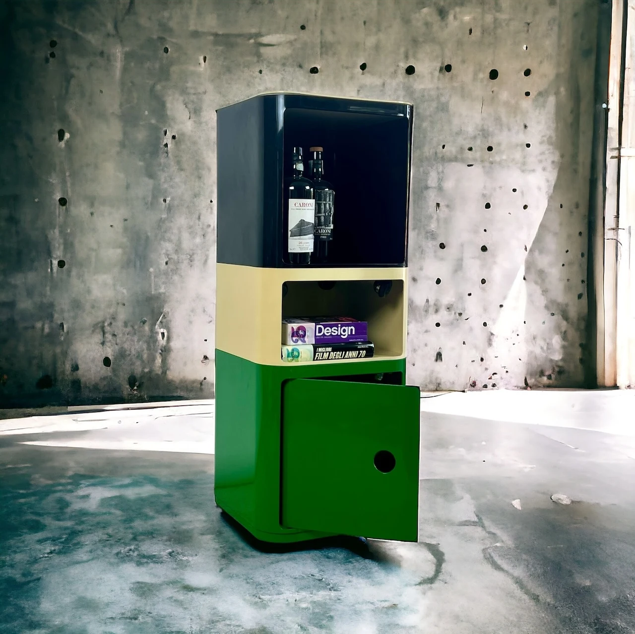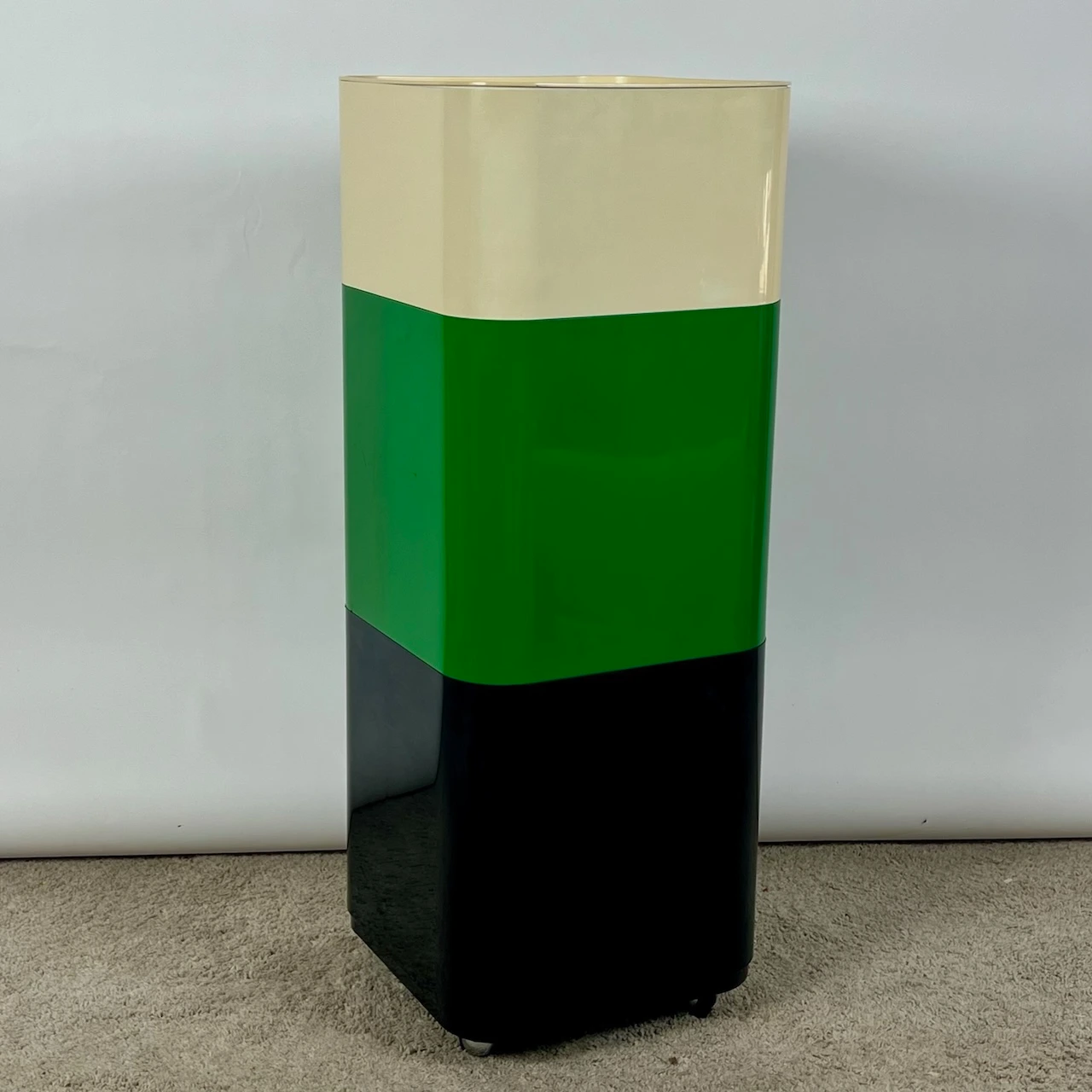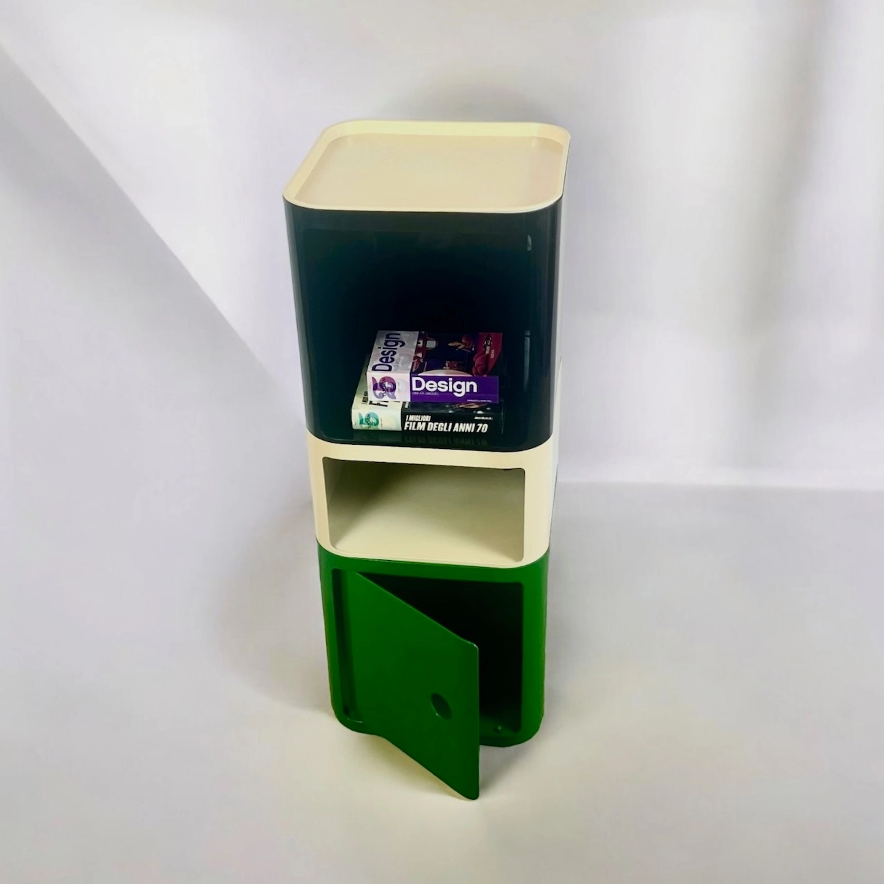item. cabinet with wheels, storage containersdesigner. Anna Castelli Ferrierimaker. kartellmodel. 4970/75/76/79period. 1960/70scountry. Italymaterial. ABScolor. beige, green, blackdimensions (cm). 38 x 38 x 101 H.condition. very good condition, with minimal signs of age (scattered scratches and small stains).