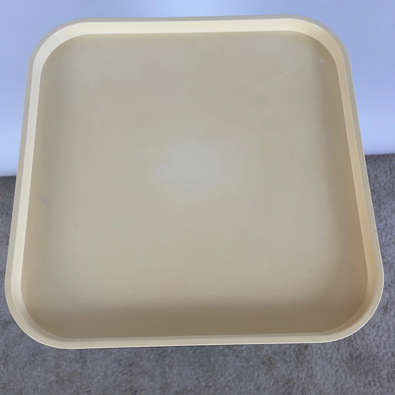 Space Age furniture design set of 3 modular storage units by Kartell, part of the iconic series crafted by Anna Castelli Ferrieri in the late 60s and early 70s. These authentic vintage pieces are not reproductions and feature the distinctive square base with rounded corners, a hallmark of Anna Castelli Ferrieris timeless design.