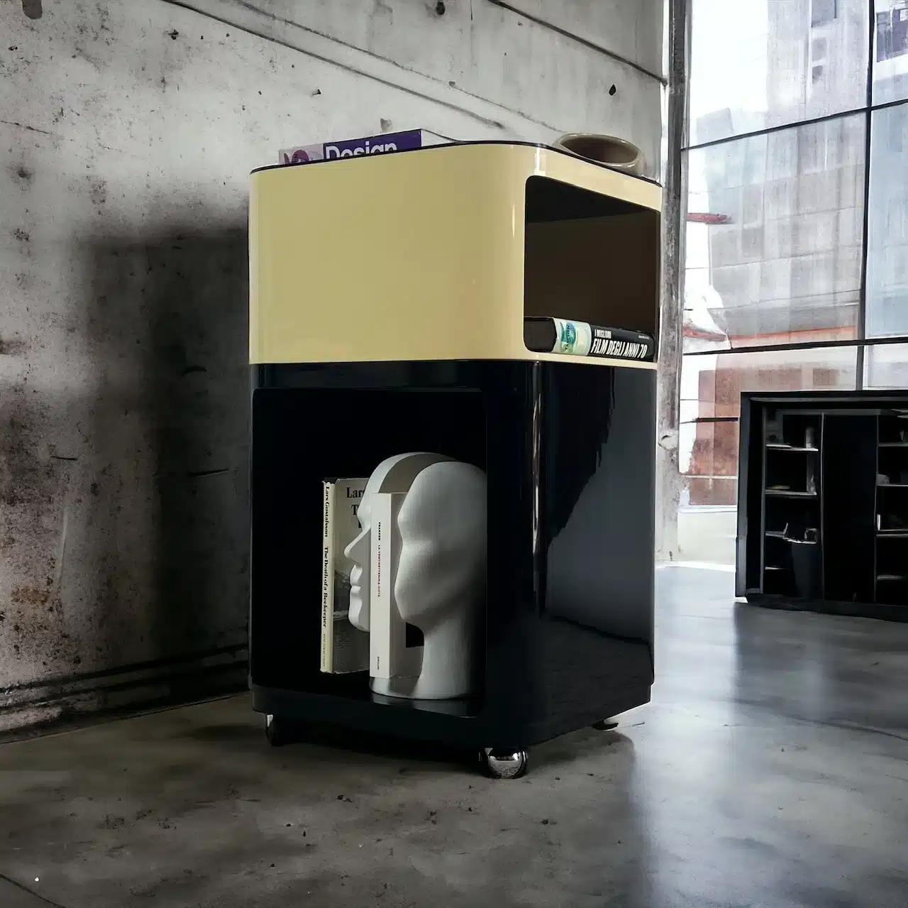 Embodying the innovative spirit of the Space Age era, these Componibili units are a perfect blend of form and function. The modular design allows for versatile use, whether stacked together for a striking vertical storage solution or used individually to enhance different spaces. The distinctive rounded corners and smooth lines are signature elements of Ferrieri’s visionary approach to modern furniture.