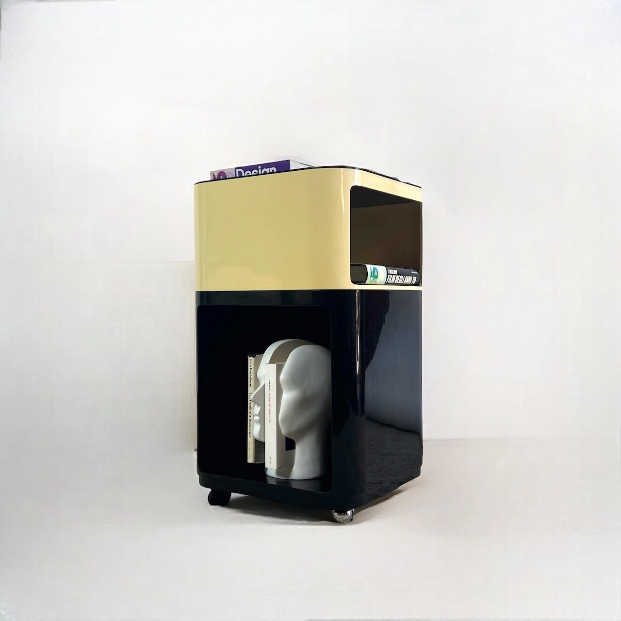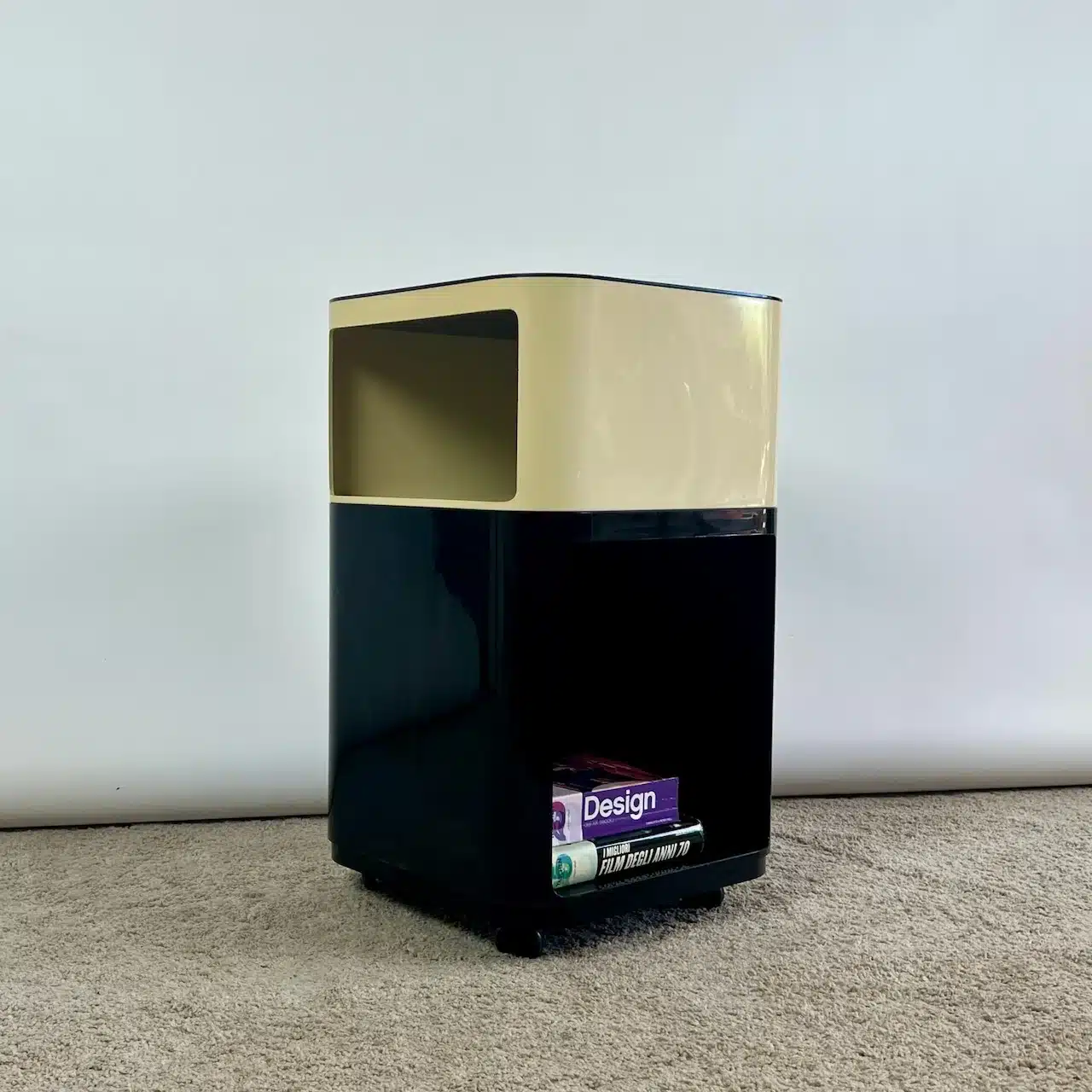 item. cabinet with wheels, storage containersdesigner. Anna Castelli Ferrierimaker. kartellmodel. 4975/6 (black) / 4970 (off white)period. 1960scountry. Italymaterial. ABScolor. black / whitedimensions (cm). 64 H (with wheels) x 38 W x 38 Dcondition. excellent vintage condition with signs of wear consistent with age (discoloration, halos, scratches).