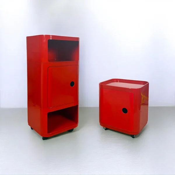 item. serving trolleys, storage units designer. Anna Castelli Ferrierimaker. kartellmodel. 4970+4975/6period. 1960scountry. Italymaterial. ABScolor. reddimensions (cm). 38 x 38 x 64 Hcondition. excellent vintage condition. all the modules are intact, clean, and well-preserved. minor and superficial marks. art. no. 1673