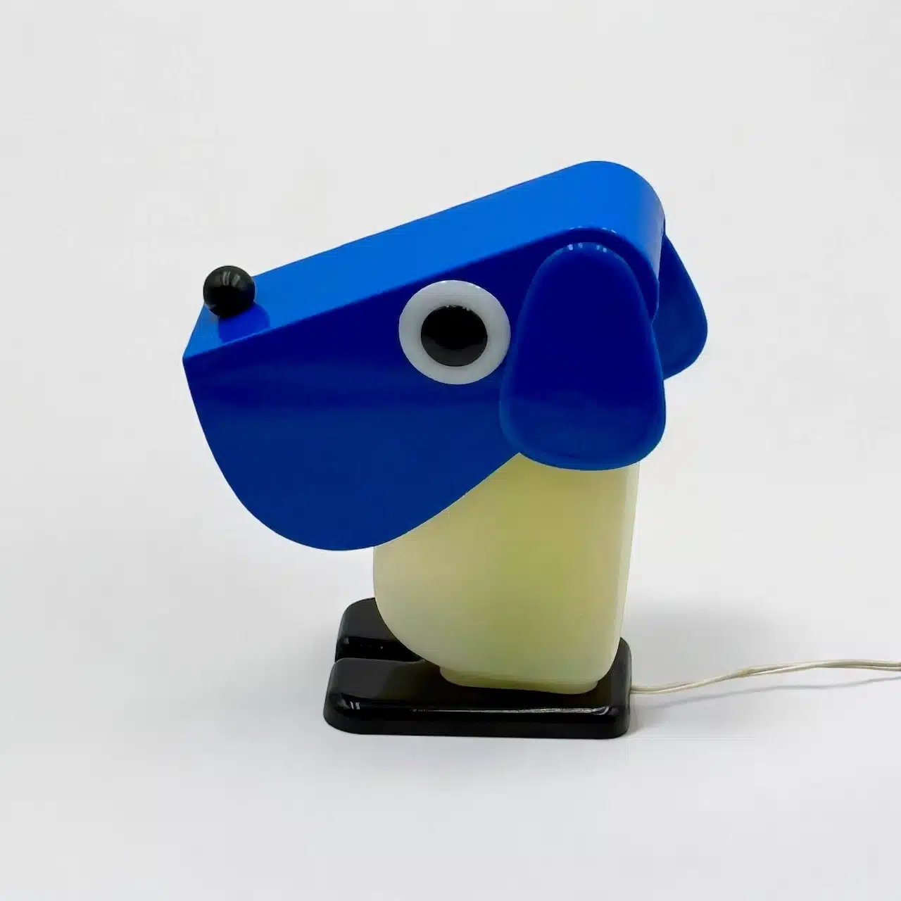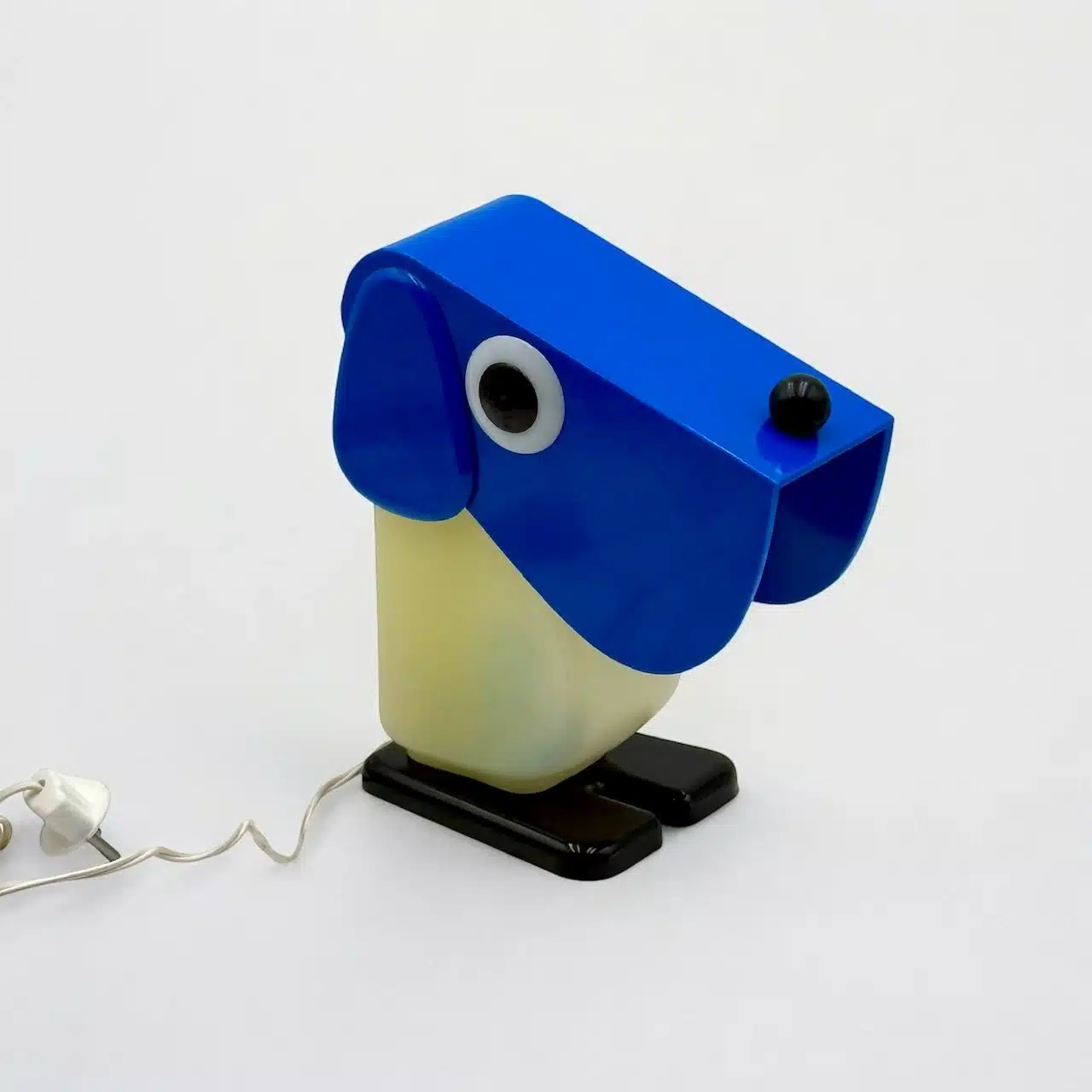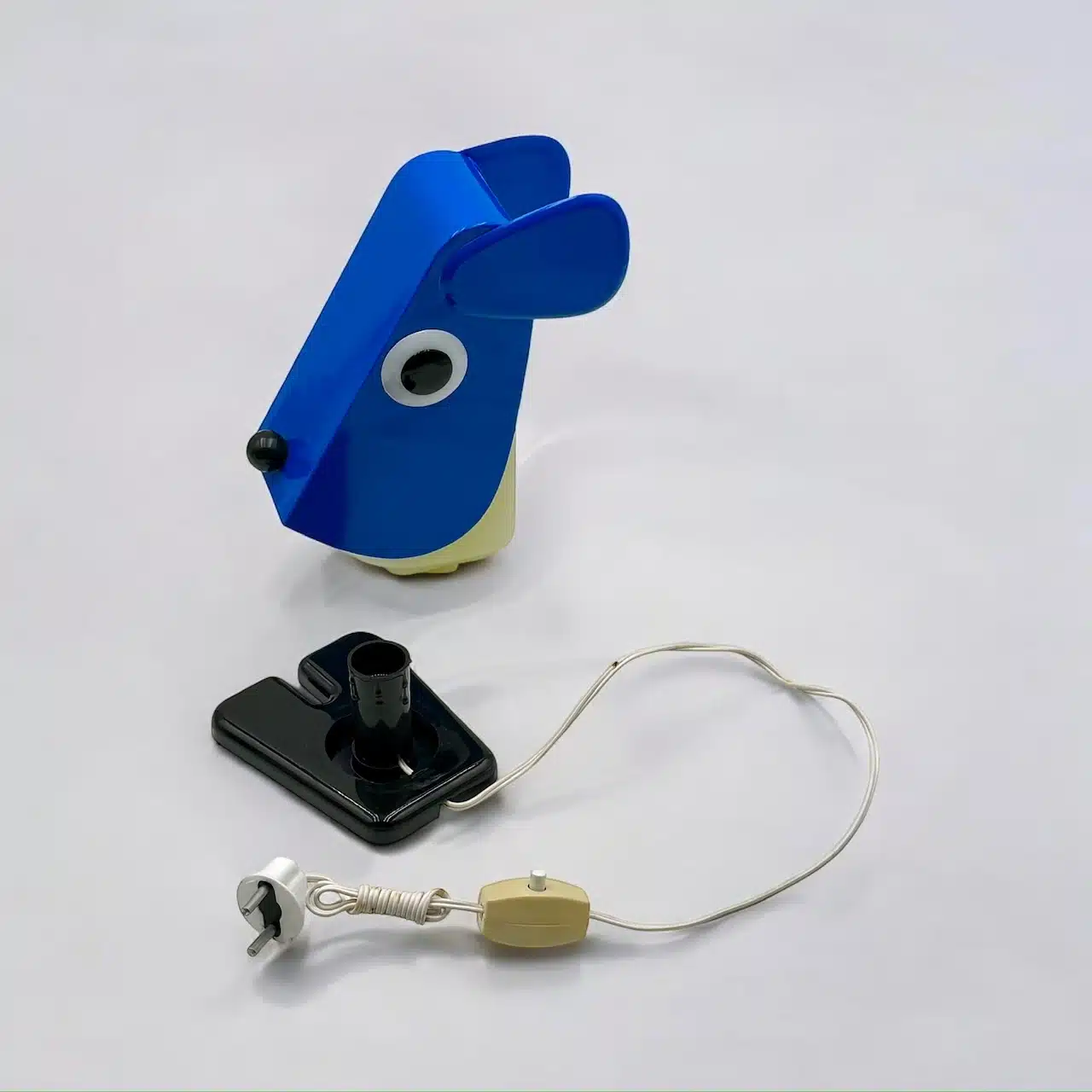 item. table lamp, desk lampdesigner. Fernando Cassettamaker. Tacman Manaramodel. Rufus the Dogperiod. 1970scountry. Italymaterial. plasticcolor. blue, white, black dimensions (cm). 11 x 9 x 20condition. excellent conditions with minimal signs of age (hardly visible yellowing of the white part, few small marks).