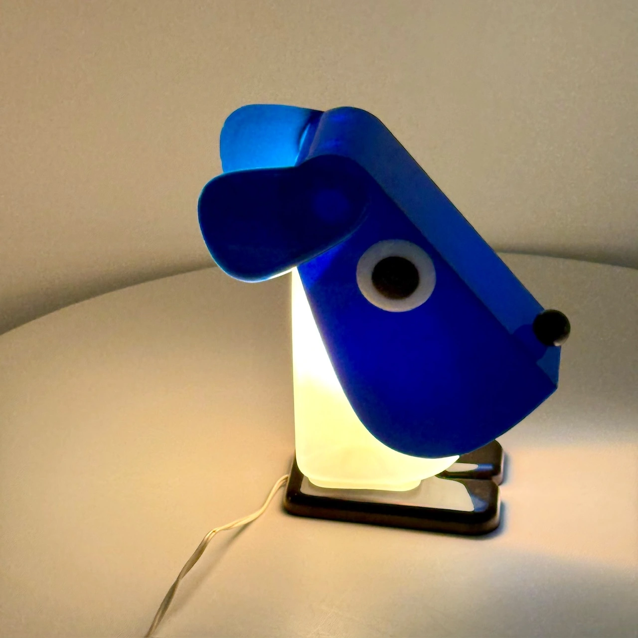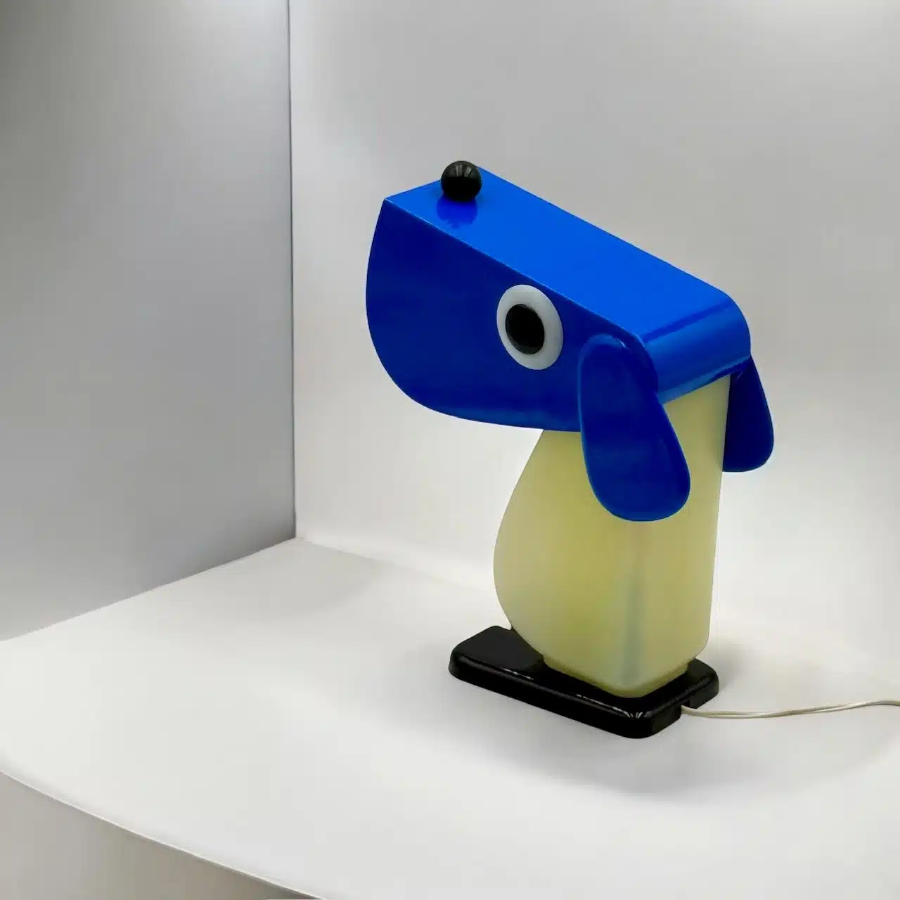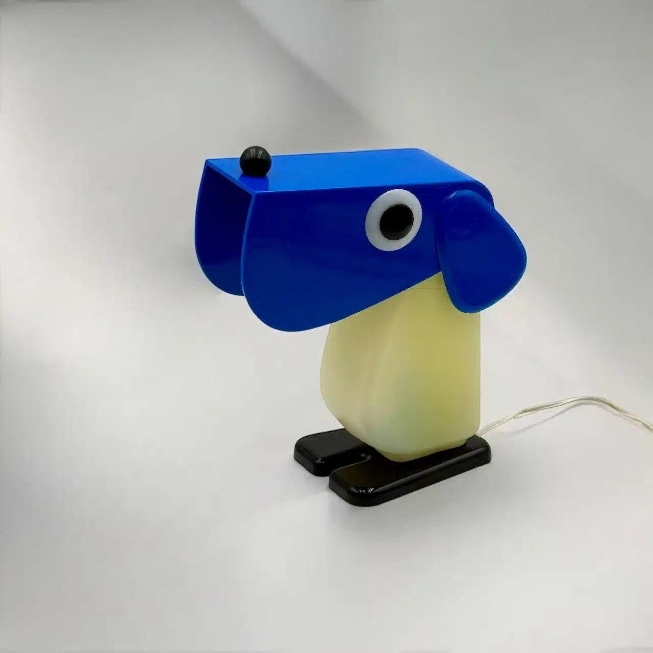 item. table lamp, desk lampdesigner. Fernando Cassettamaker. Tacman Manaramodel. Rufus the Dogperiod. 1970scountry. Italymaterial. plasticcolor. blue, white, black dimensions (cm). 11 x 9 x 20condition. excellent conditions with minimal signs of age (hardly visible yellowing of the white part, few small marks).