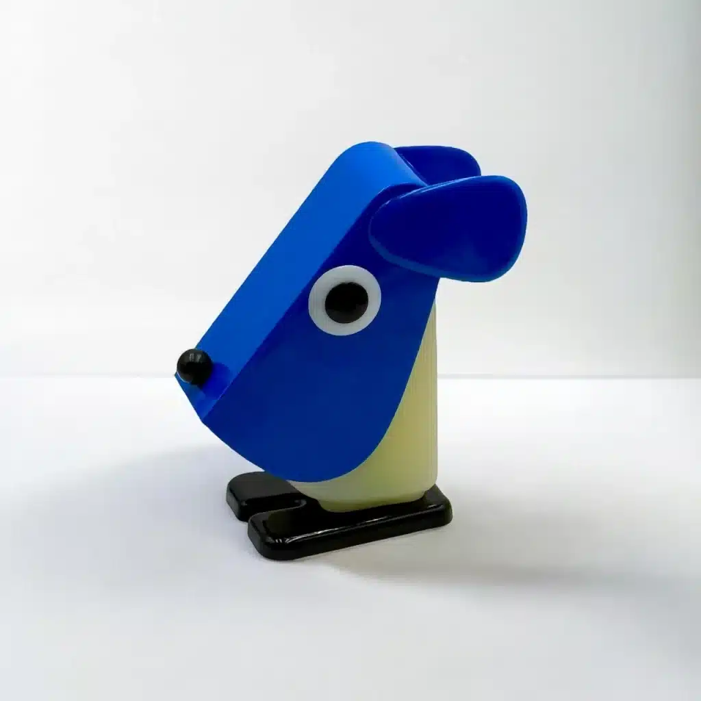 Rare Rufus Dog 70s vintage lamp in blue by Fernando Cassetta for Tacman Manara. An iconic vintage design piece, perfect for retro inspired interiors.