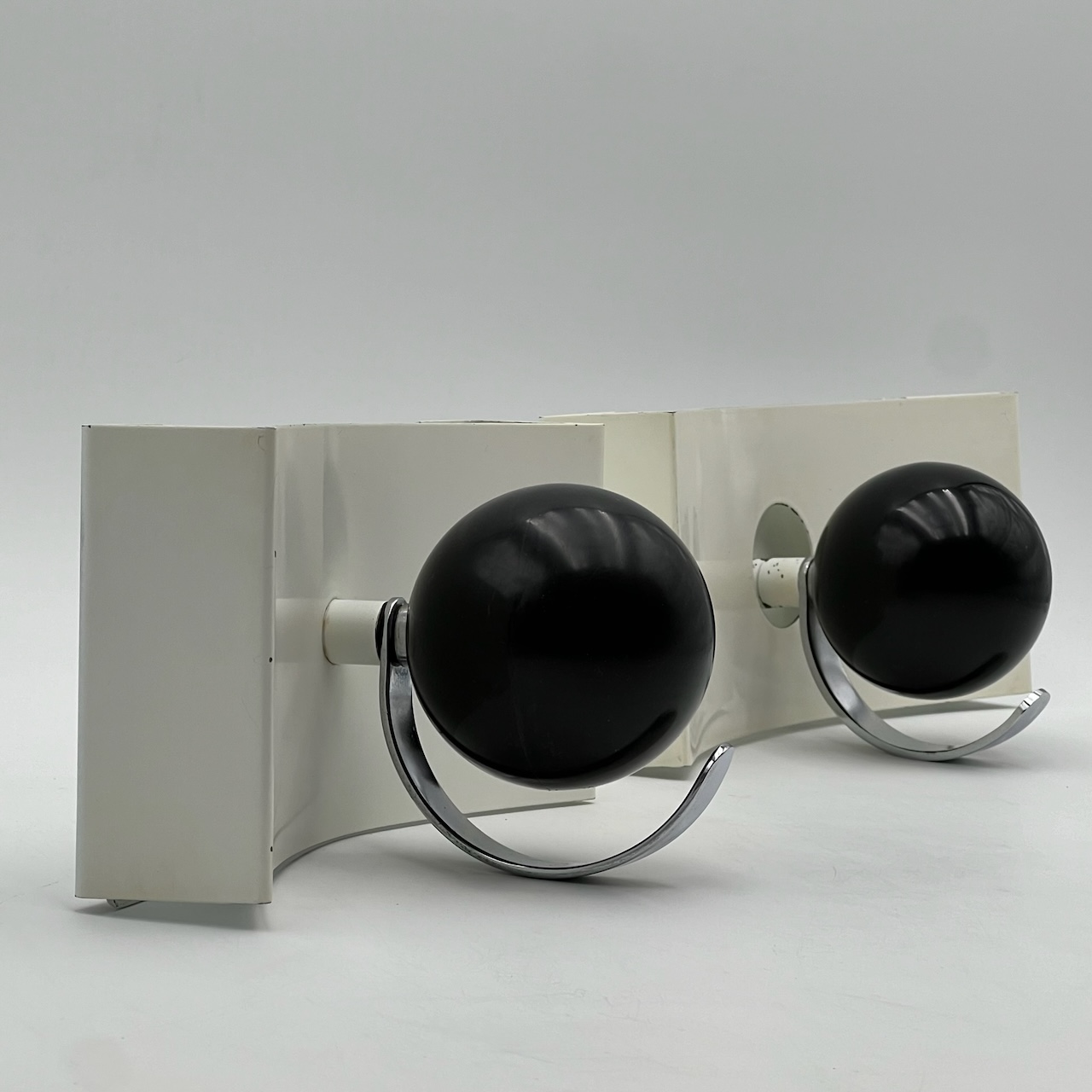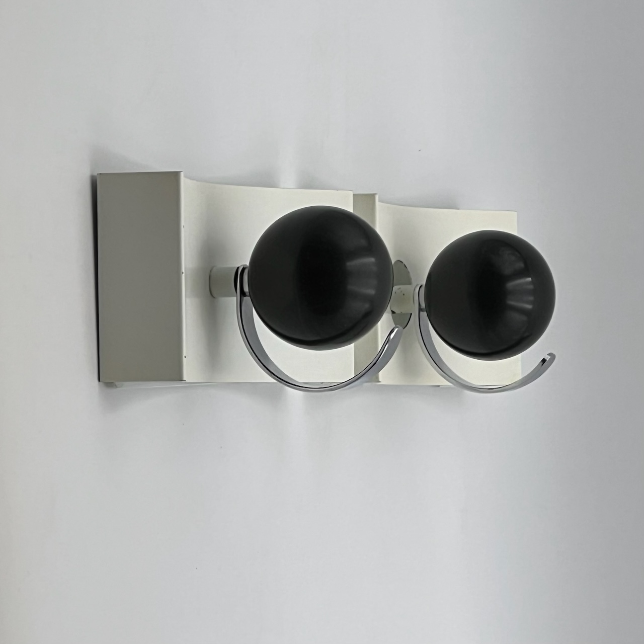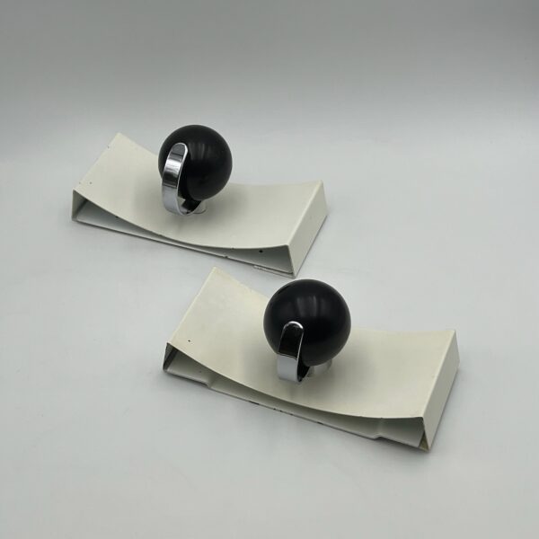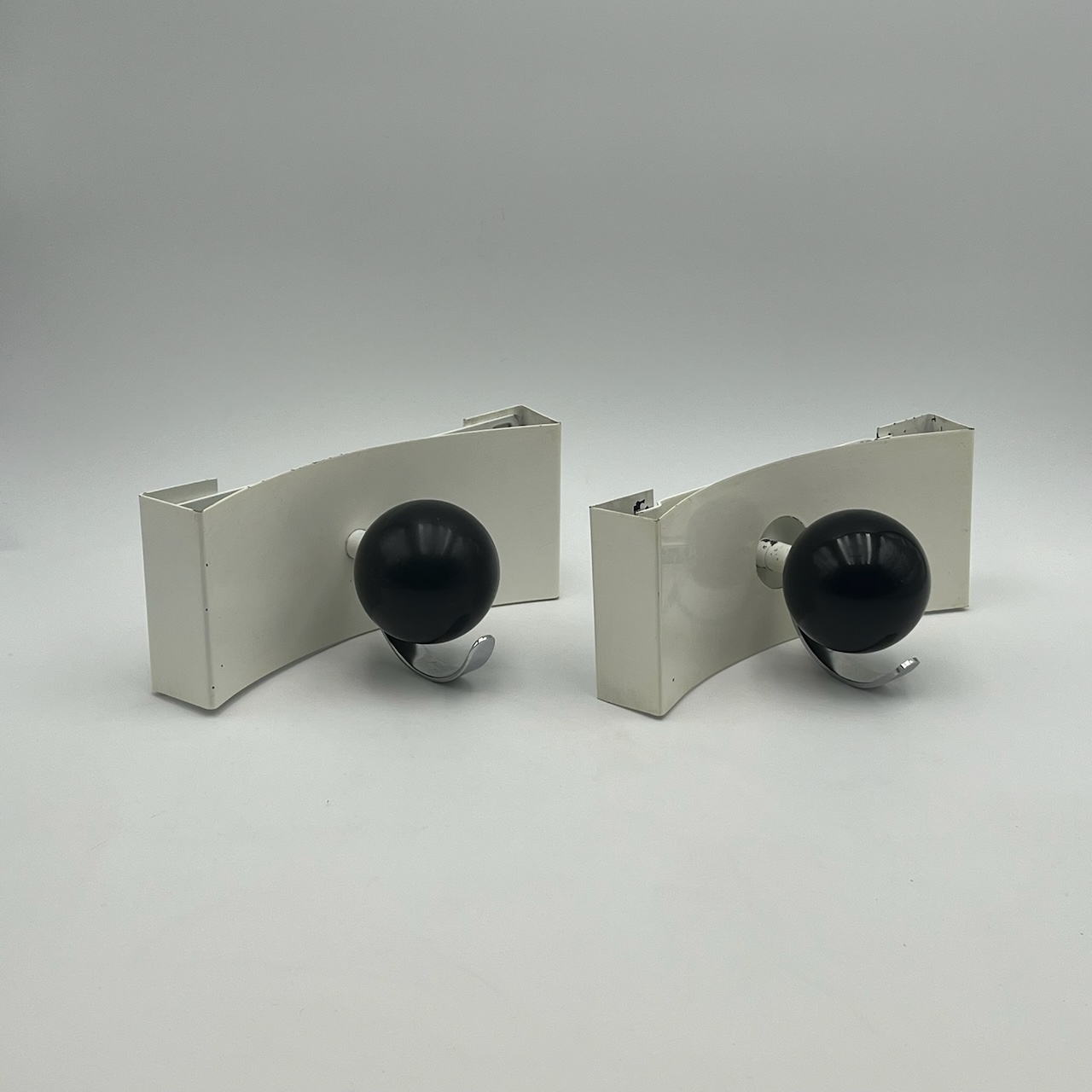 item. coat hangers, coat hooksmaker. Luci Illuminazione di Interni Milano period. 70scountry. Italymaterial. metal, plasticcolor. white, chrome, blackdimensions (cm). 26 x 13 x 11 Hcondition. very good conditions, with signs of time consistent with age. scuffs and marks on the white painting which are mostly present in the internal sides.