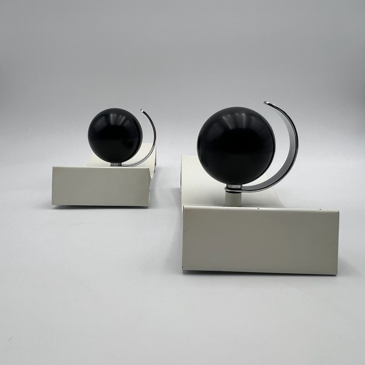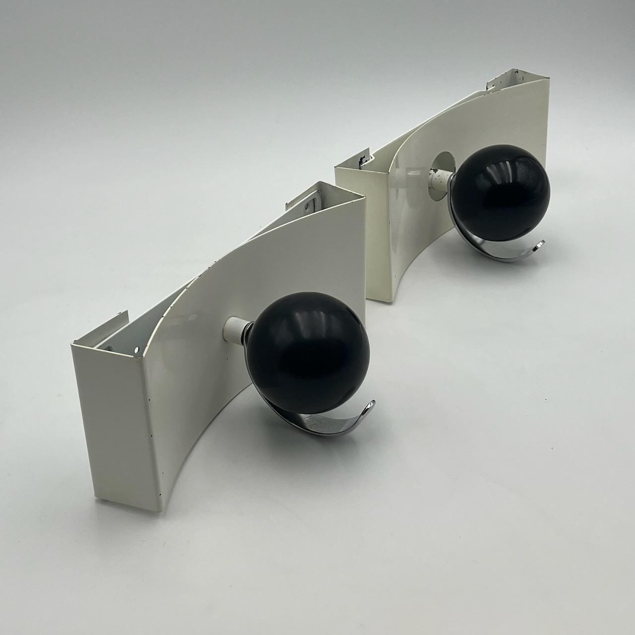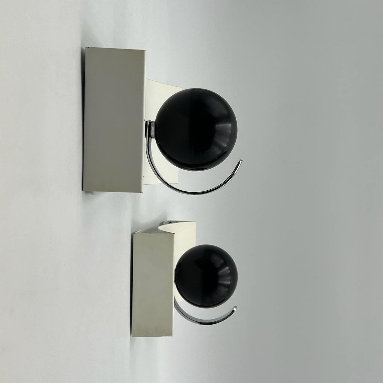 item. coat hangers, coat hooksmaker. Luci Illuminazione di Interni Milano period. 70scountry. Italymaterial. metal, plasticcolor. white, chrome, blackdimensions (cm). 26 x 13 x 11 Hcondition. very good conditions, with signs of time consistent with age. scuffs and marks on the white painting which are mostly present in the internal sides.