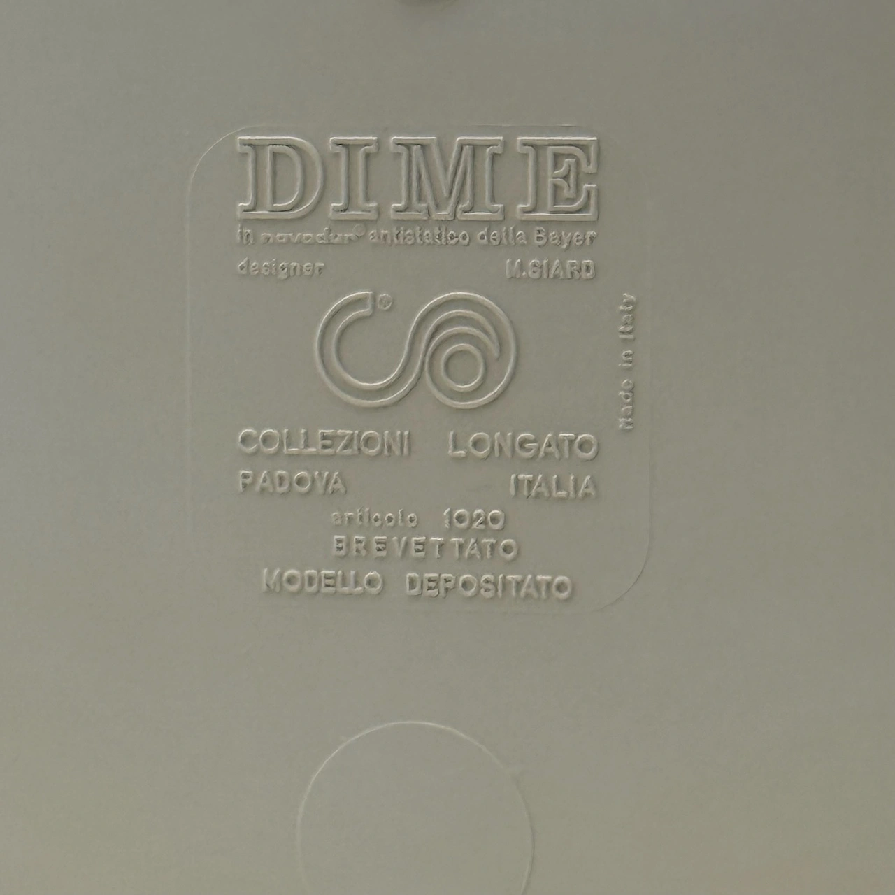 Marked on the underside with embossed branding (“DIME – Collezioni Longato – Made in Italy – modello depositato”), this piece is a true collector’s item, emblematic of 70s Italian innovation in form and function.