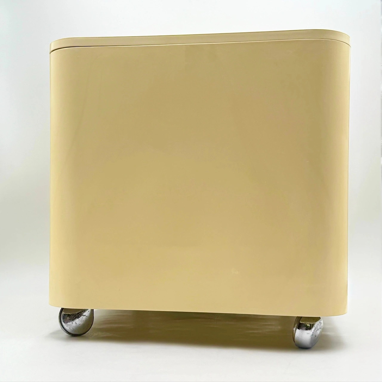 A rare multifunctional table-container designed by M. Siard for DIME Longato in the 1970s. Made in Italy in Novodur plastic with chrome wheels. Functional, iconic, and a true collector’s piece from the golden age of Italian plastic design.