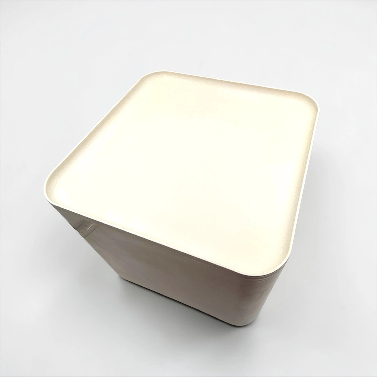 The table container DIME consists of a hollow body closed by a removable lid. This simple construction allows the piece to function simultaneously as a storage container, side table or small serving trolley. The restrained geometry and smooth surfaces emphasize the sculptural quality of the cube while preserving its everyday practicality.