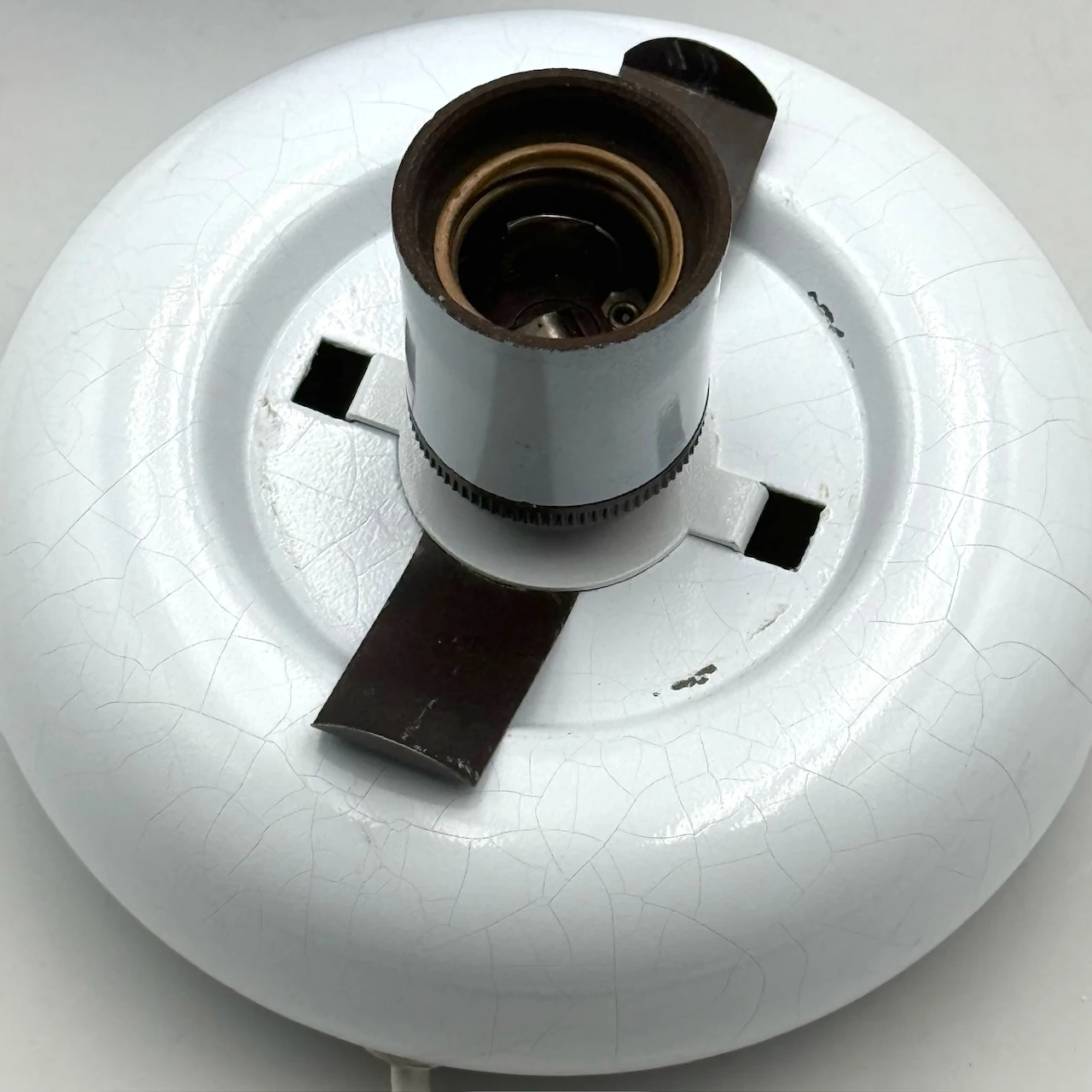 This piece comes with original wiring and it is equipped with a bakelite E27 socket.