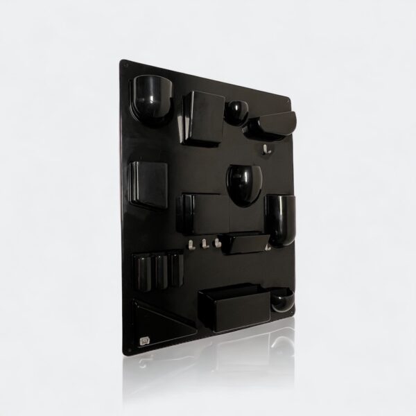 item. wall unitmodel. uten.silo IIdesigner. dorothee beckermaker. design M ingo maurerperiod. 1970scountry. west germanymaterial. plastic, metalcolor. glossy blackdimensions (cm). 51.5 x 67.5 x 8condition. excellent vintage conditions. the signs of time ar minor and consistent with ageing and wear (superficial scuffs). also the metal hooks are in excellent conditions, without oxidation.art. no. 1223