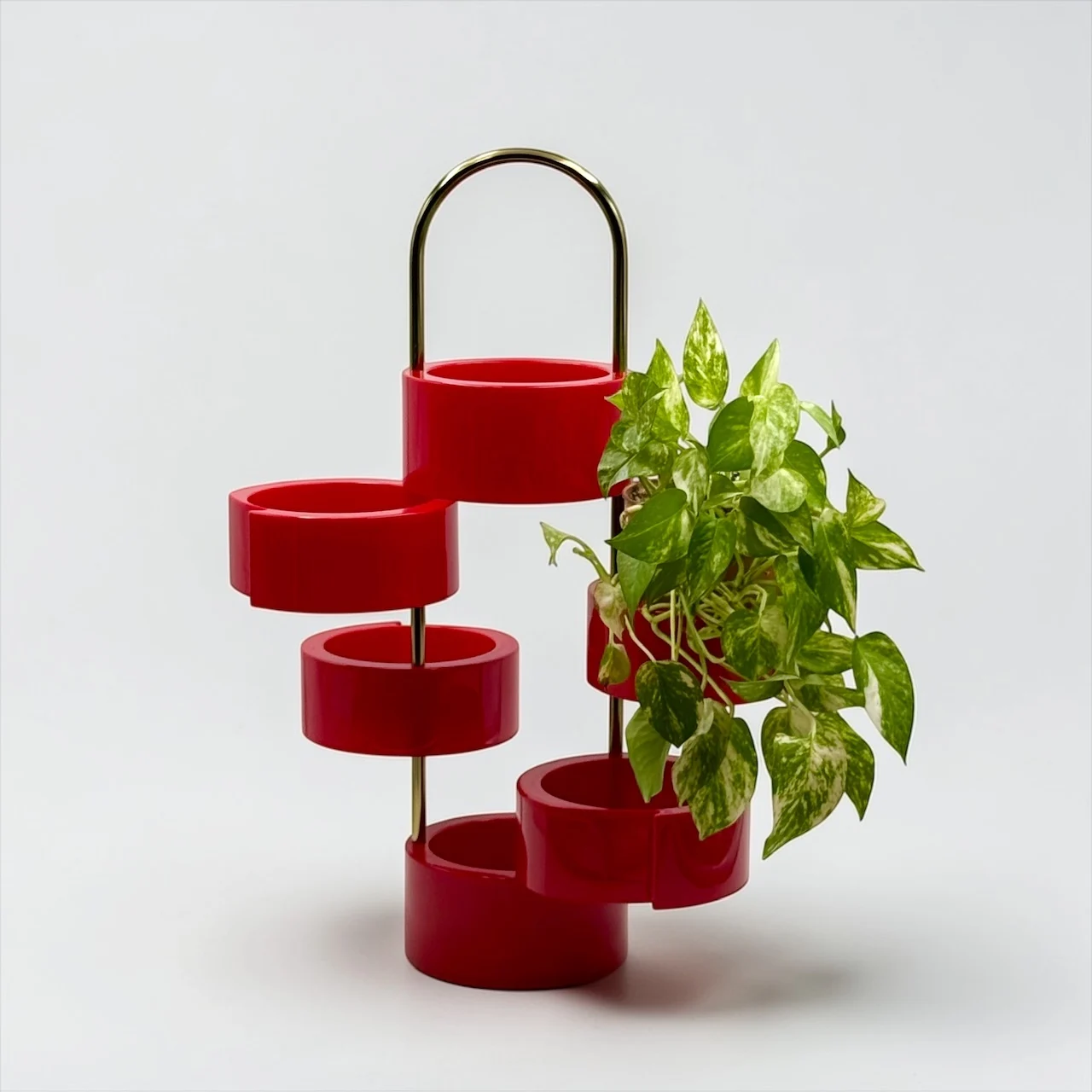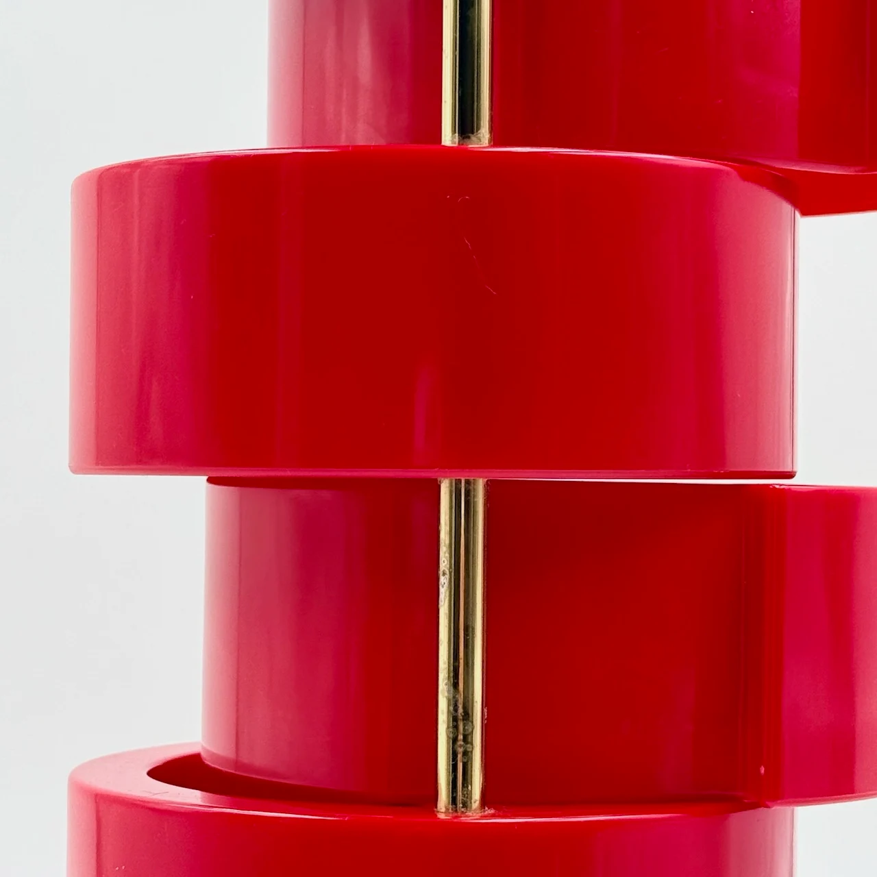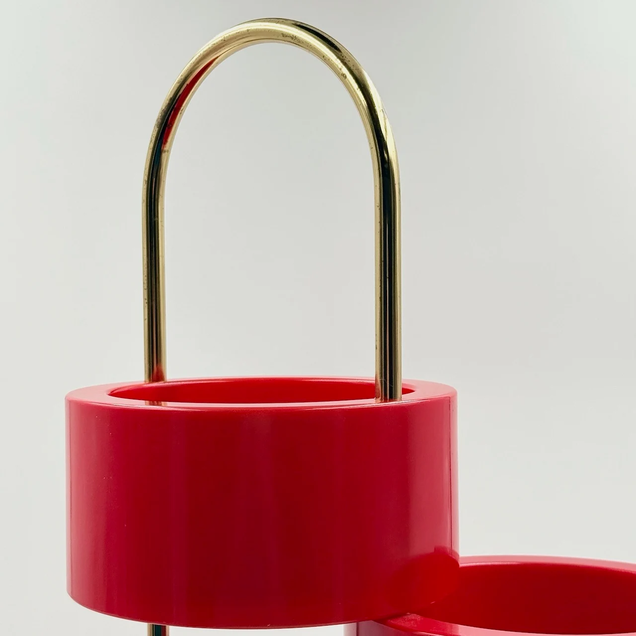 A recurring icon of 1970s interiors, this piece reflects a period of experimentation where everyday objects were reimagined with personality and flexibility. Its structure is composed of glossy red plastic elements that can be opened and adjusted, creating dynamic configurations depending on use and space.