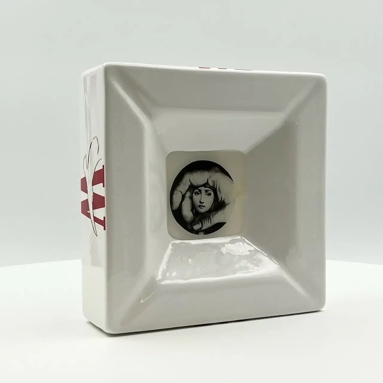 item. collectible ashtraymodel. tema e variazioni – variazione n. 219designer. Piero Fornasettimaker. Fornasetti Milanoperiod. 1970scountry. Italymaterial. ceramiccolor. white, black, reddimensions (cm). 19 x 19 x 7condition. very good conditions. a minor original defect, resembling a small air bubble on the side of the image.art. no. 1470
