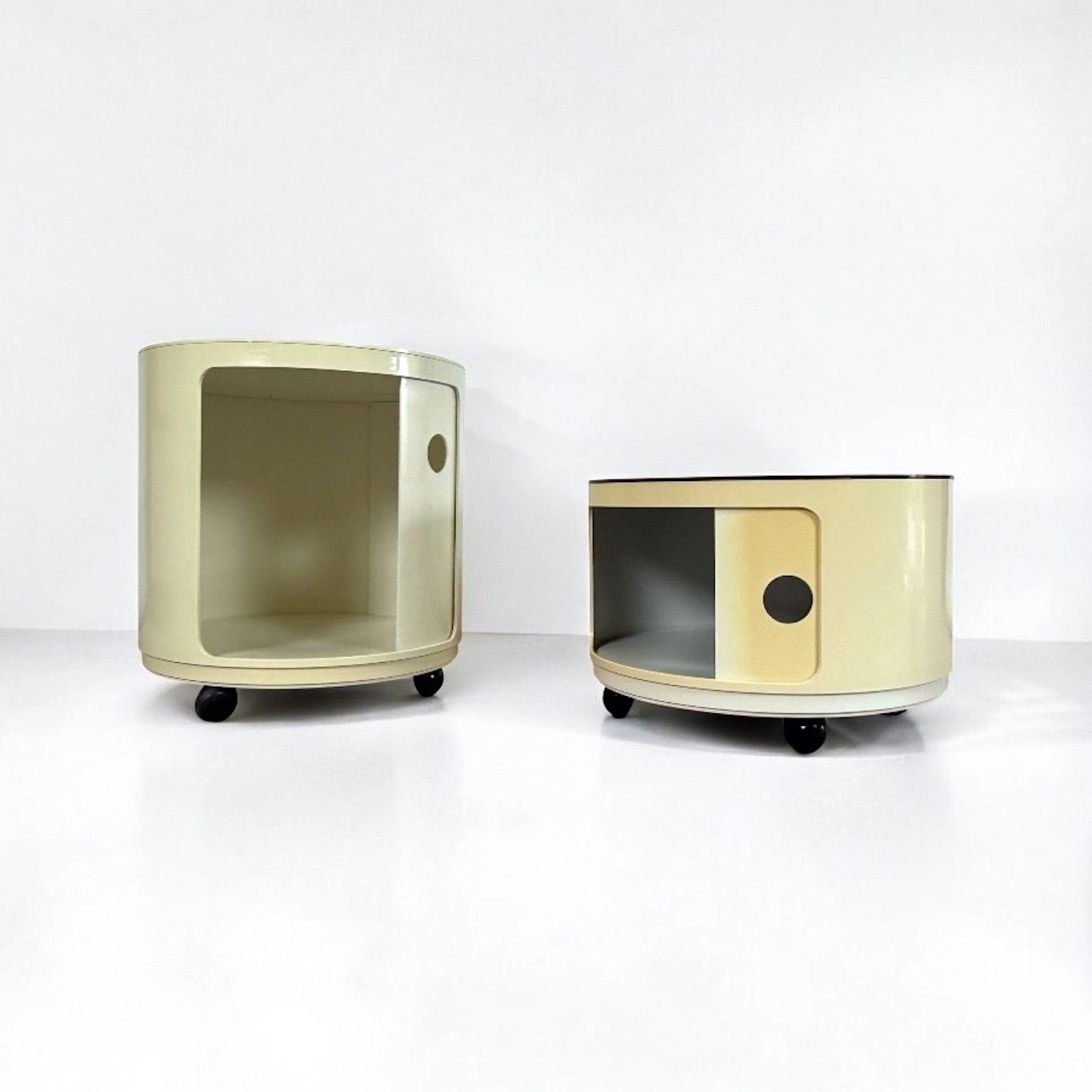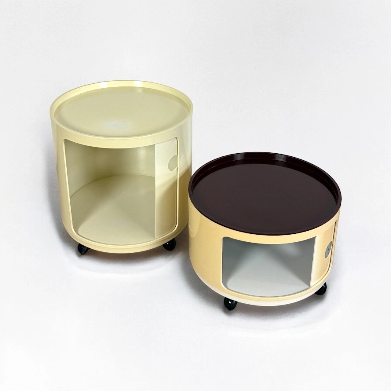 Original and rare 1960s vintage Kartell Componibili set, featuring two large, round-based storage units..