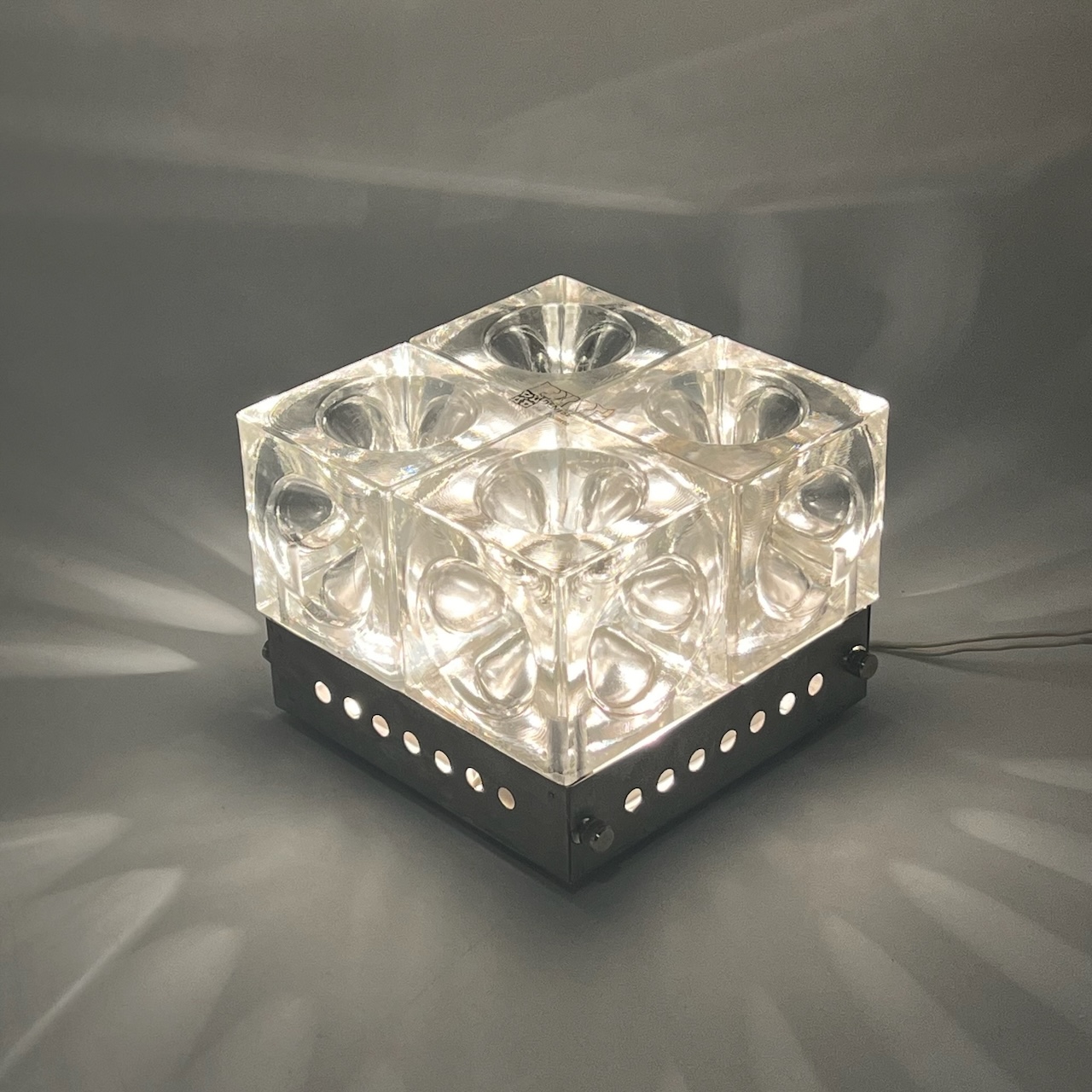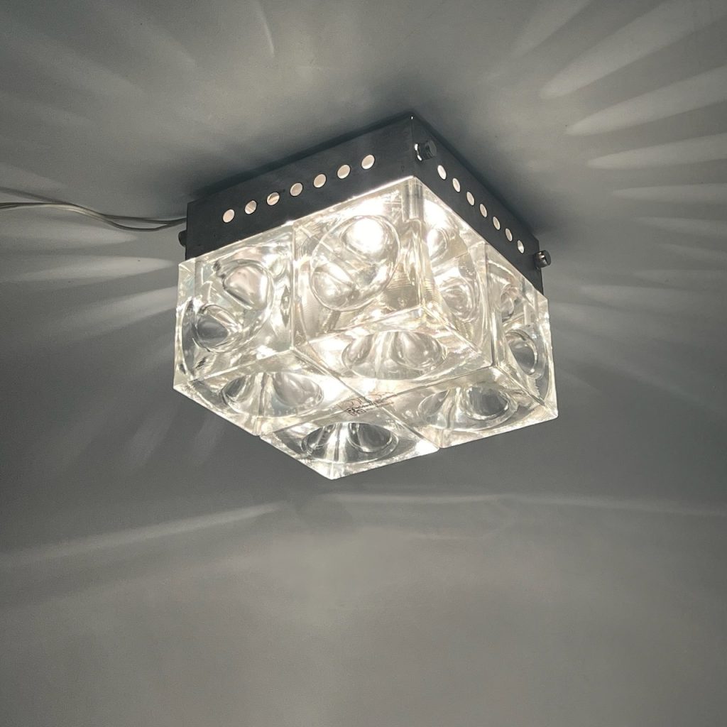 Vintage 70s Poliarte Wall or Ceiling Lamp by Albano Poli. Space Age Iconic Design with Four Glass Cubes. Amazing Visual Impact.