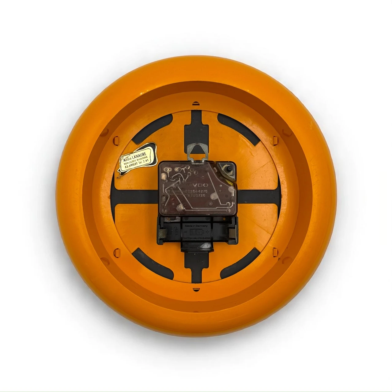 Made in the 1970s, it embodies the retro-futuristic design of the era with its rounded edges, oversized white numerals, and deep contrast. Powered by a precise German, battery operated quartz mechanism, it merges vintage charm with reliable function. This clock is a compact yet eye-catching statement piece—perfect for a modernist interior, collectors wall, or design lovers home.