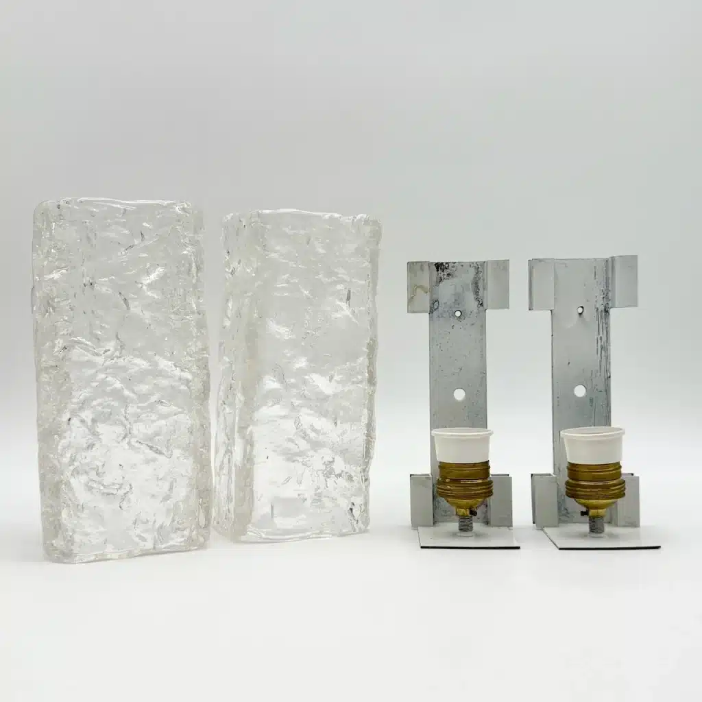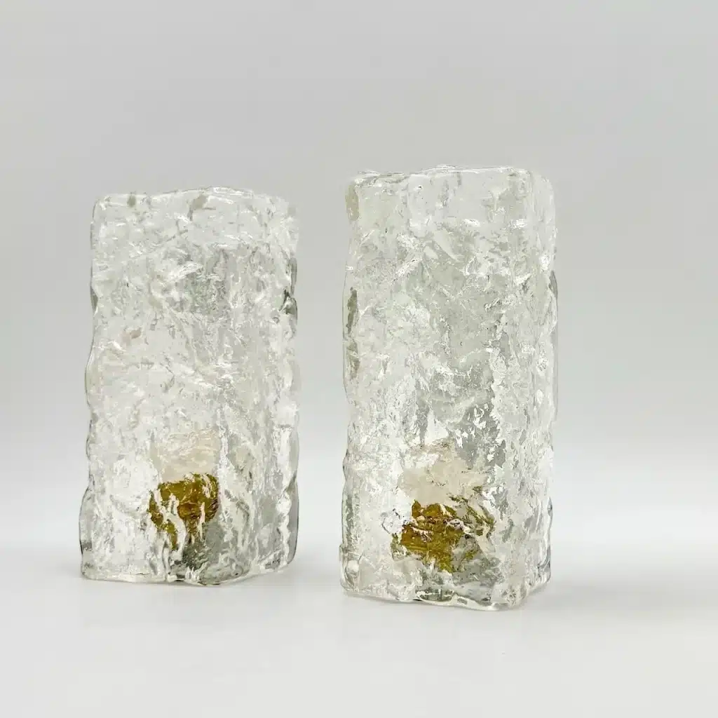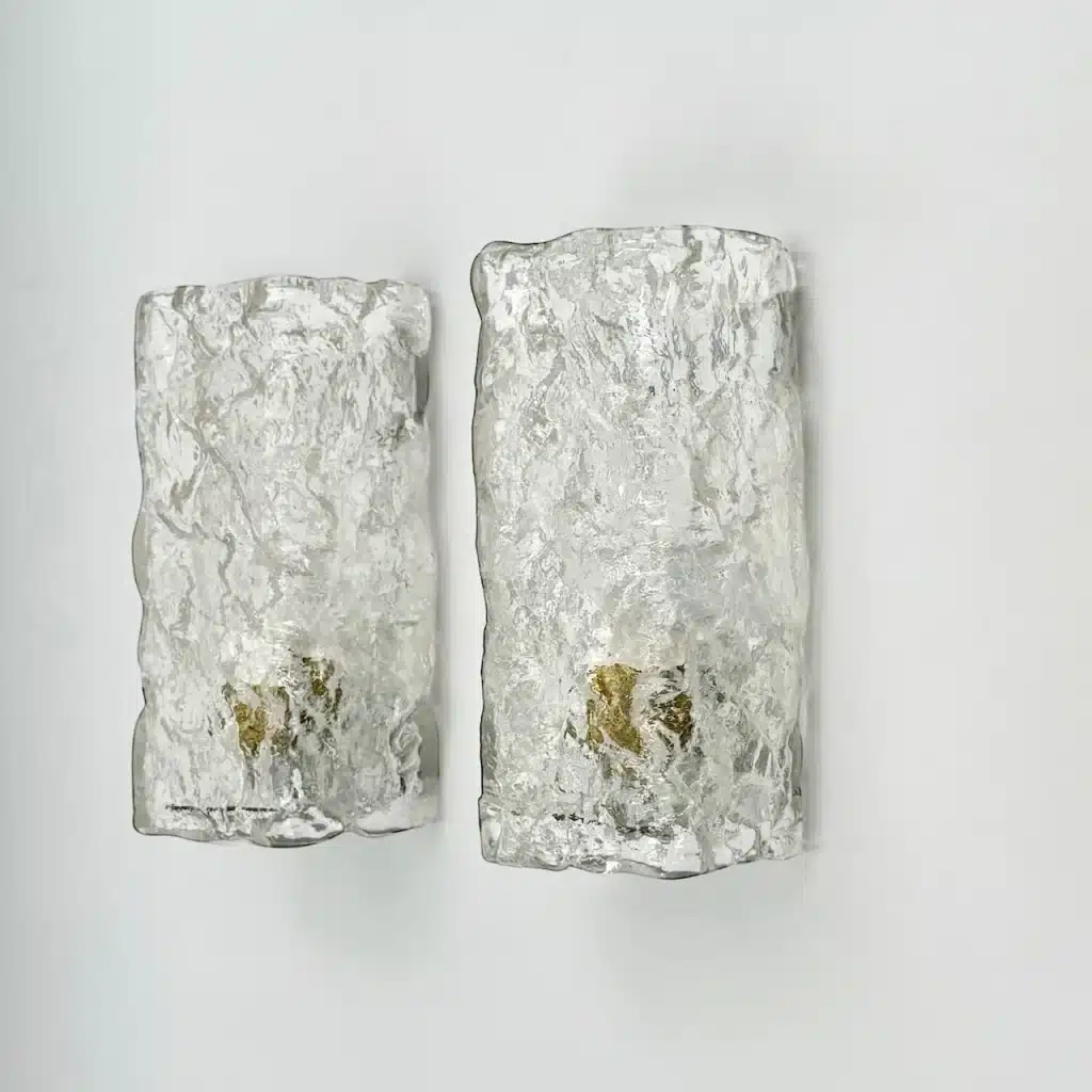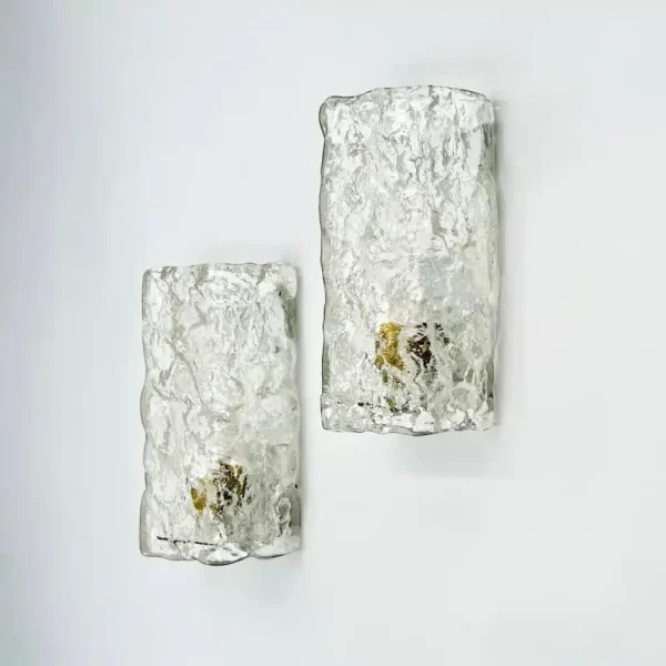 Striking set of 2 Murano ice glass sconces from the 1970s handcrafted in thick Murano glass with a bold, ice-like texture inspired by the style of Kalmar Franken.