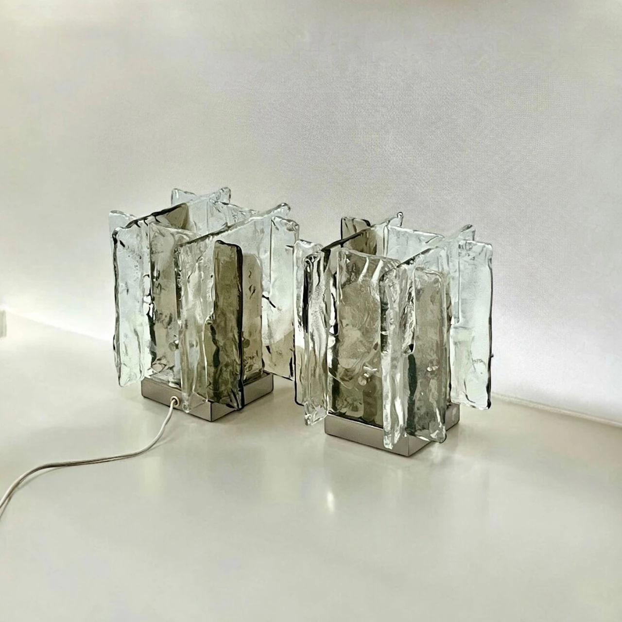 Set of Two 70s Mazzega Lamps by Carlo Nason: Vintage Murano Glass Design