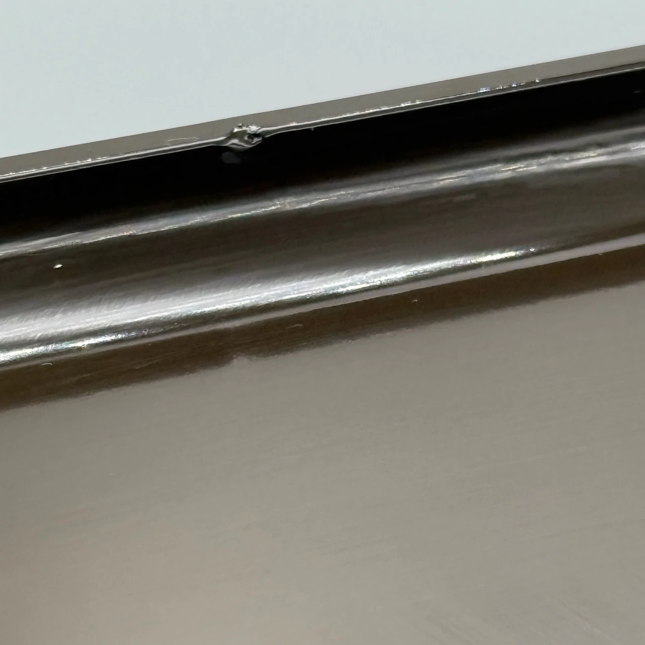 Made in glossy brown Novodur® resin by Bayer, it is light, durable, and easy to move. The smooth C-shaped body holds two trays and runs on hidden wheels. Simple, fluid lines turn this trolley into a sculptural and practical object.