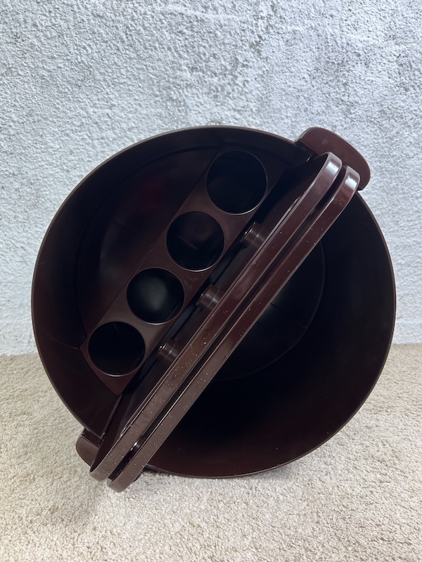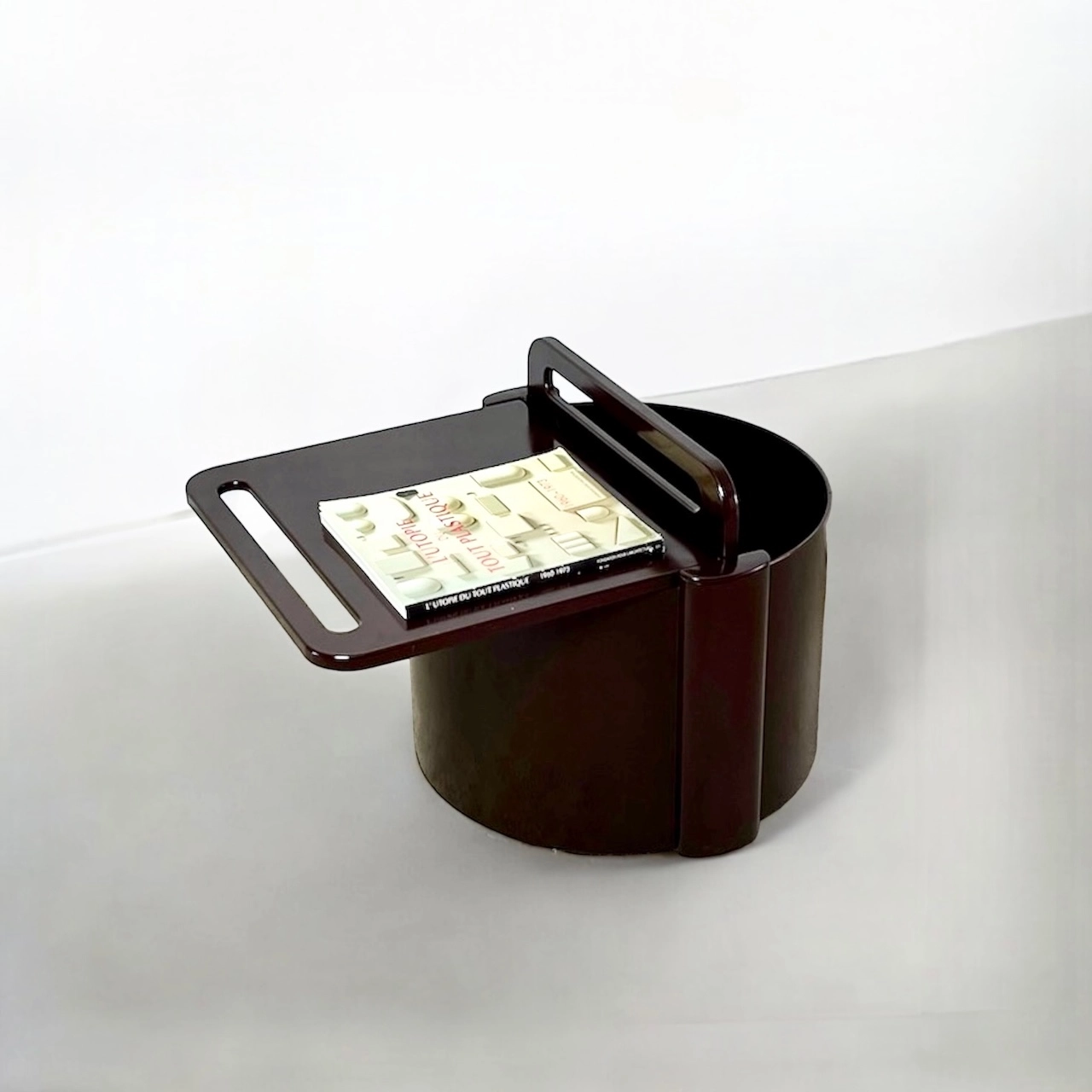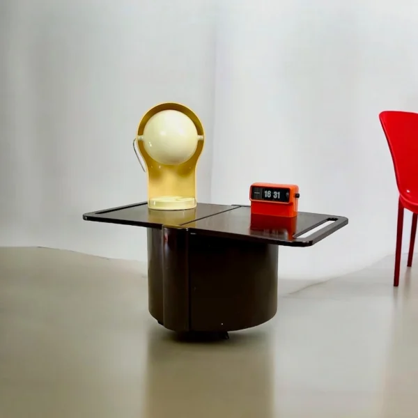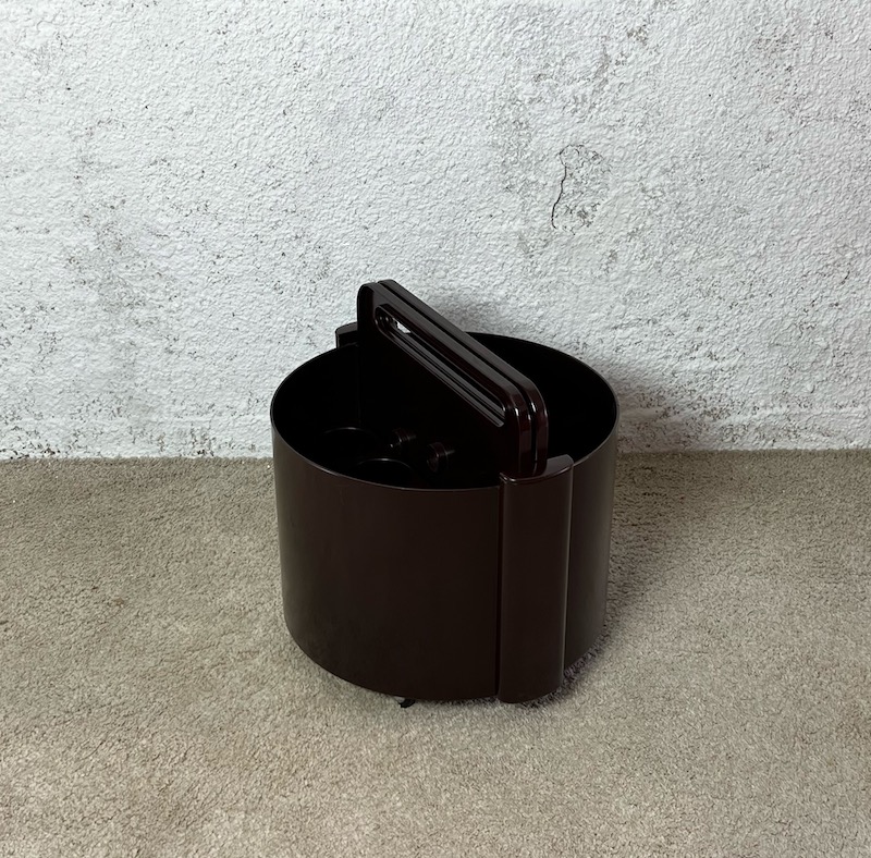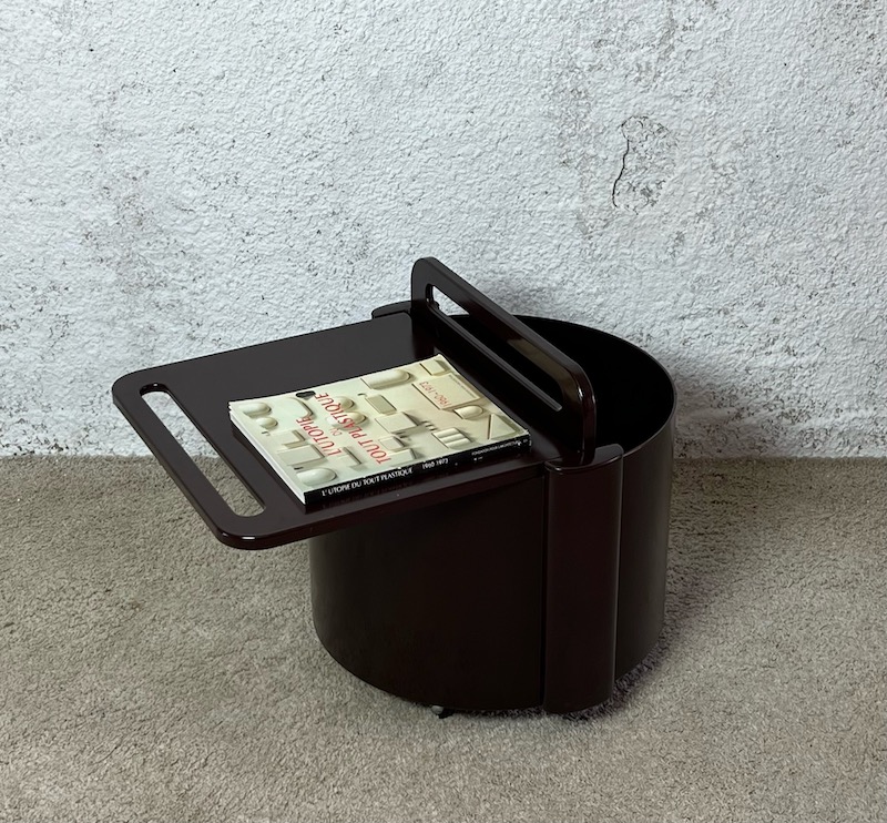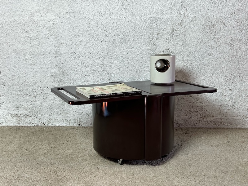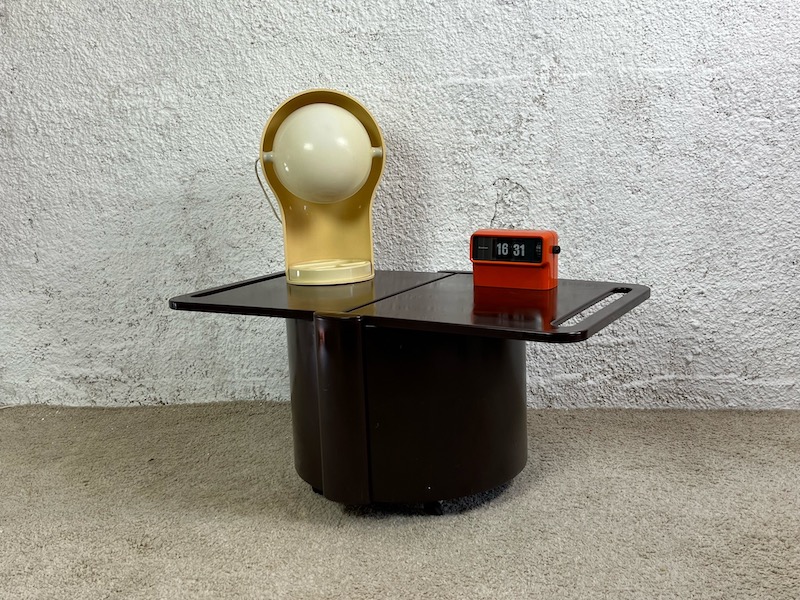Distinctive and stylish space age design serving trolley design by Livia Castelli for Fain Italy in the early 70s. This is the iconic brown version, quoted also in the book “L’Utopie du tout plastique“, page 64.