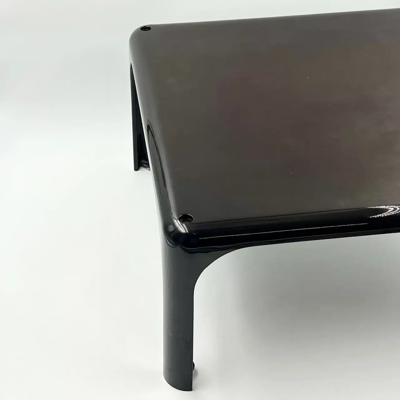 Discover Space Age design with Vico Magistrettis Demetrio 45 table – a rare, glossy brown 60s coffee table, a MoMA classic and a stylish addition to any space.