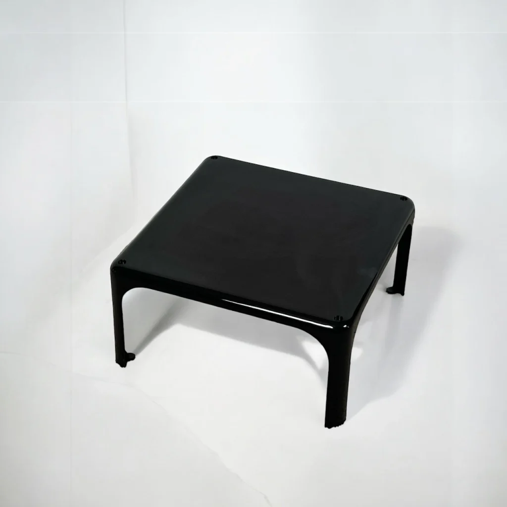 The Demetrio 45 table embodies the essence of Space Age design with its sleek, minimalist lines and futuristic aesthetic. Crafted from durable resin, this vintage table comes in a rare dark brown color with a glossy finish, making it a standout piece that adds a touch of exclusivity to any space. The rounded edges and smooth surfaces enhance its elegant appeal, while its compact dimensions (45 x 45 x 21 cm) make it versatile enough to be used in various settings, from a stylish coffee table in your living room to a sophisticated side table in your office.