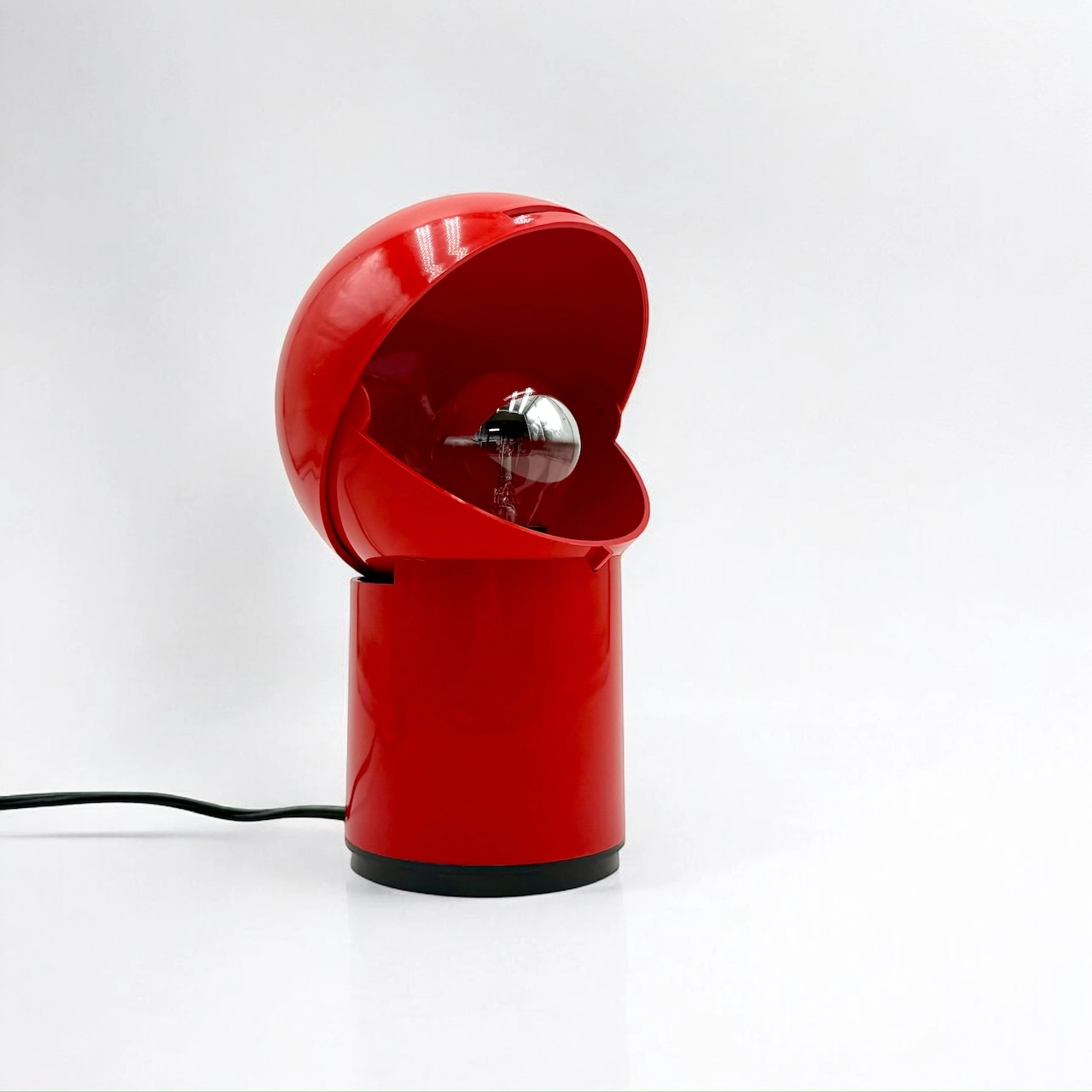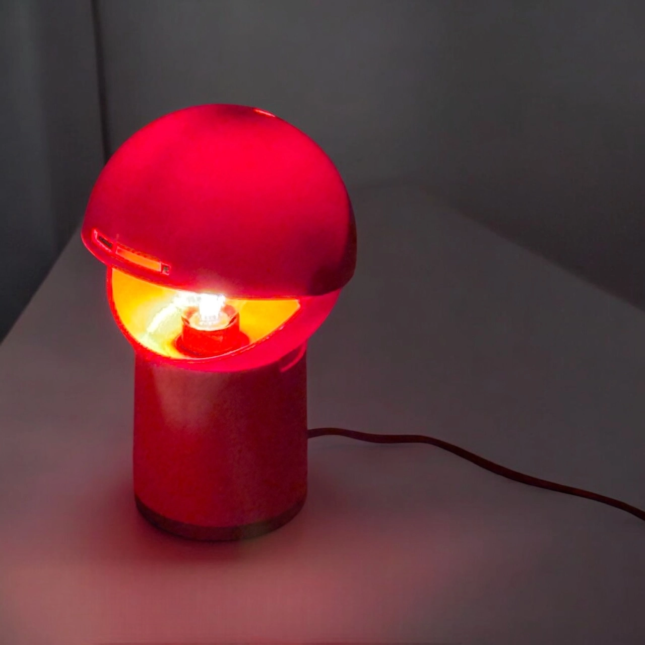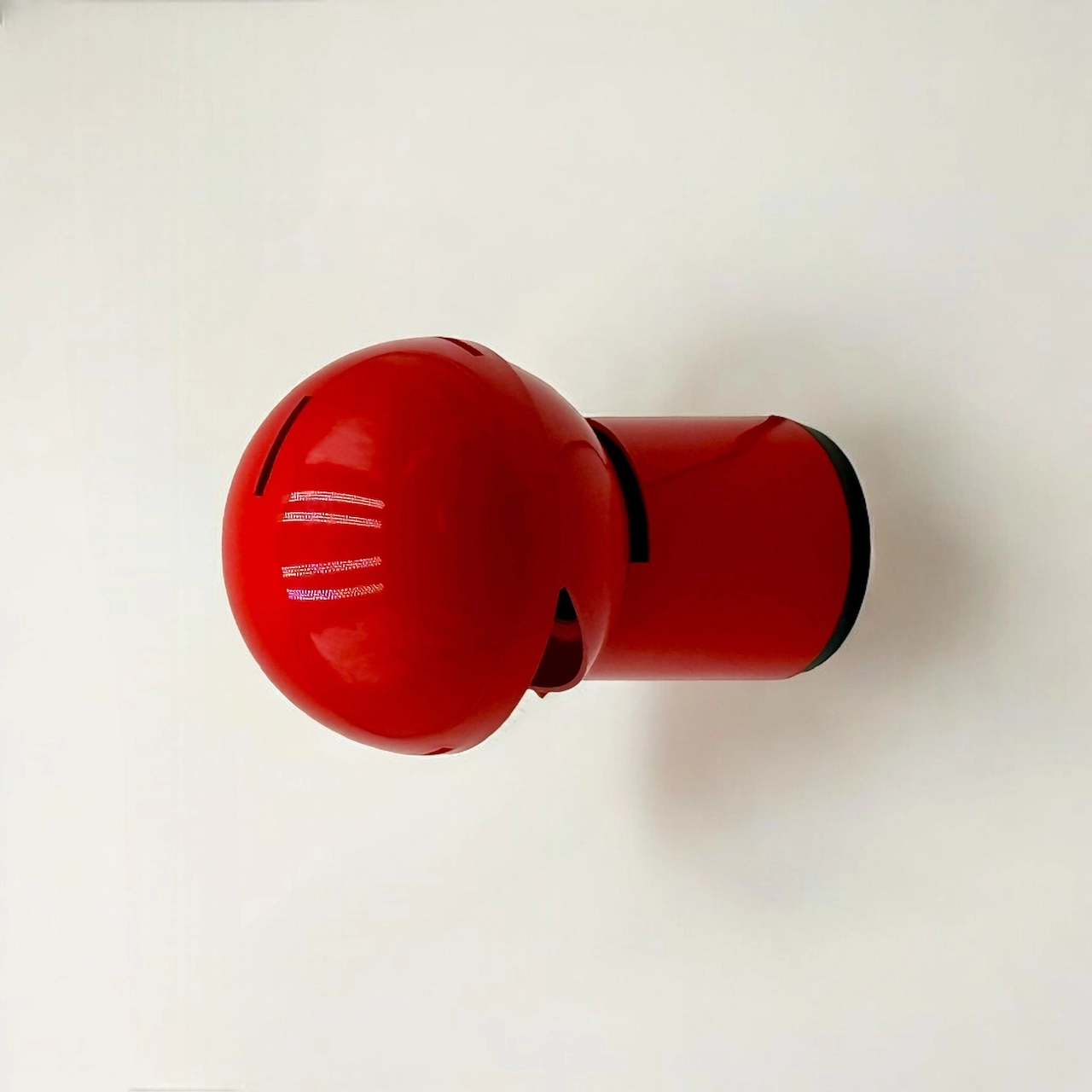 This specimen is just perfect as bedside light, or to lighten a wall with an unmistakeable space age character! With its shining red color and its cute shape, it will give a joyful vintage touch to any room!