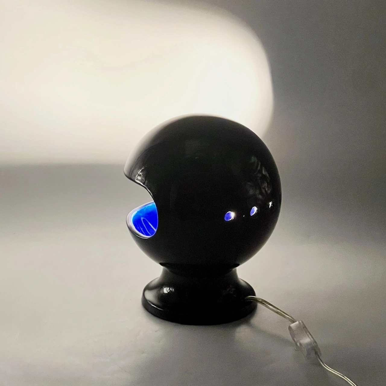 Space Age Lamp Enzo Bioli Il Picchio, made in Italy in the 1960s. This unique table lamp features a blue glazed ceramic body and avantgarde design shape.